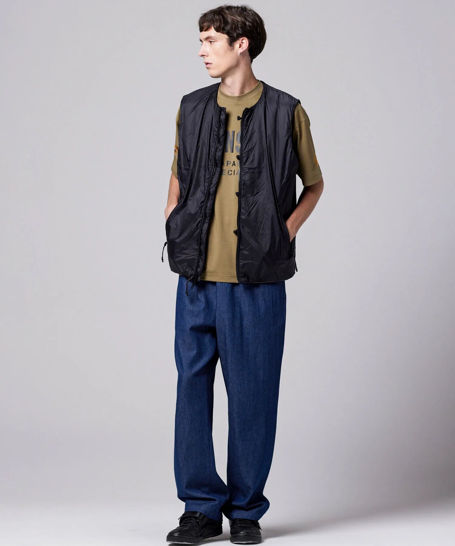 少しゆとりをもたせたシルエットで、リラックス感と動きやすさを兼ね備えています。