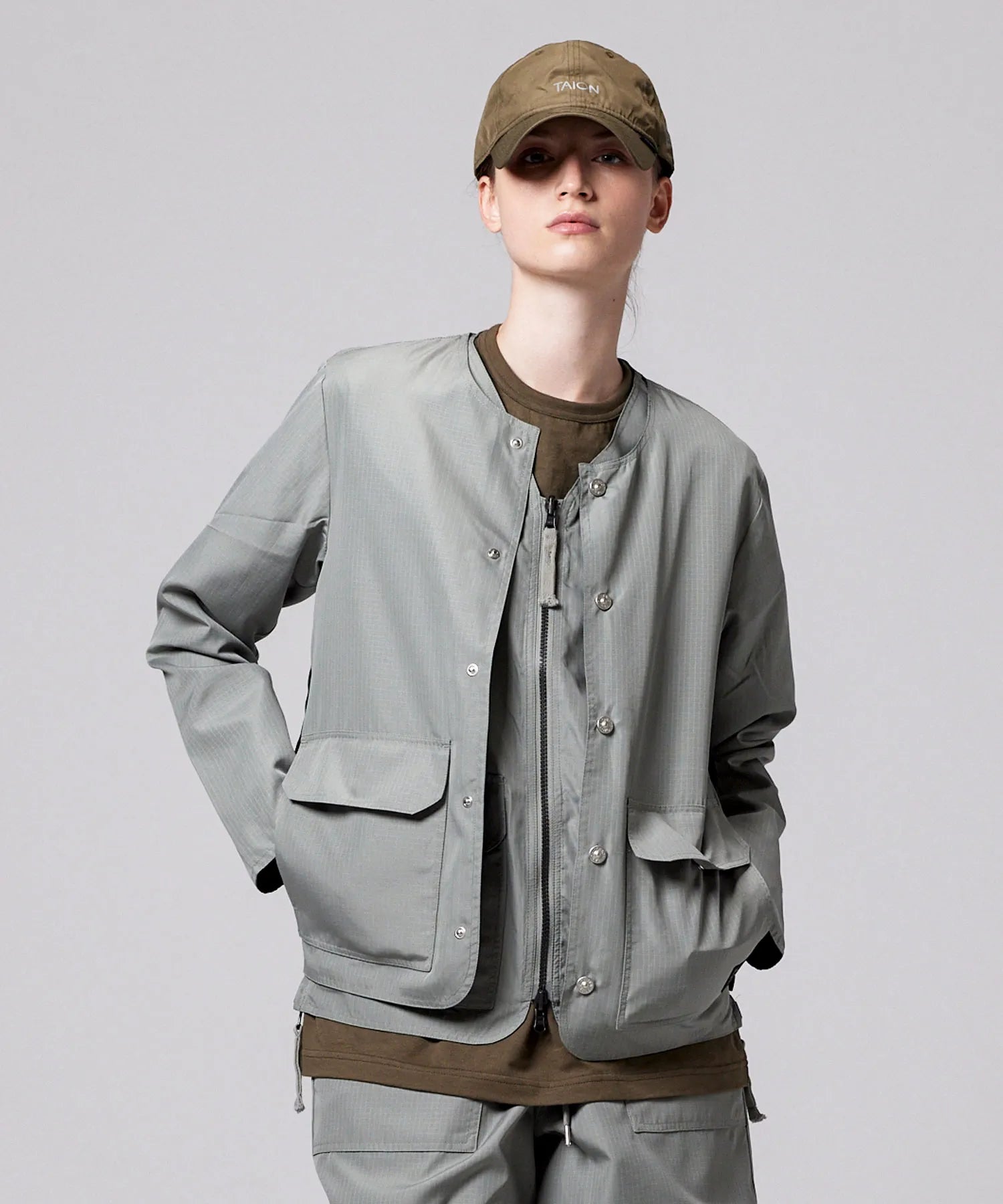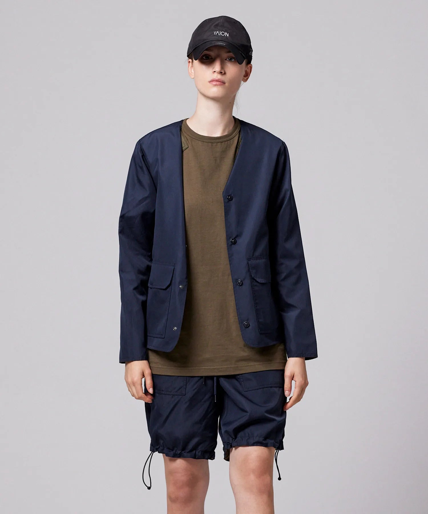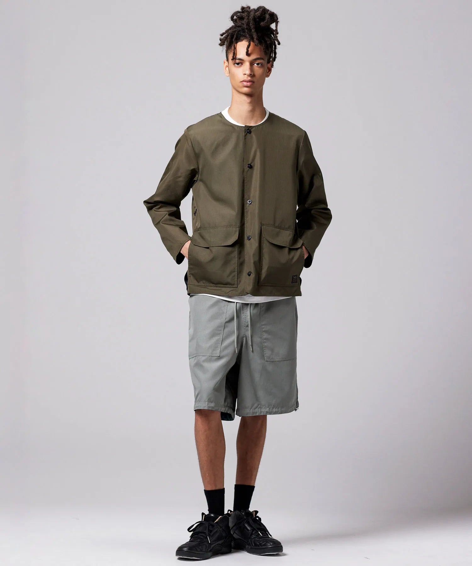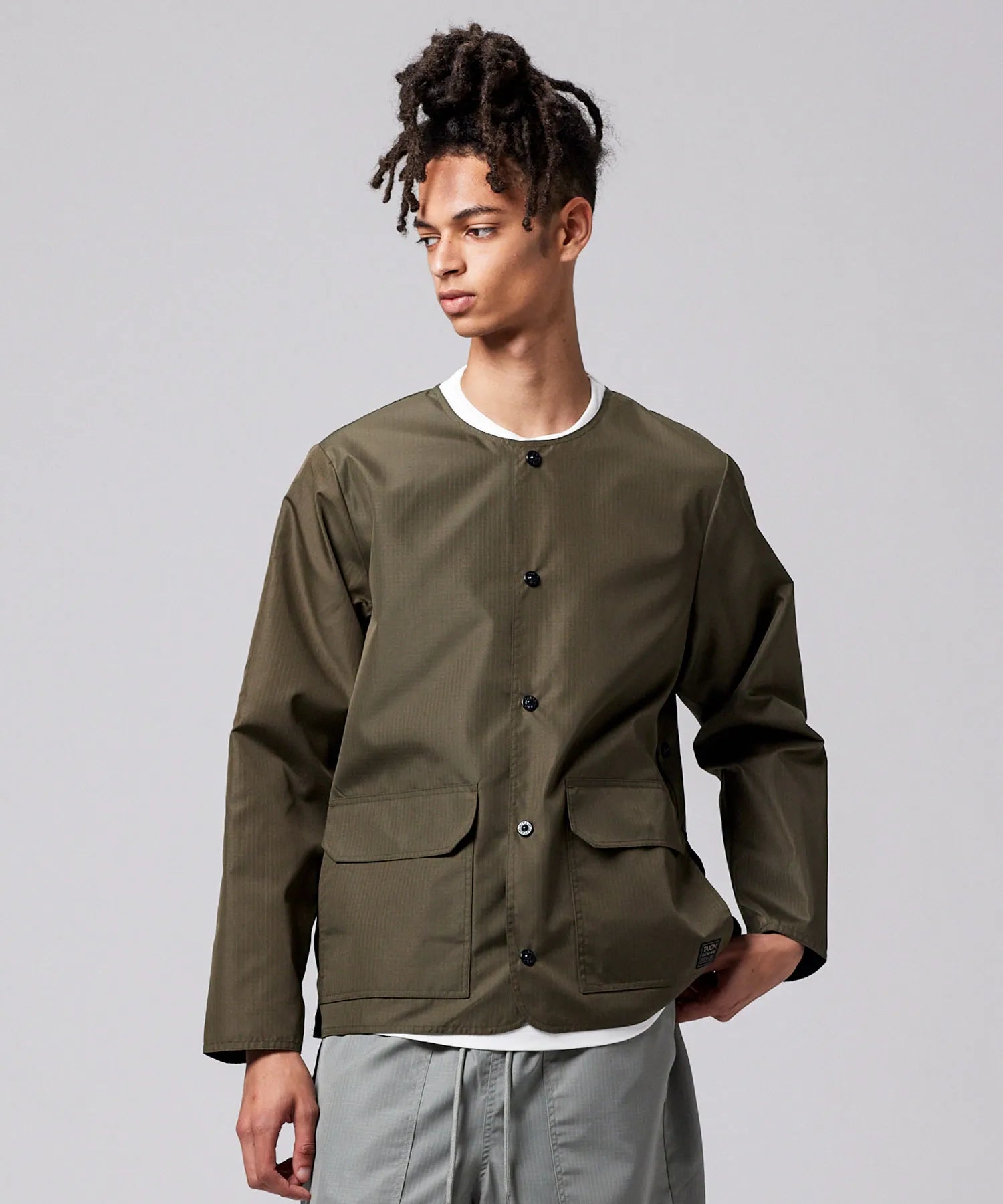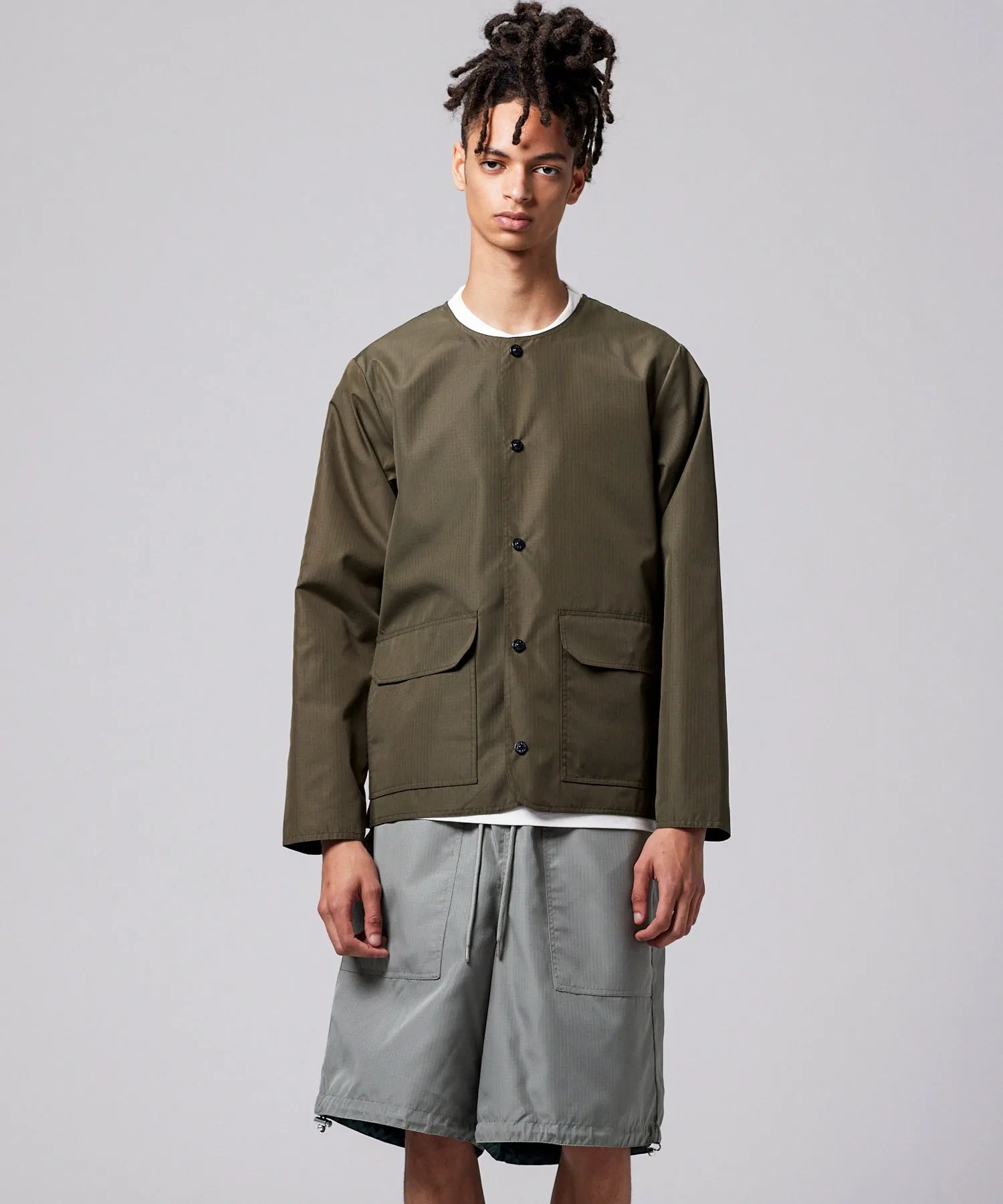 ミリタリーテイストをベースに、カジュアルに軽く羽織れる雰囲気に昇華させたリバーシブルクルーネックジャケット。