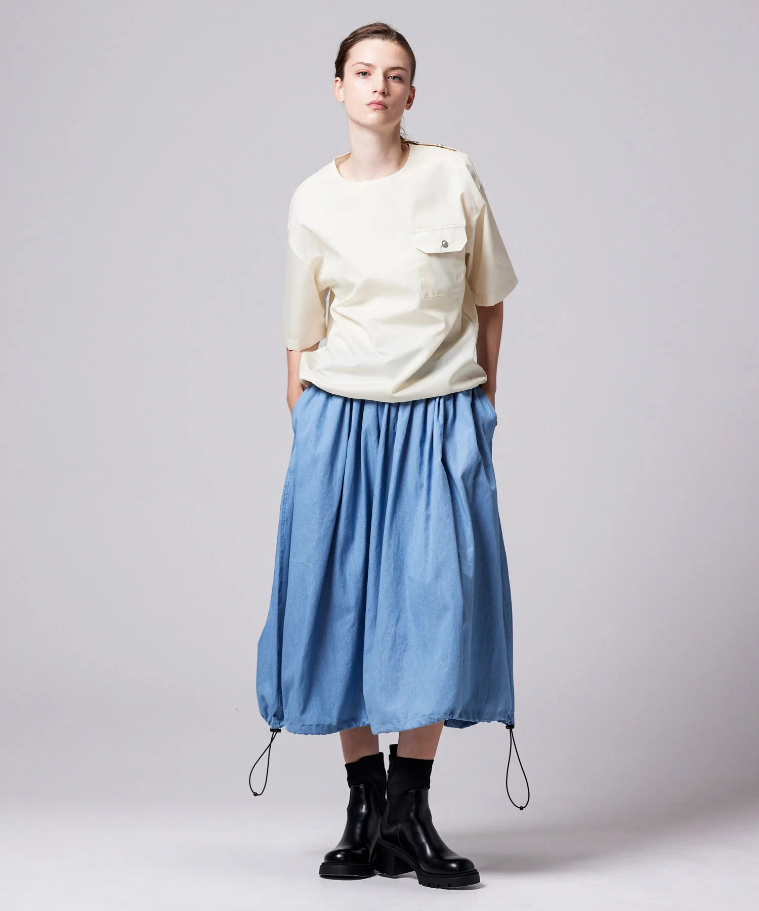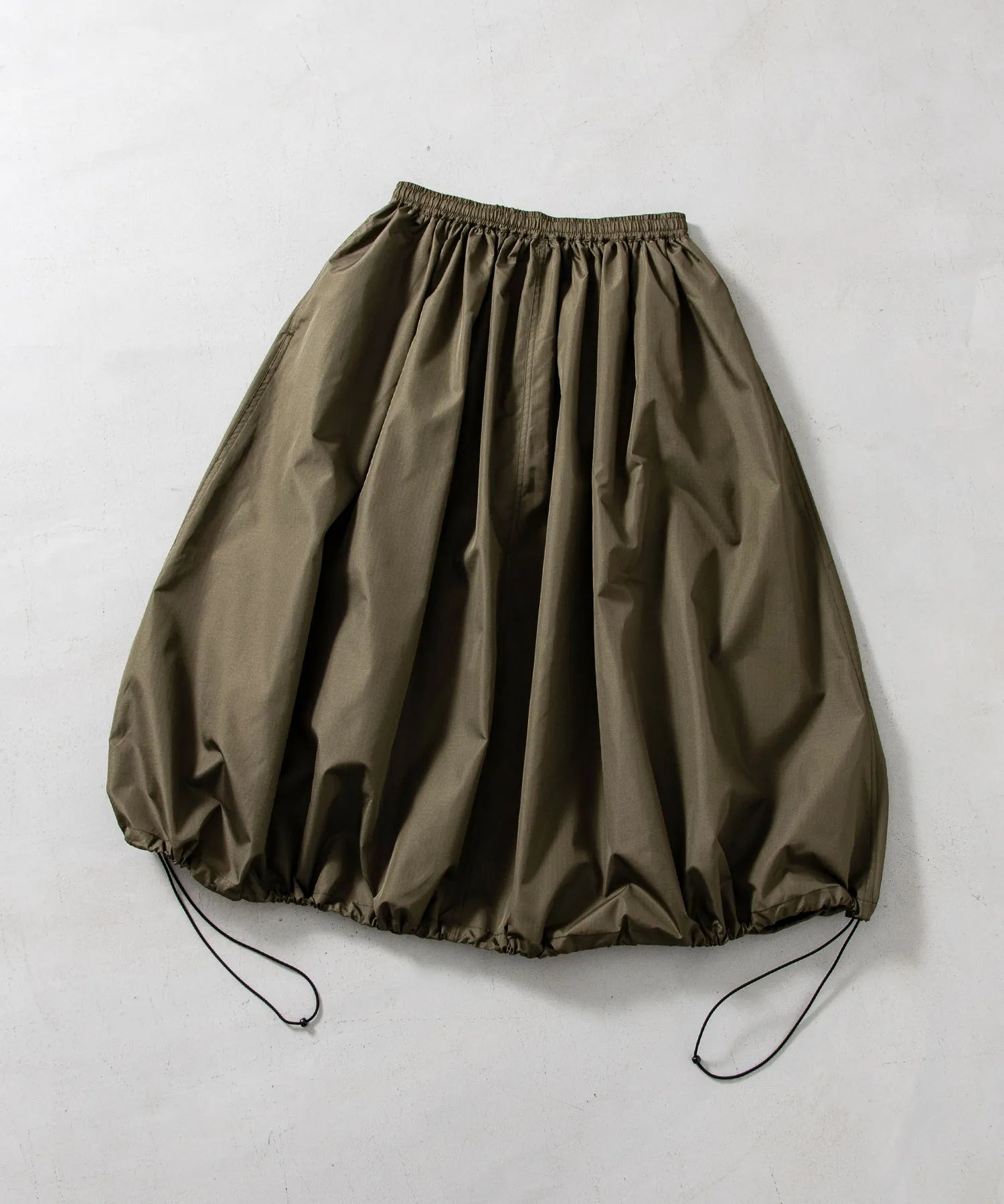 機能性とデザイン性を兼ね備えた、柔らかな印象を兼ね備えたミリタリーギャザースカート。