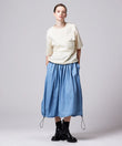 動きに合わせて生まれるギャザーが、立体的で存在感のあるシルエットを演出します。