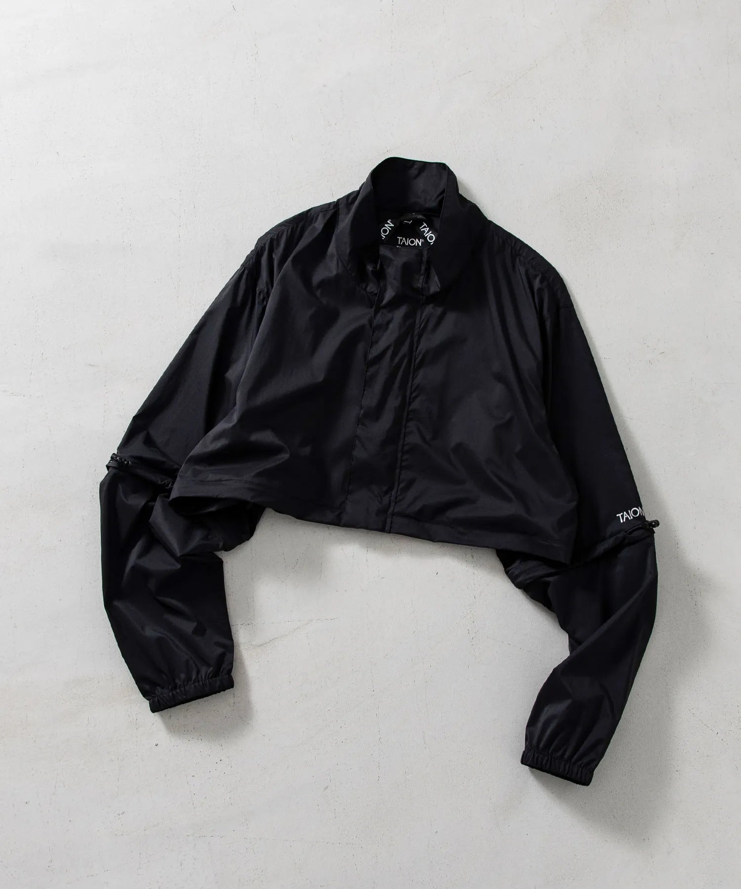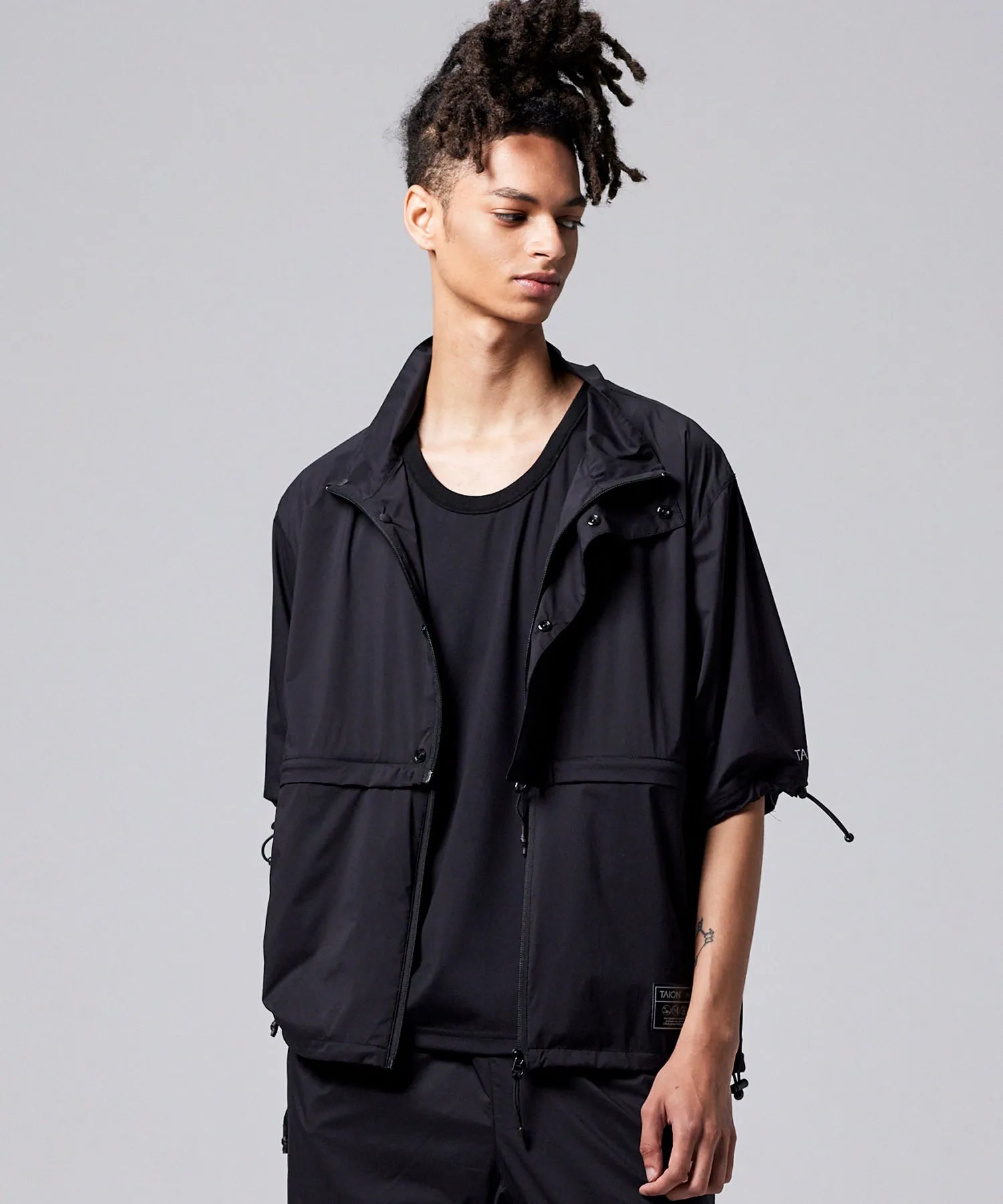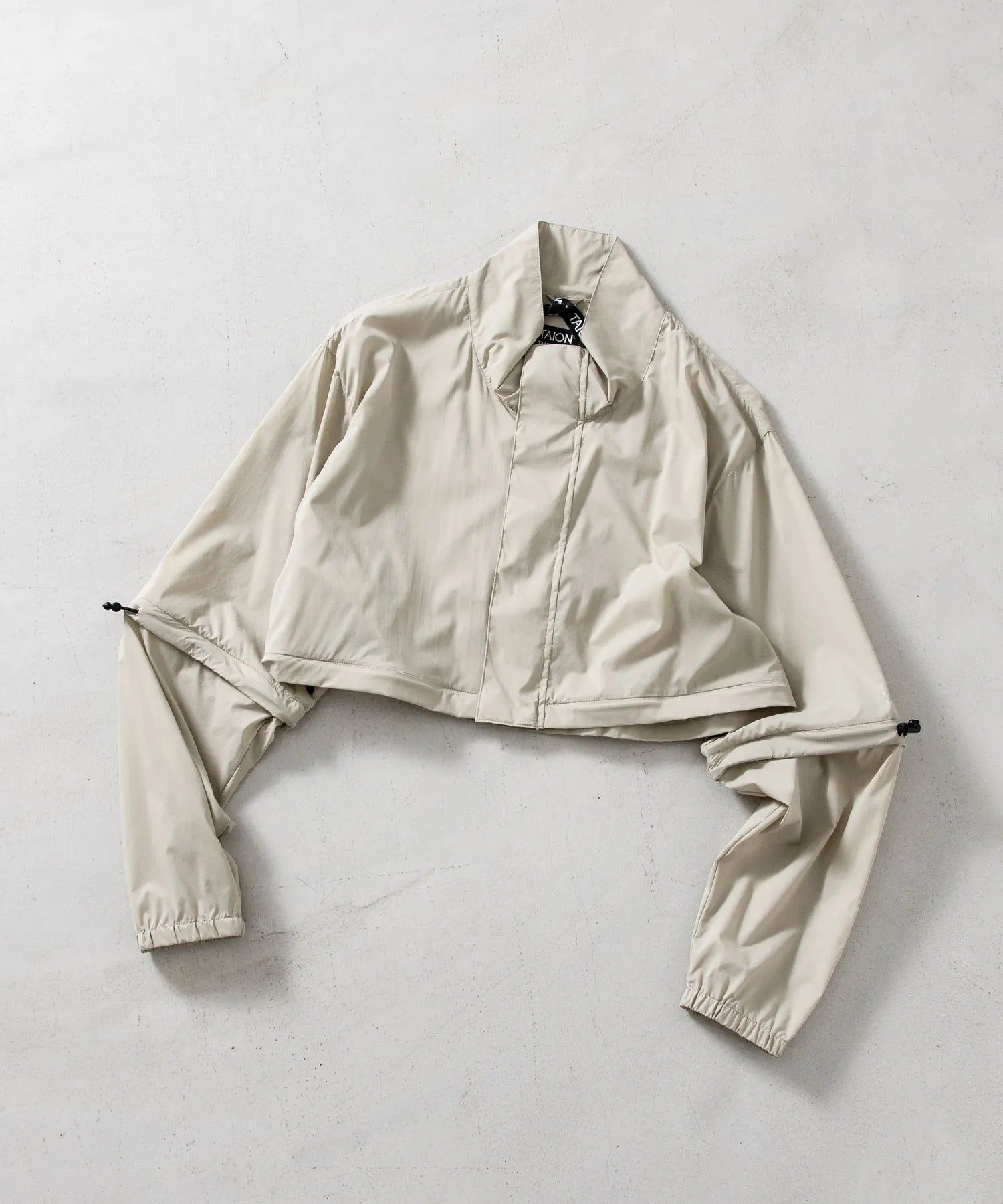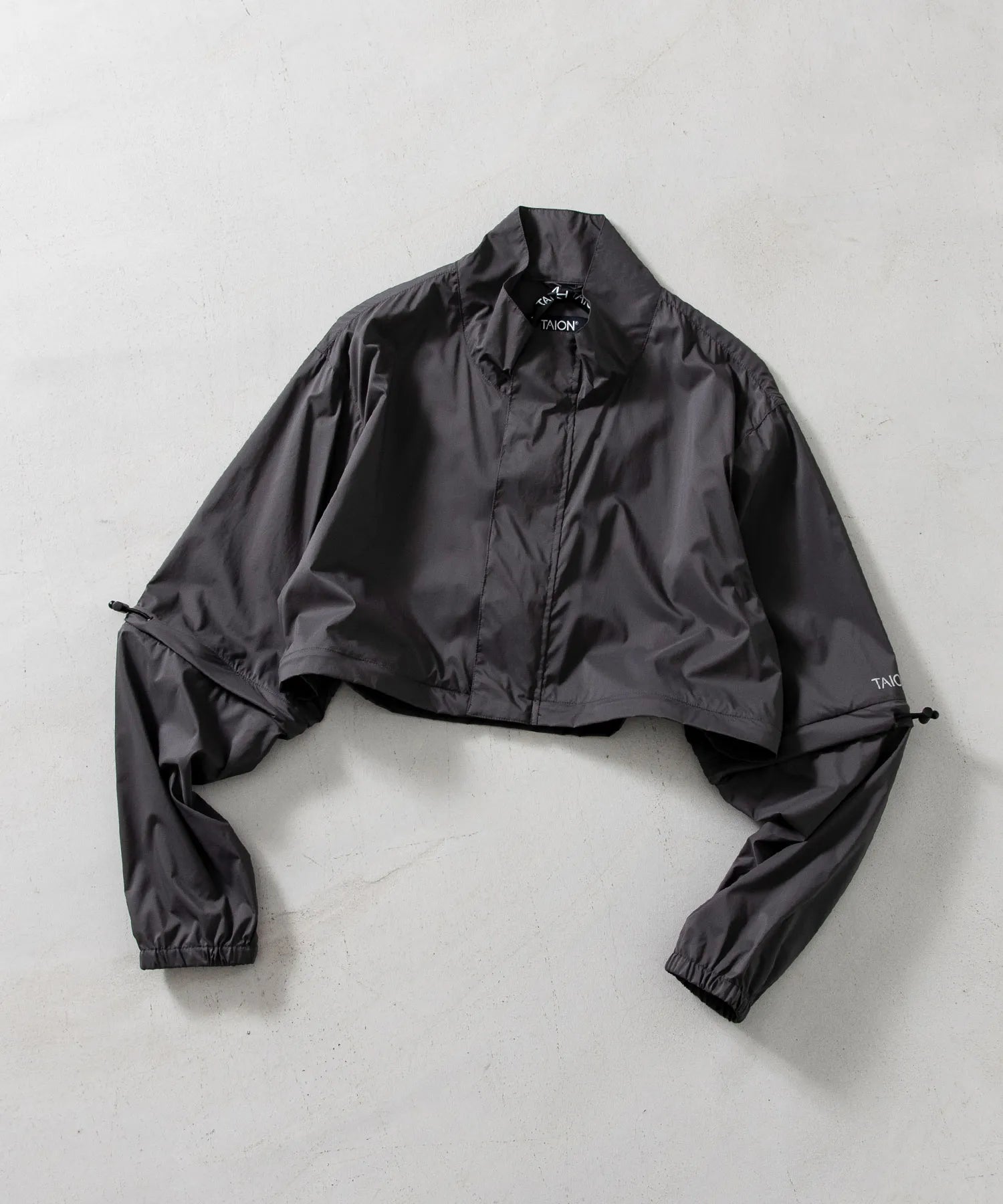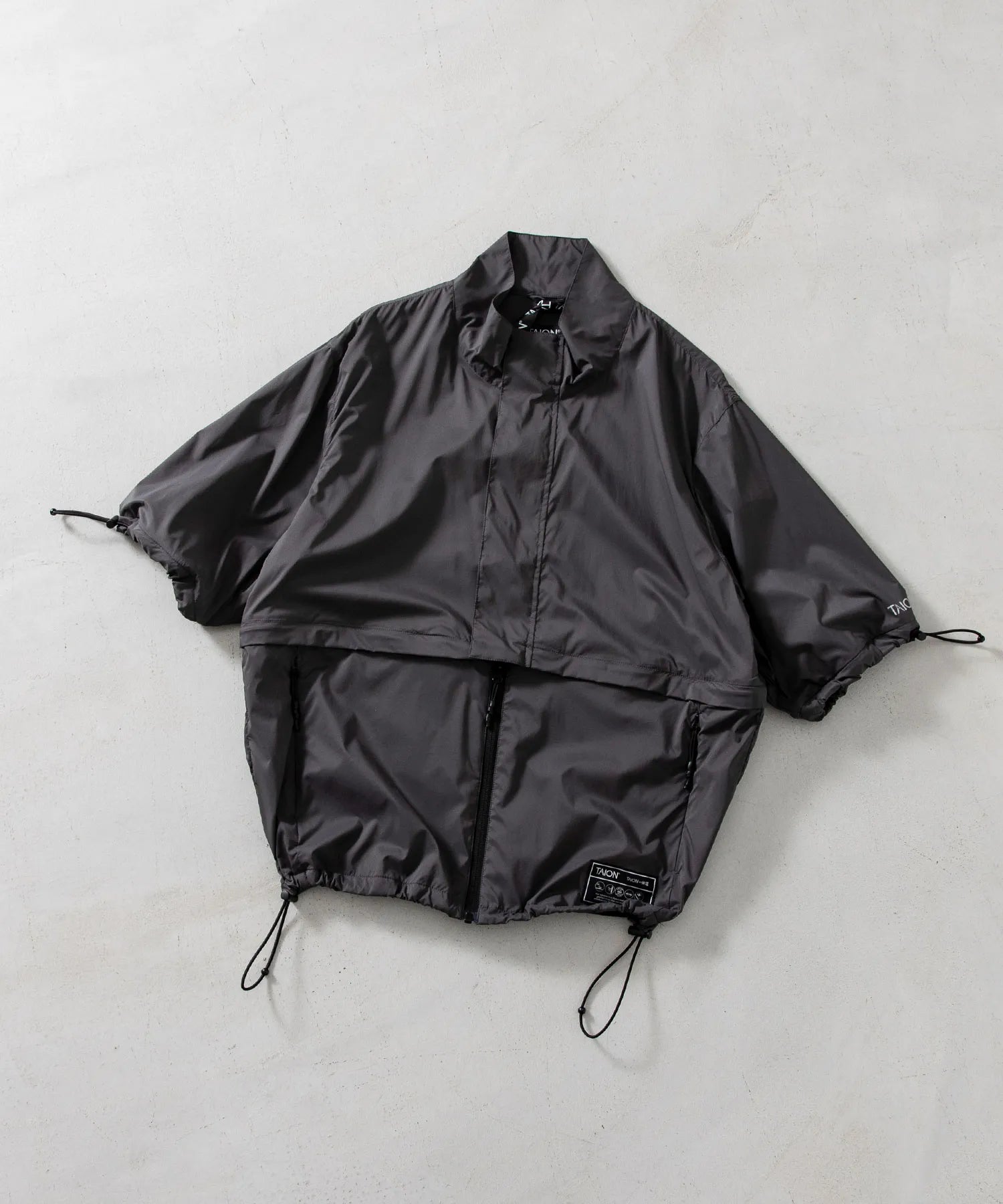 袖や裾はファスナーで取り外し可能な仕様で、気温やシーンに応じた着こなしが楽しめます。(長袖ジャケット・ショート丈ジャケット・半袖ジャケット・半袖ショート丈ジャケットの4通り)