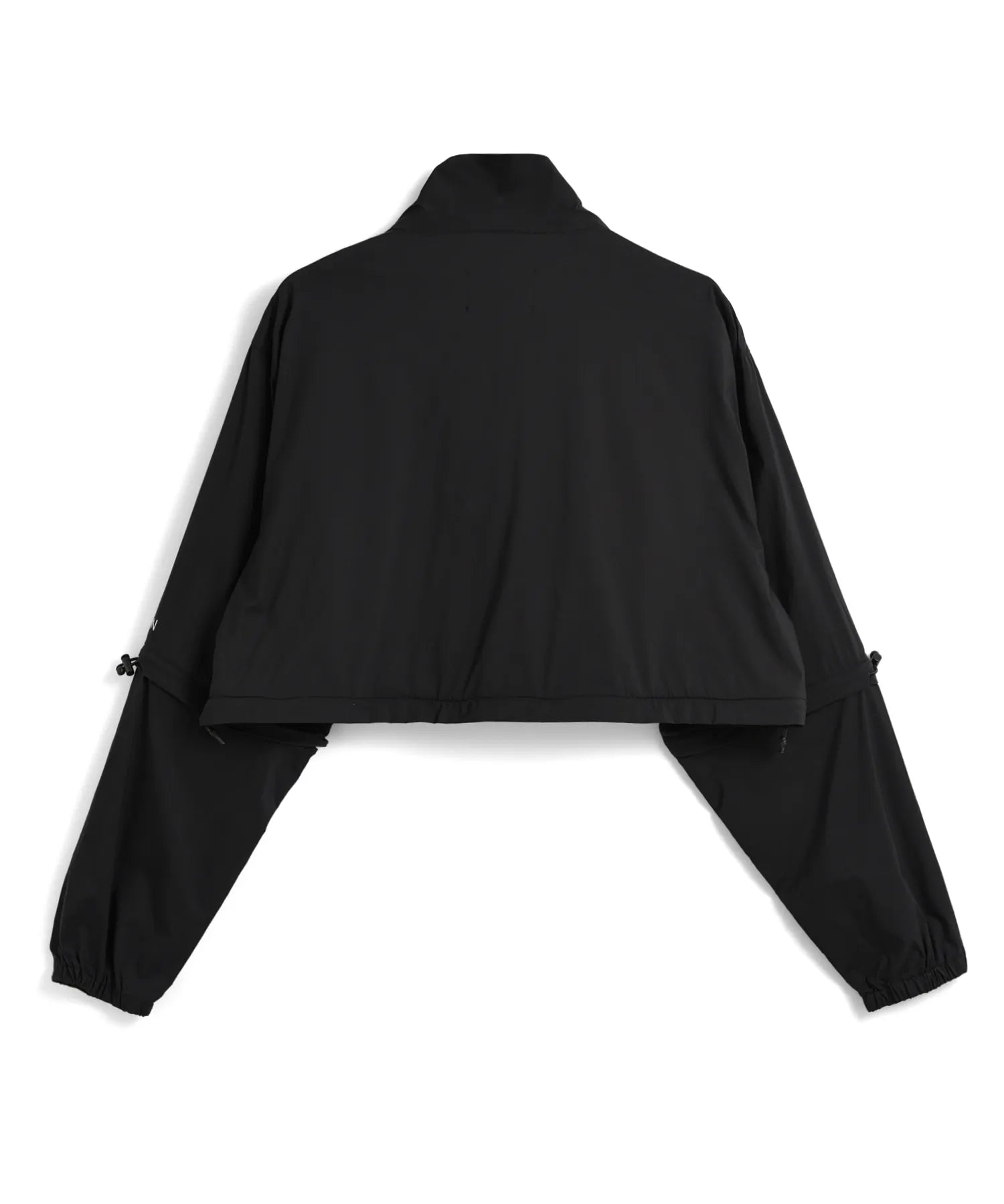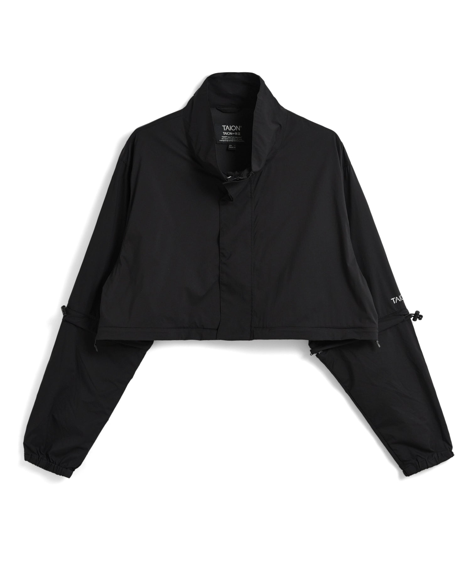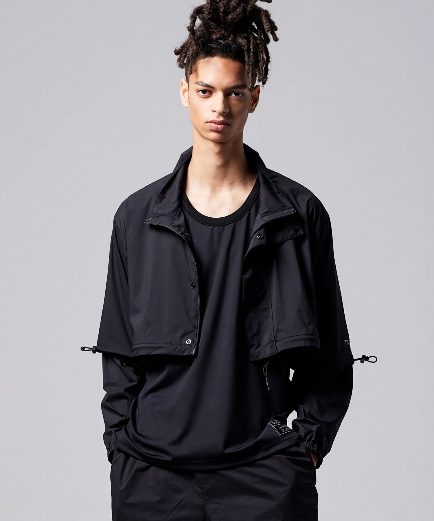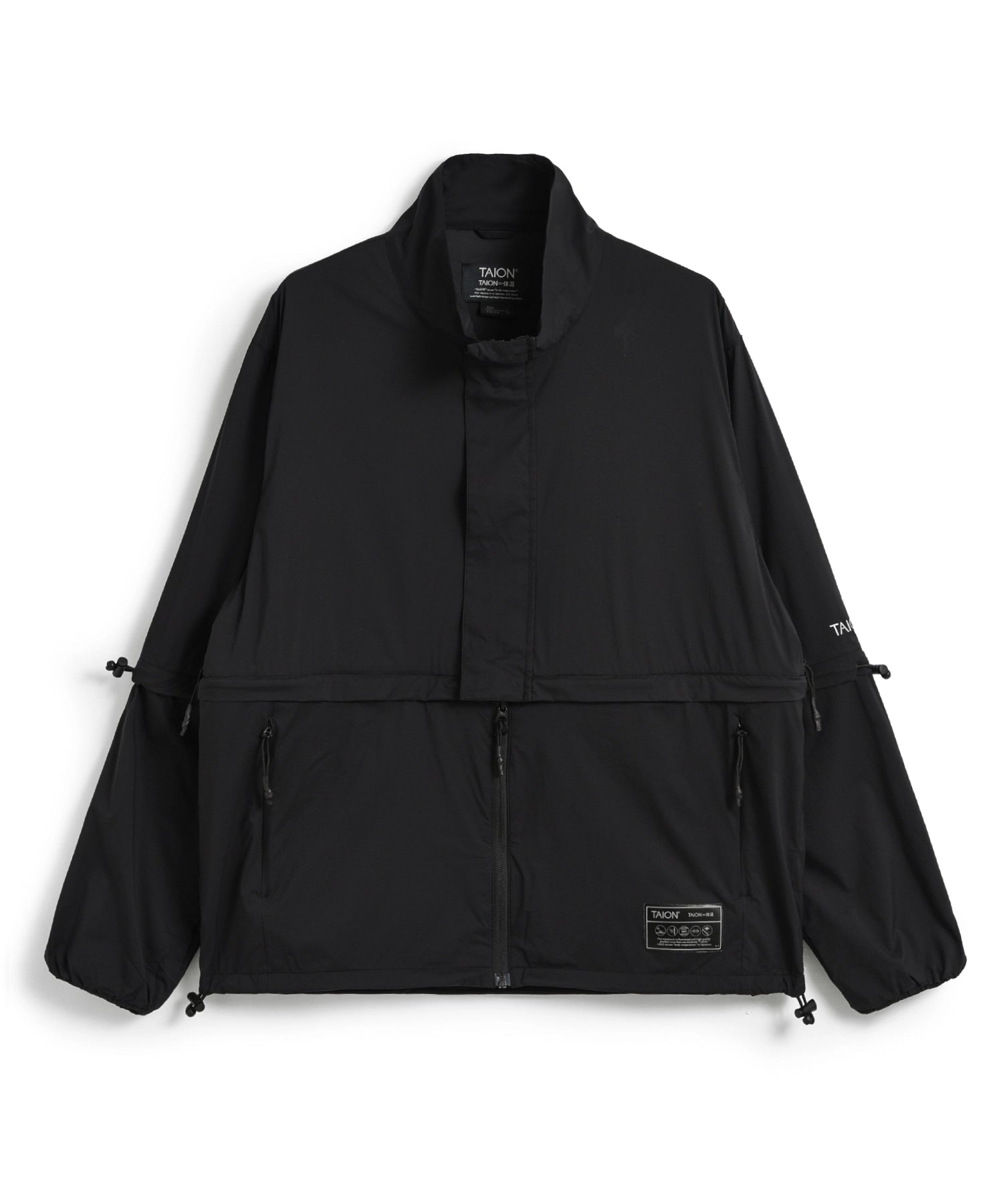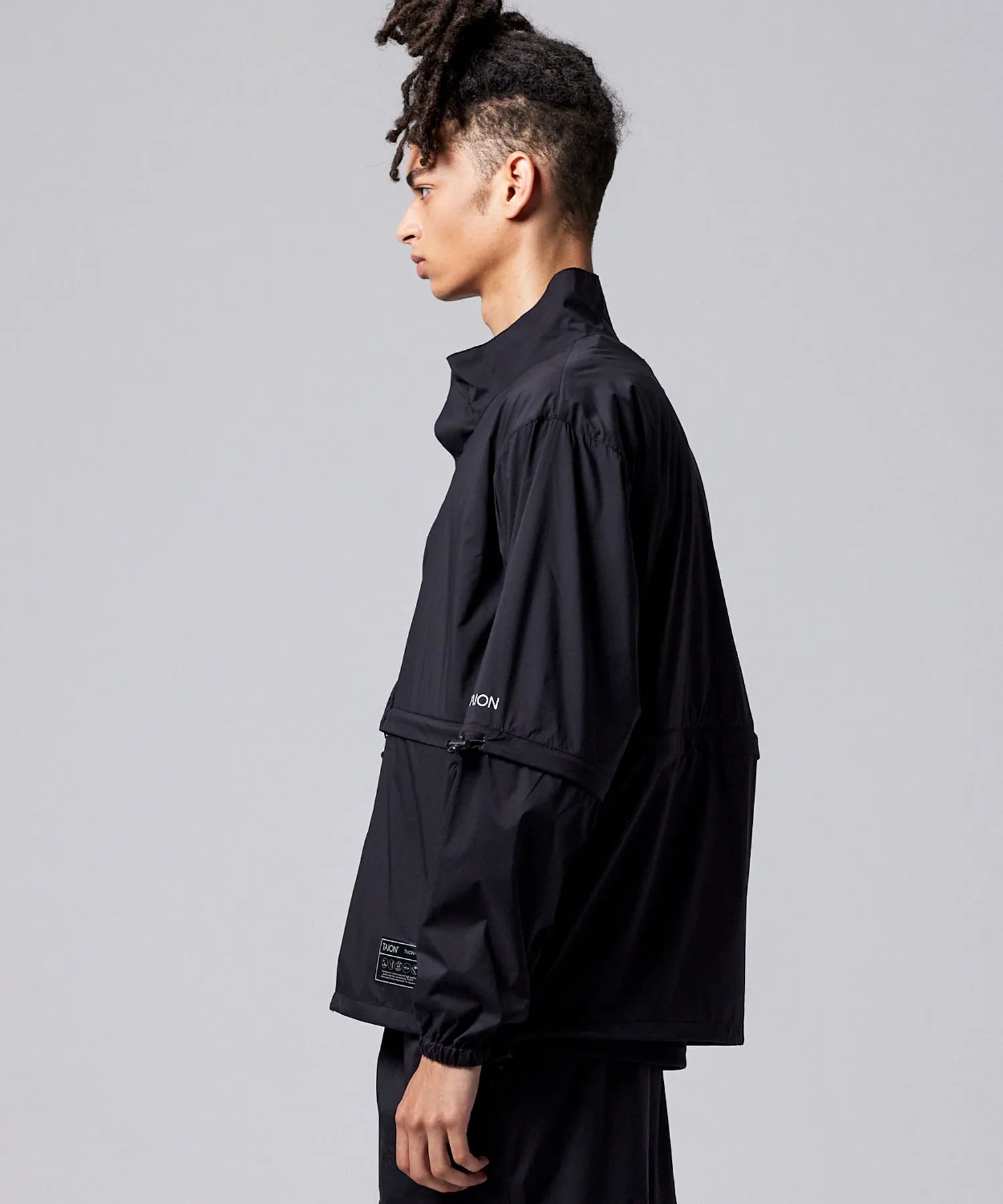 袖や裾はファスナーで取り外し可能な仕様で、気温やシーンに応じた着こなしが楽しめます。(長袖ジャケット・ショート丈ジャケット・半袖ジャケット・半袖ショート丈ジャケットの4通り)