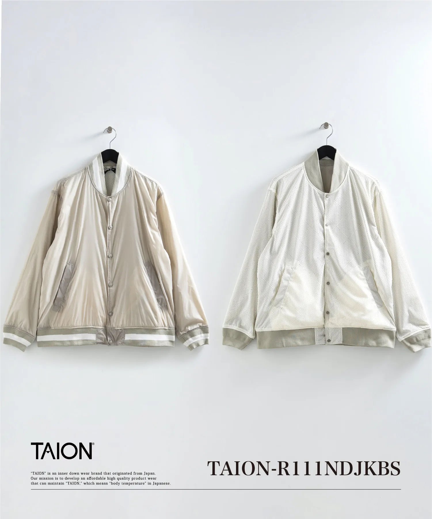 TAIONベーシックラインのスタジアムダウンジャケットの仕様を継承したデザインです。(※ダウンは入りません)