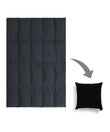 2枚繋ぐとキングサイズ以上の掛け布団サイズに。また、2枚両脇ボタンで繋ぐと2重で厚みある掛け布団としても。