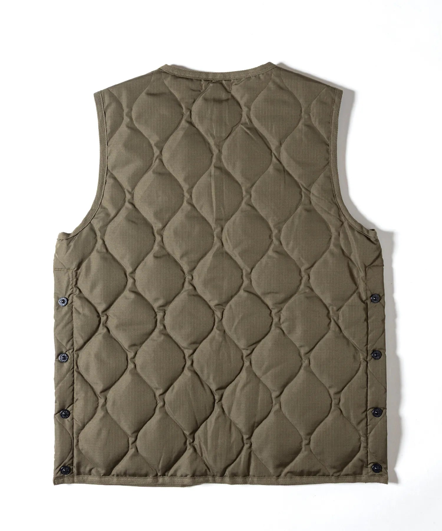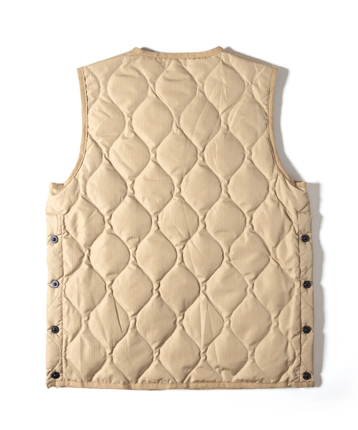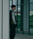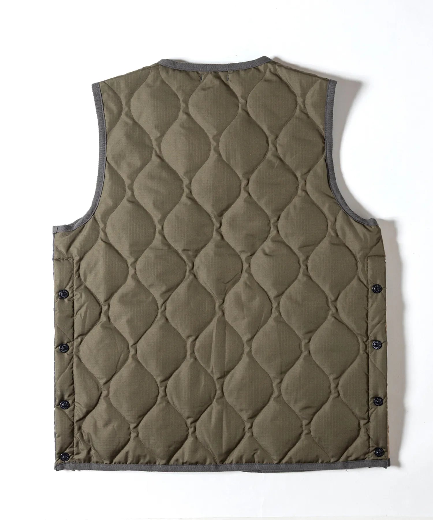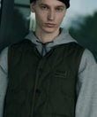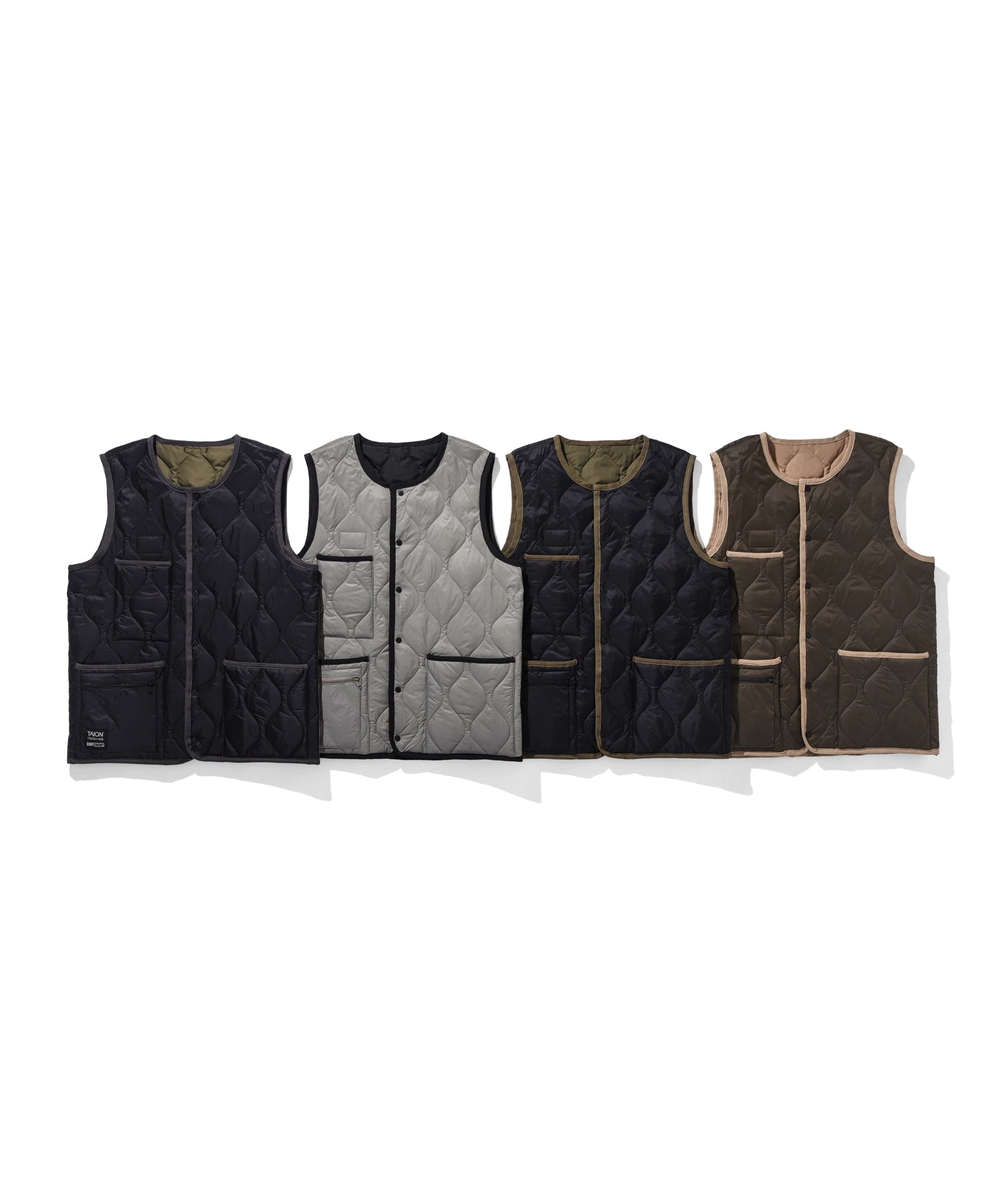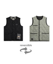 表面はTAIONのミリタリーダウンベストをベースに、裏面はGRIP SWANYならではの多機能ポケットを備えたアウトドア仕様。リバーシブルで用途によって着回しが可能です。胸元にはコラボレーションによるピスネームがアクセント。