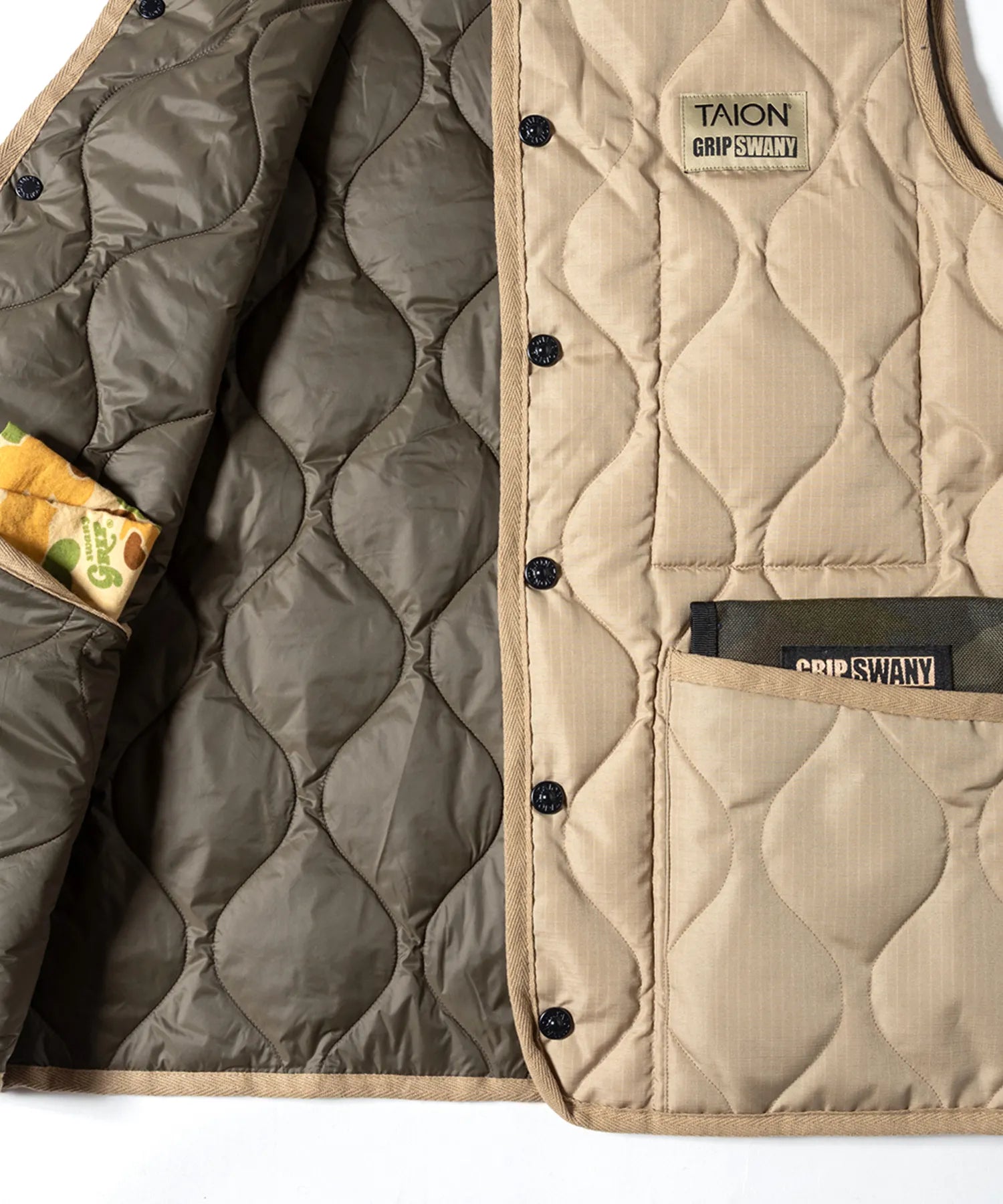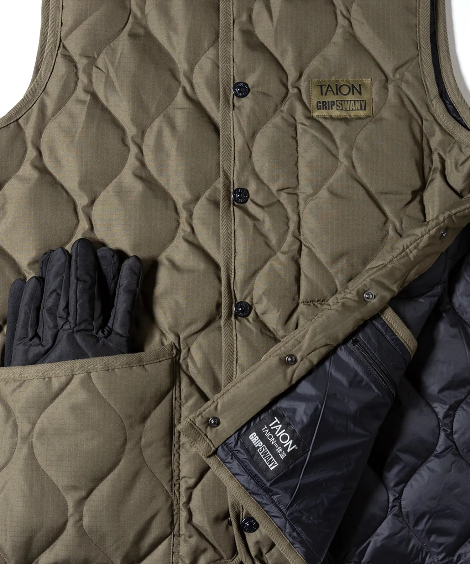 "GRIPSWANY×TAIONが作る、ミリタリー×アウトドアを融合したリバーシブルインナーダウン"
