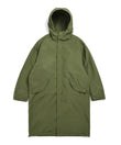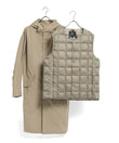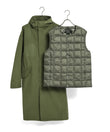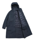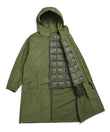 1着で2通りの着こなしが楽しめる、 フードコート(アウター)と、TAIONの定番クルーネックダウンベスト(ライナー:TAION-004)を組み合わせた、着脱可能なセットアウター。 アウターはゆったりとしたオーバーサイズ設計で、中にしっかり着込むことができ、単体でも羽織りやすいデザイン。