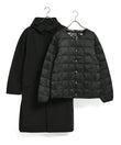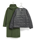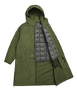 1着で2通りの着こなしが楽しめる、 フードコート(アウター)と、TAIONの定番クルーネックダウンジャケット(ライナー:TAION-104)を組み合わせた、着脱可能なセットアウター。 アウターはゆったりとしたオーバーサイズ設計で、中にしっかり着込むことができ、単体でも羽織りやすいデザイン。