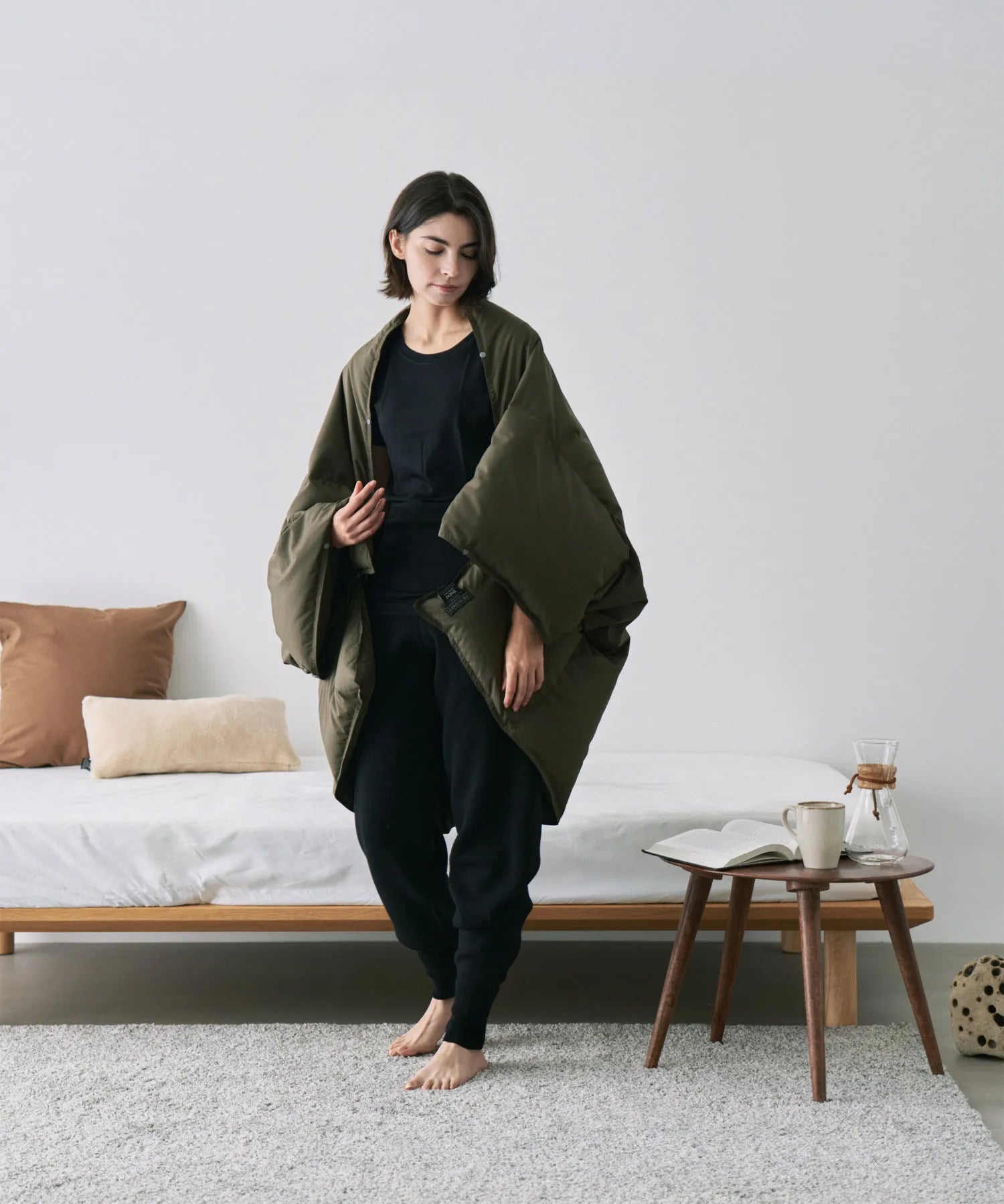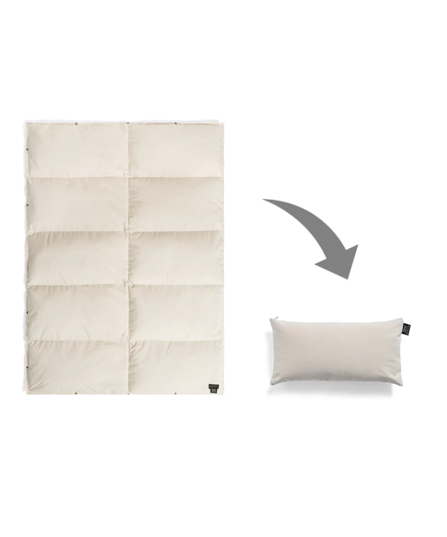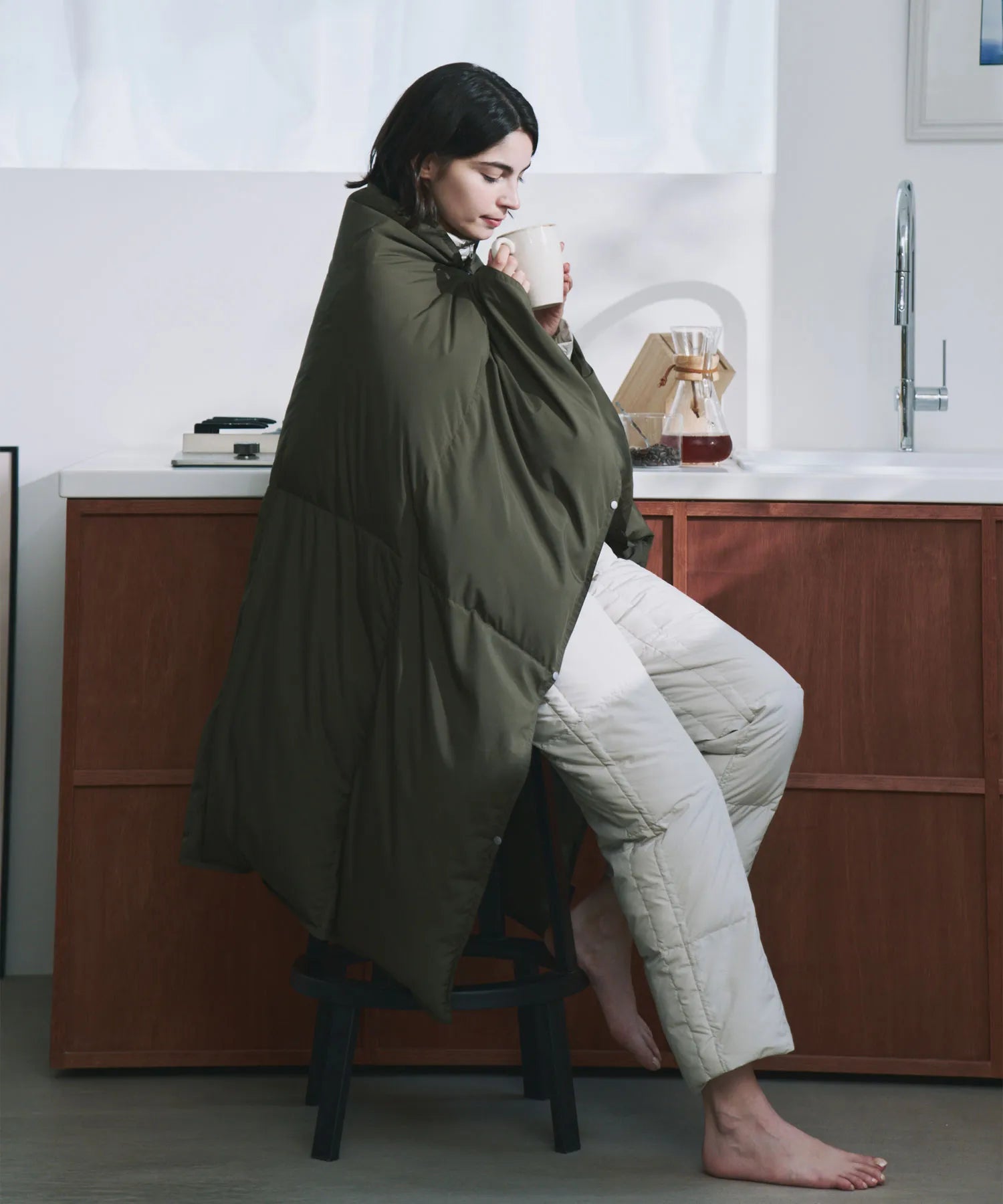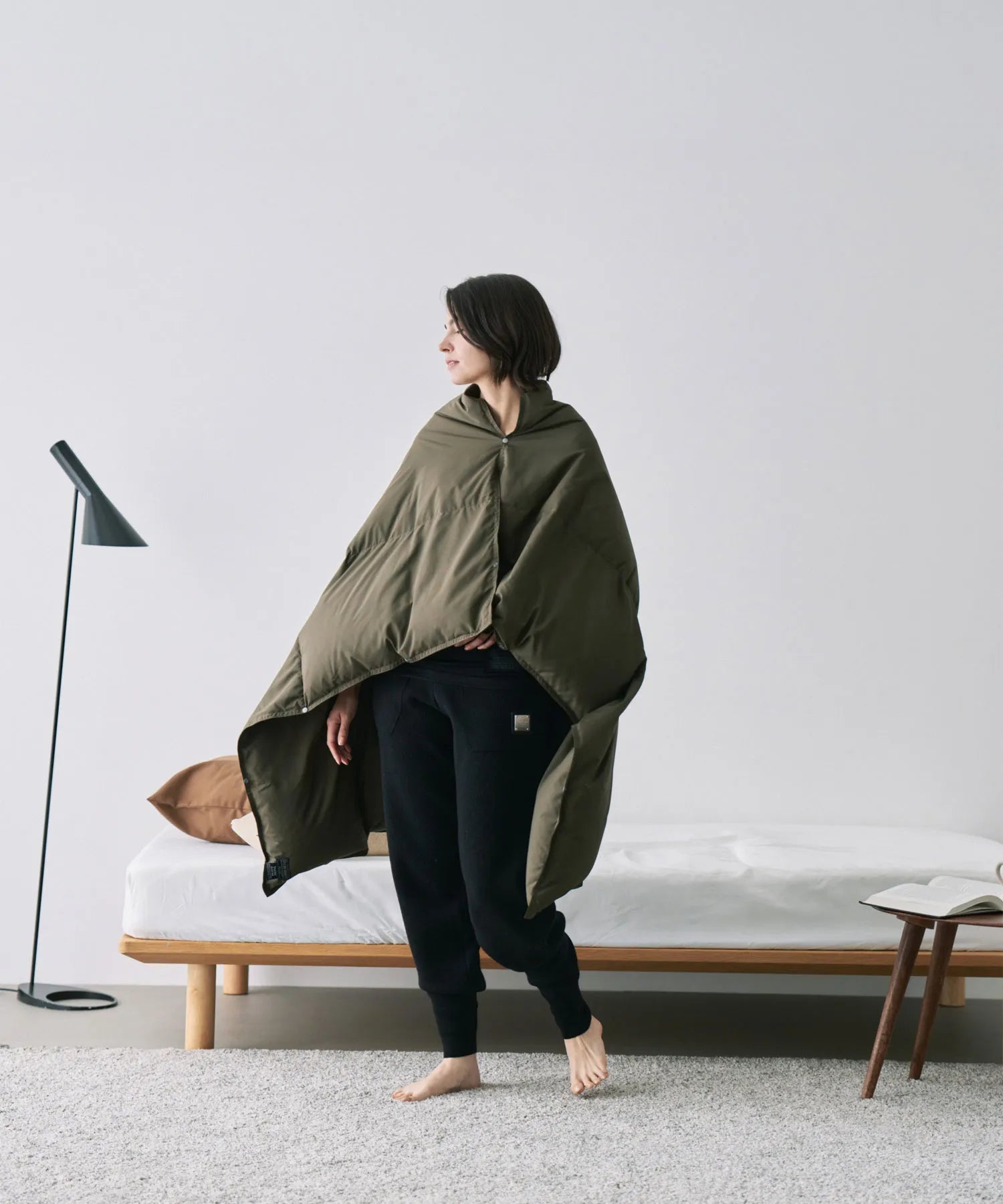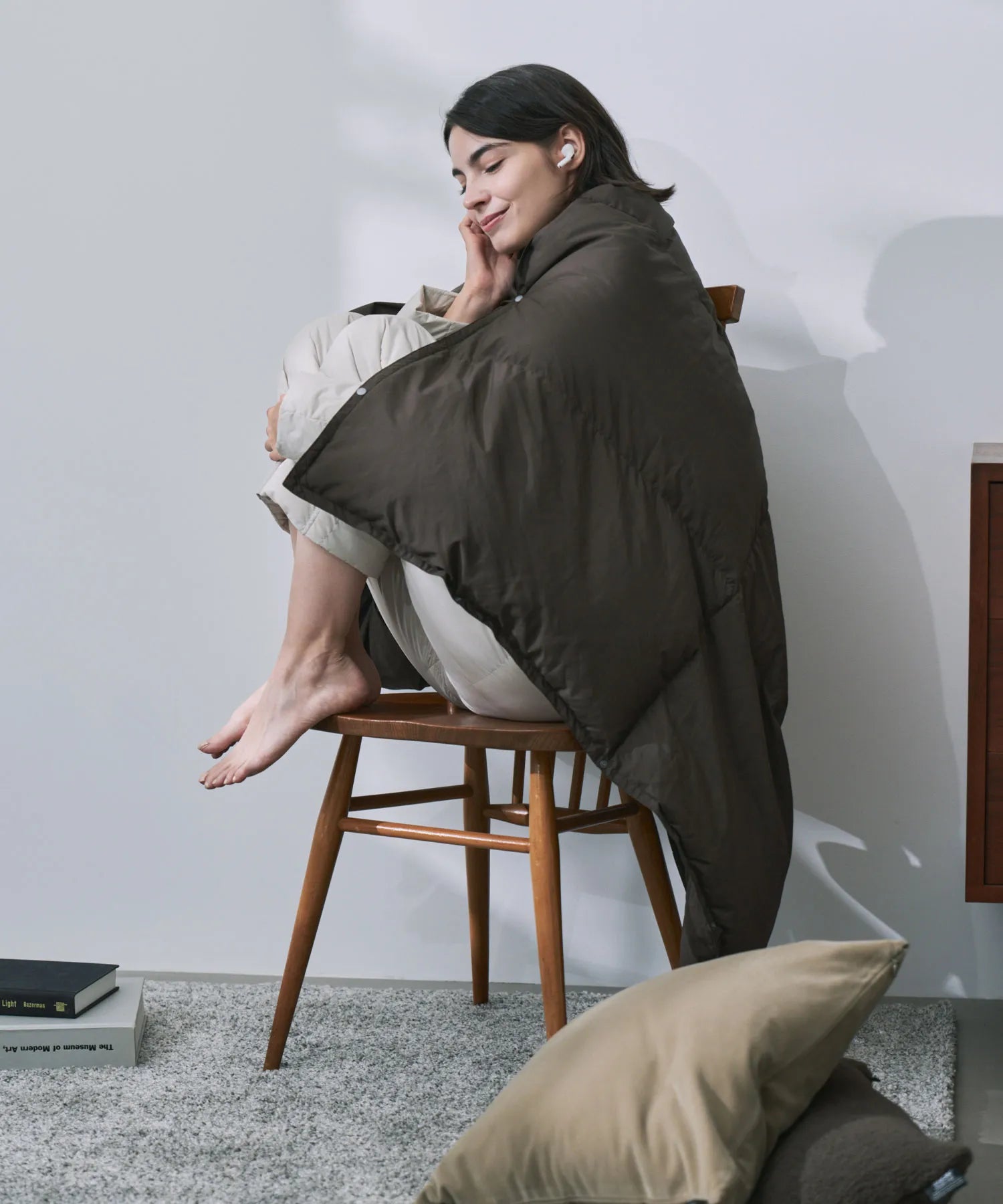 腰から足元までをしっかり温められるコンパクトなサイズ(H105cm×W145cm)で、布団よりも小ぶりなサイズ感は、お子さまの掛け布団としても最適。お昼寝や就寝時にも使いやすく家族でシェアできる1枚です。軽くて暖かい800FPの上質なダウンを使用。柔らかい心地良さで、ふんわりと体を包み込みます。
