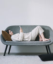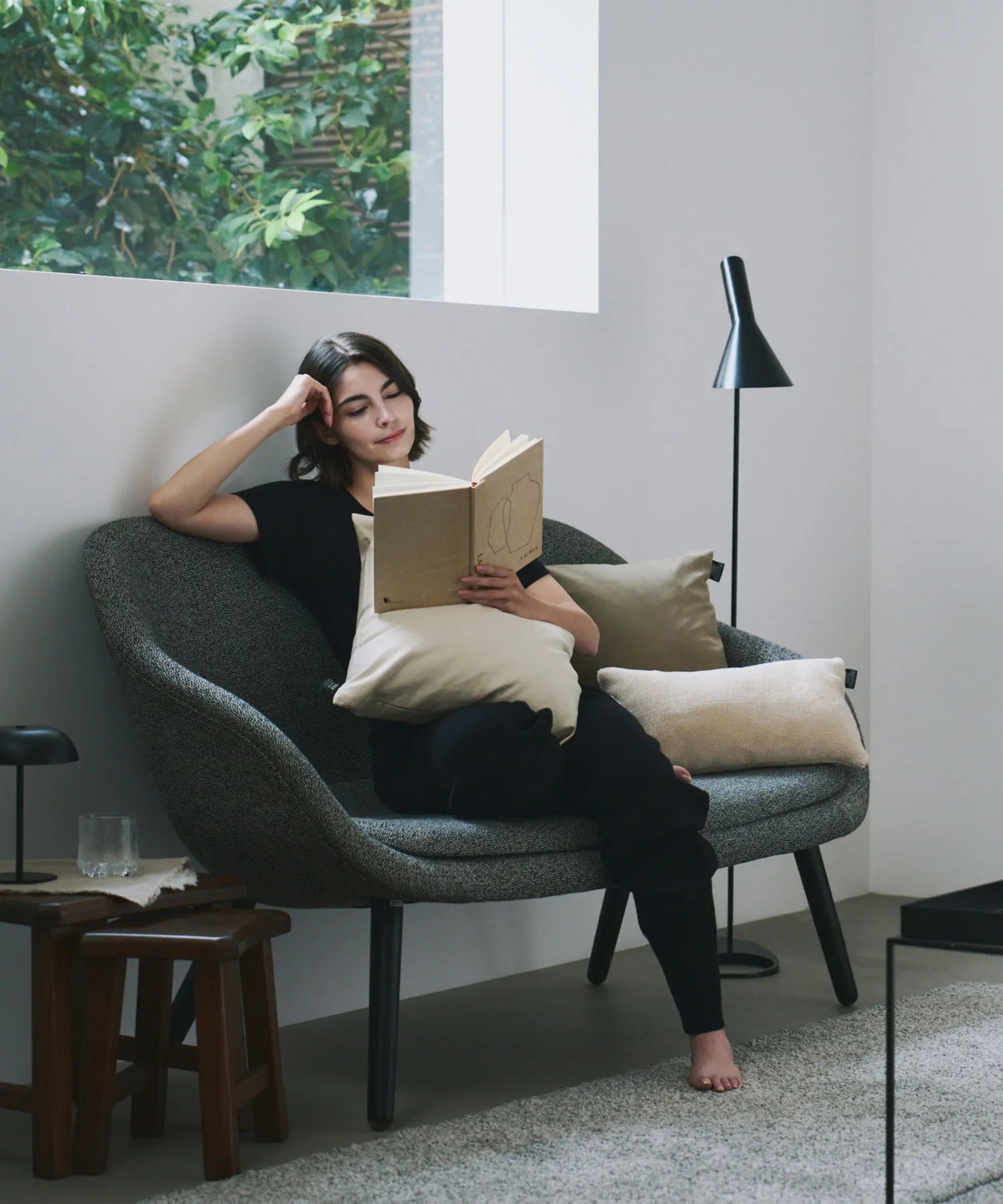 ソファでくつろぐ時さっと掛けるのにちょうど良く、持ち運びしやすさも魅力です。両端についたボタンは、もう1枚(別売り)と連結して使うことも可能。