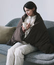 ひざ掛けとしてはもちろん、ケープのように羽織ったり、肩や腰に巻いて使うのもおすすめ。使わない時は折りたたんでクッションへ。ソファやベットサイドにもぴったりです。