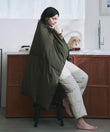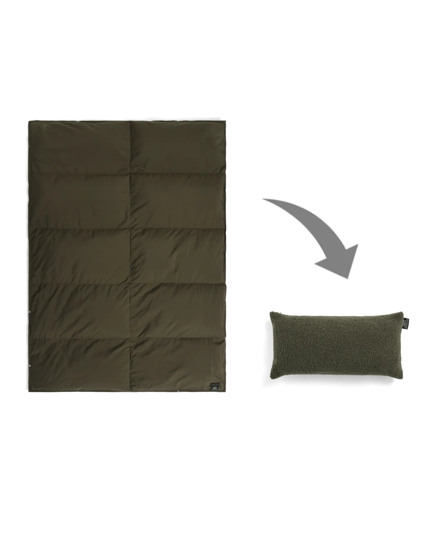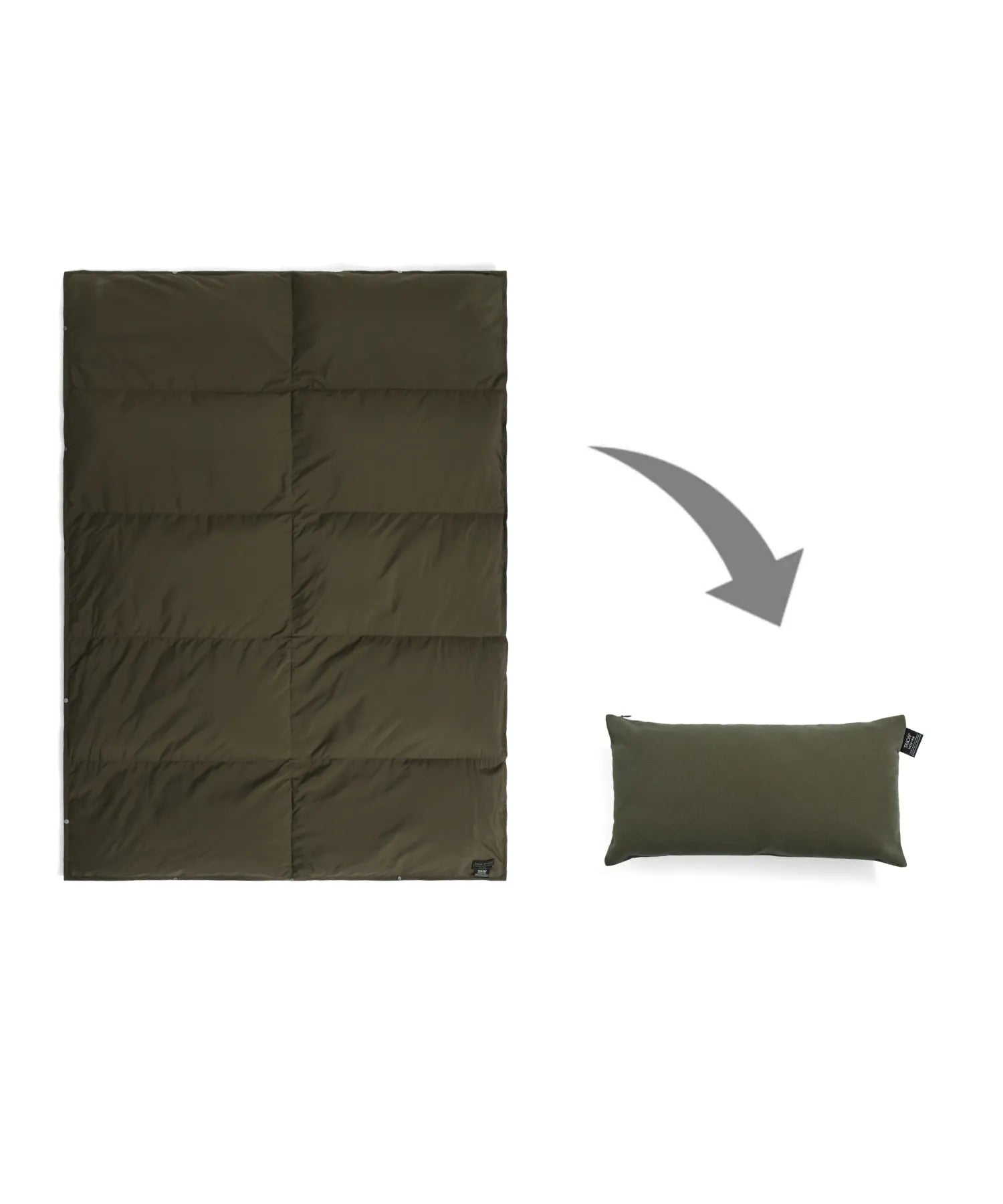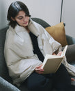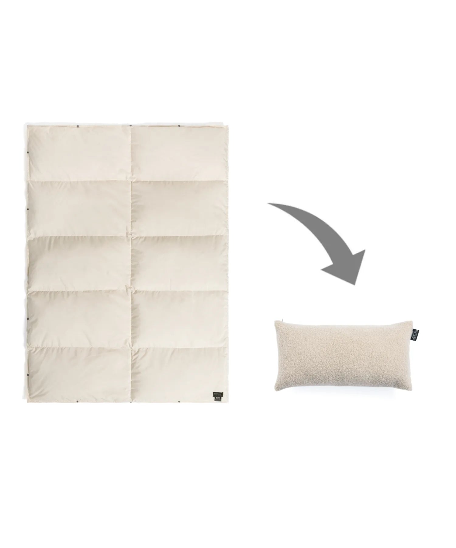 “「使わないときはクッションに」マルチに使えるダウン膝掛け"