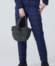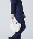 "軽くて柔らかなフォルムが特徴的、小型ダウントートバッグ"