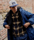 表面はTAIONの定番デザインを踏襲し、裏面にはクラシックなガンクラブチェックプリント、1枚で2つの表情を楽しめるダウンウェアです。ざっくり羽織れるオーバーサイズが魅力です。