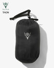 〈TAION〉 のインラインモデルをベースにシルエットを調整し、 ゆとりを持たせた別注仕様に仕上げました。さらに、 コンパクトに持ち運べるパッカブル仕様の収納袋を付属し、 リフレクタープリントでオリジナルロゴをあしらっています。