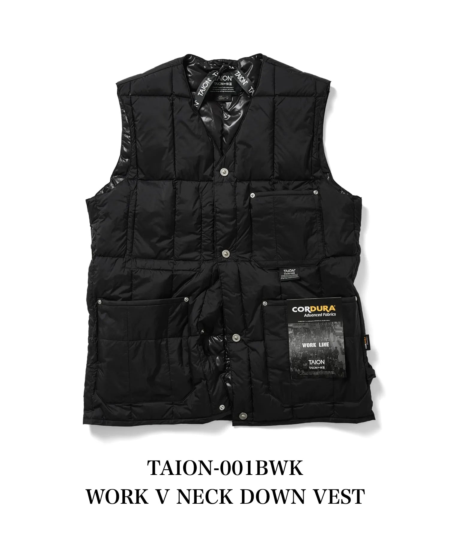【UNISEX】ワーク Vネックボタン ダウンベスト(TAION-001BWK)