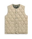 柔らかく着心地を重視した、クルーネックのミリタリーダウンベスト。