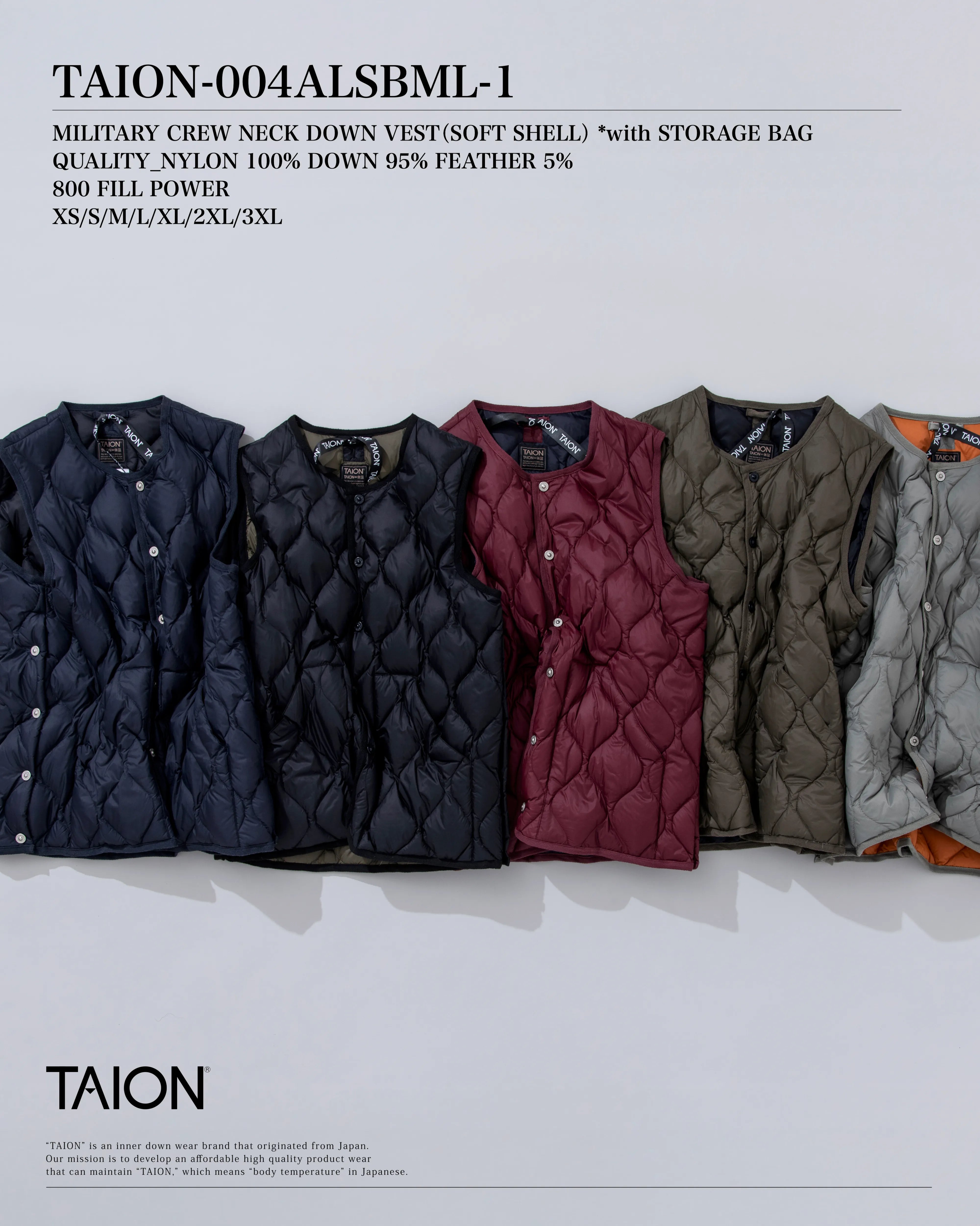 【WOMEN】ミリタリー クルーネック ダウンベスト-ソフトシェル(TAION-W004ALSBML-1)