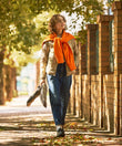 ※マフラー巻き方:裏面のトンネル部分にもう片方の先端部分を通して首に巻きます。