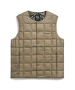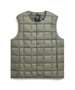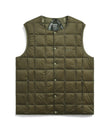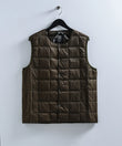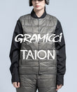 左胸の"GRAMICCI"刺繍がアクセントになった"GRAMICCI×TAION"のダウンベストです。