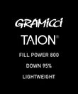 TAIONは、嵩高の高い800FPのダウン(羽毛)を採用しています。 一般で使用されるダウン(一般:600FP前後)よりも軽くて、 暖かい空気をたくさん含むことができます。