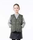 【KIDS】ミリタリー Vネックボタン インナーダウンベスト-ソフトシェル