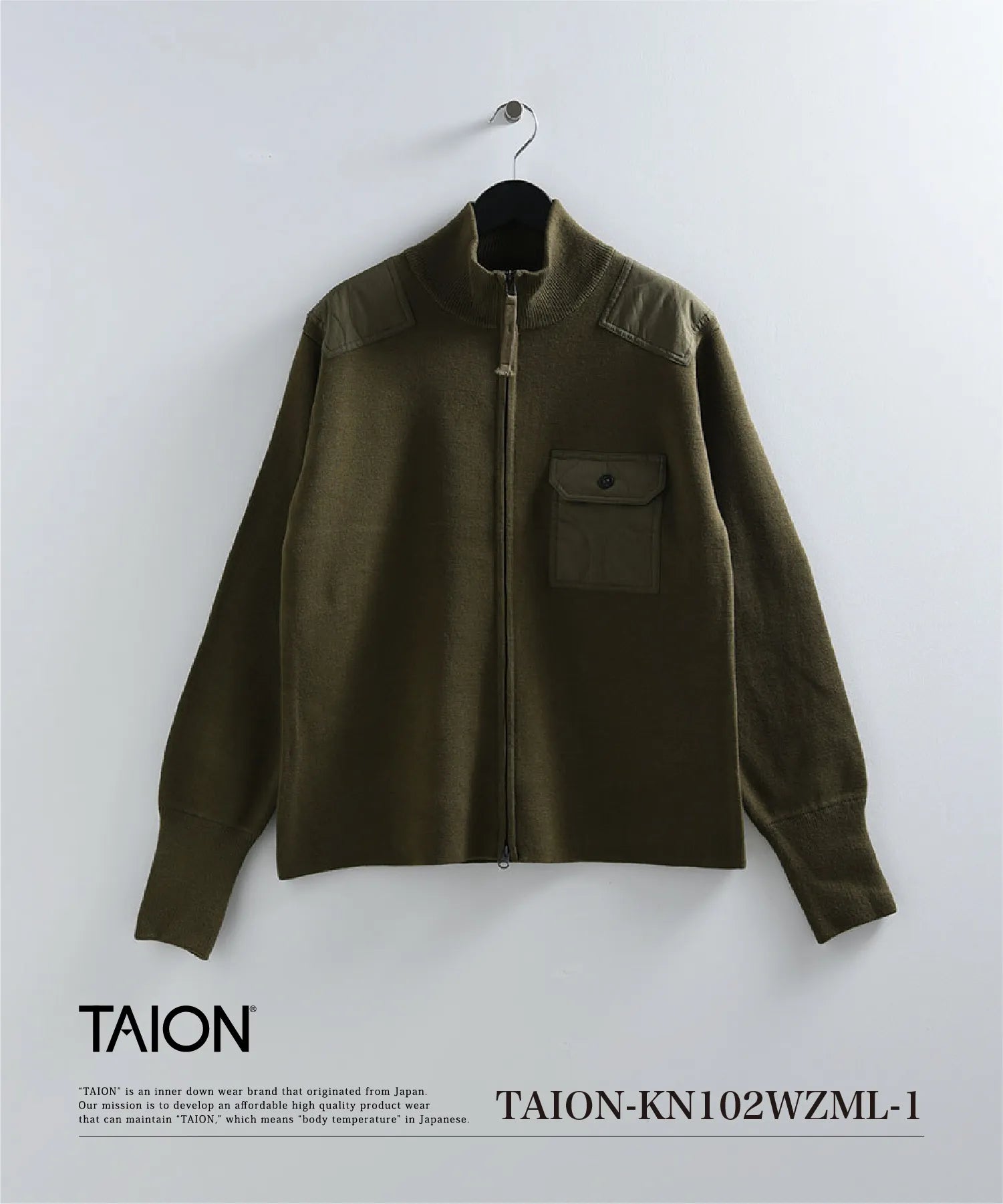 【UNISEX】ノンダウン ミリタリー Wジップ ハイネック ニット(TAION-KN102WZML-1)
