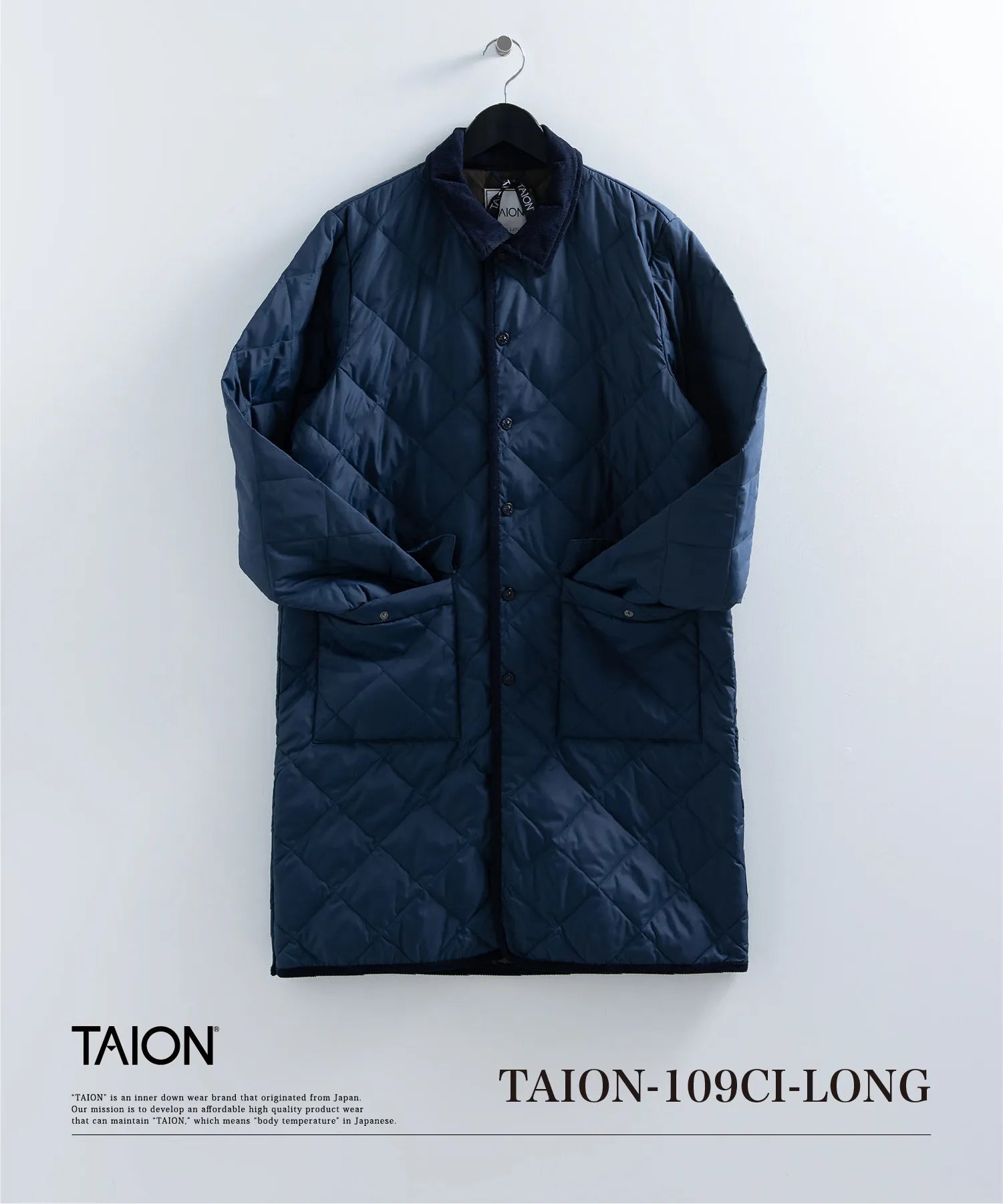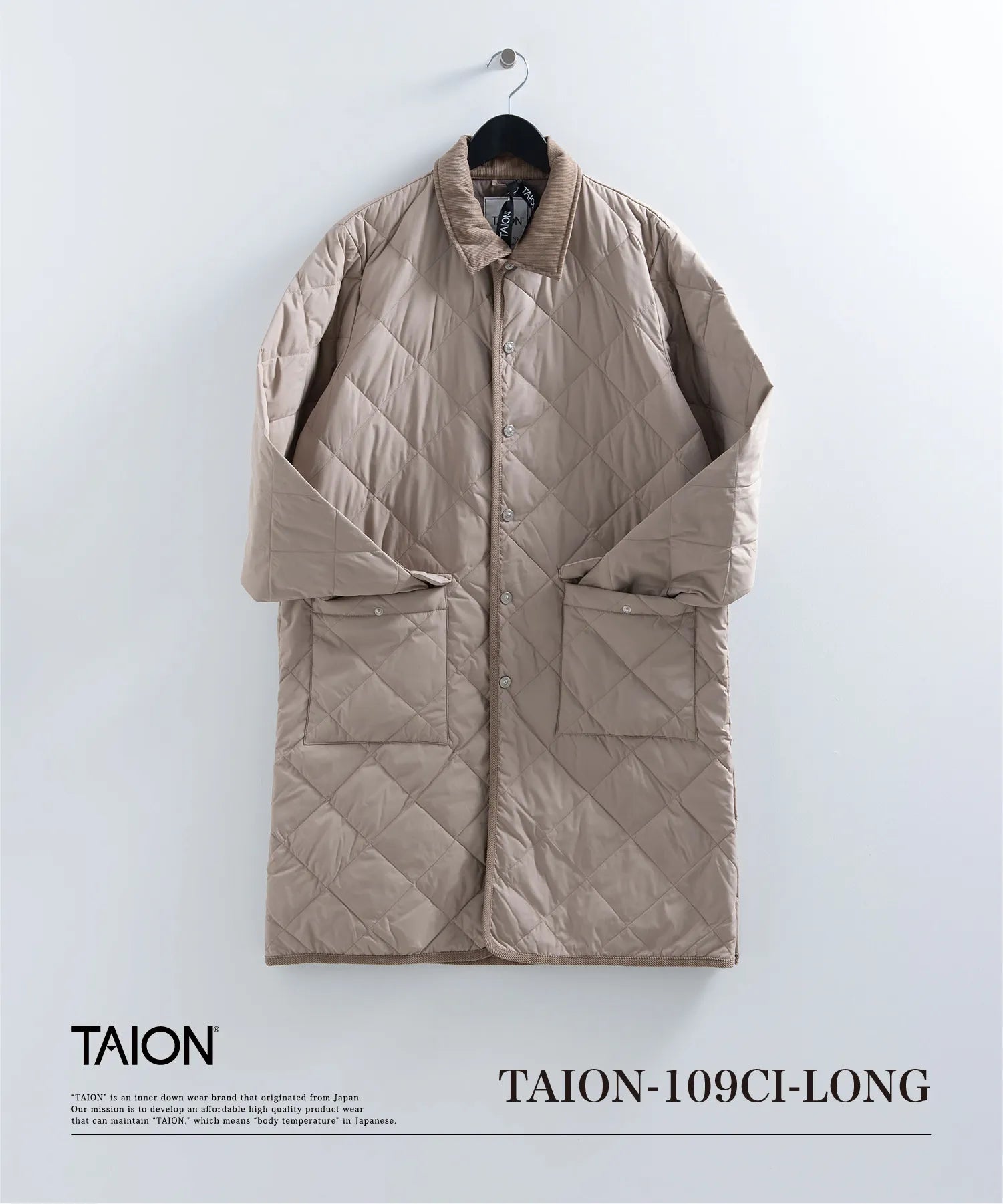 【UNISEX】シティ パイピングカラー ロングダウンコート(TAION-109CI-LONG)