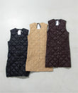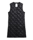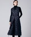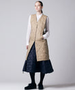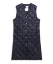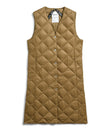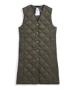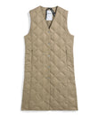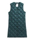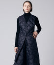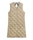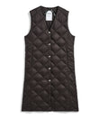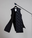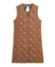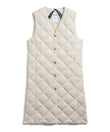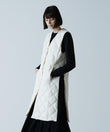 ダイヤキルトが上品な印象、レイヤードも楽しめるロング丈のVネックダウンベスト。