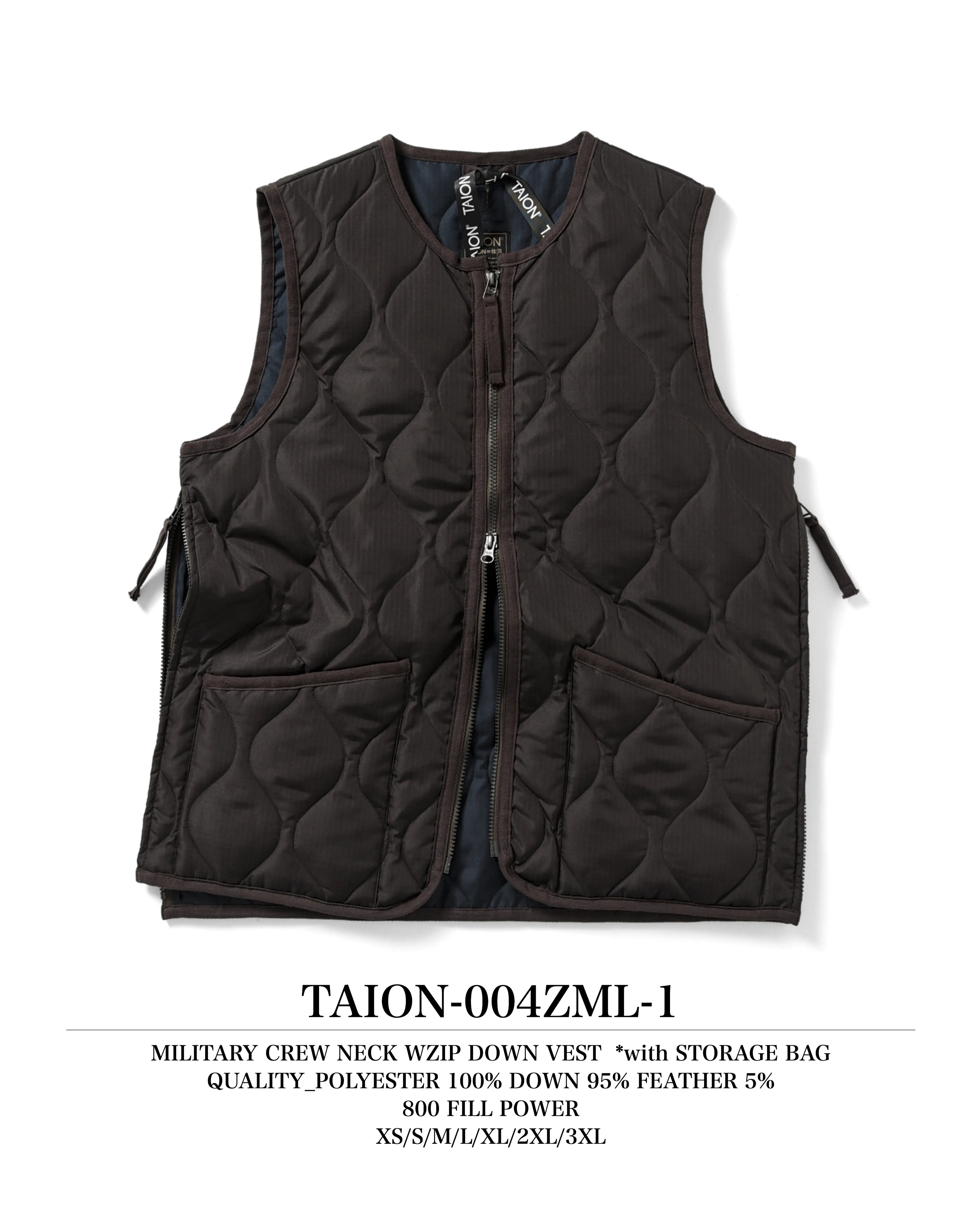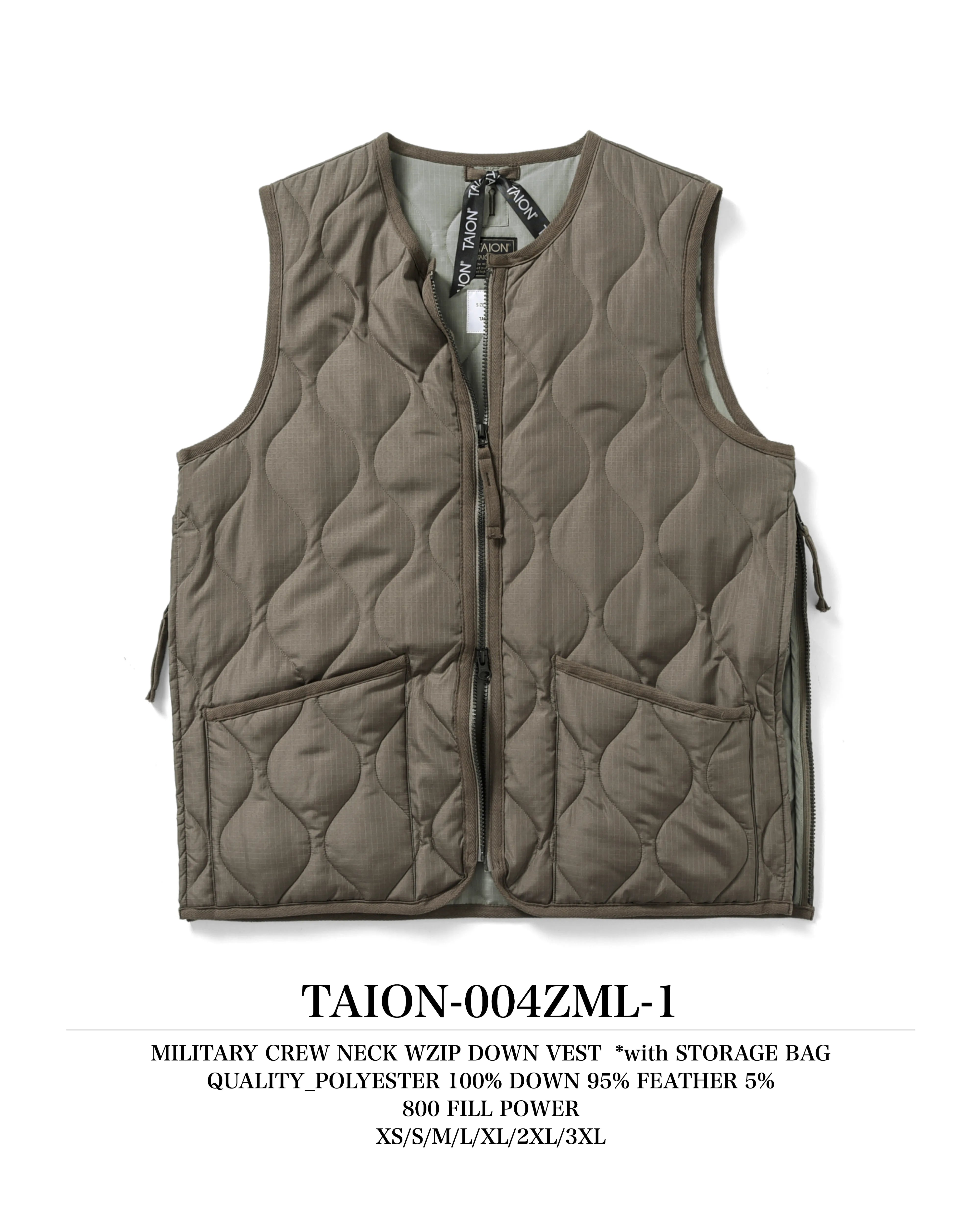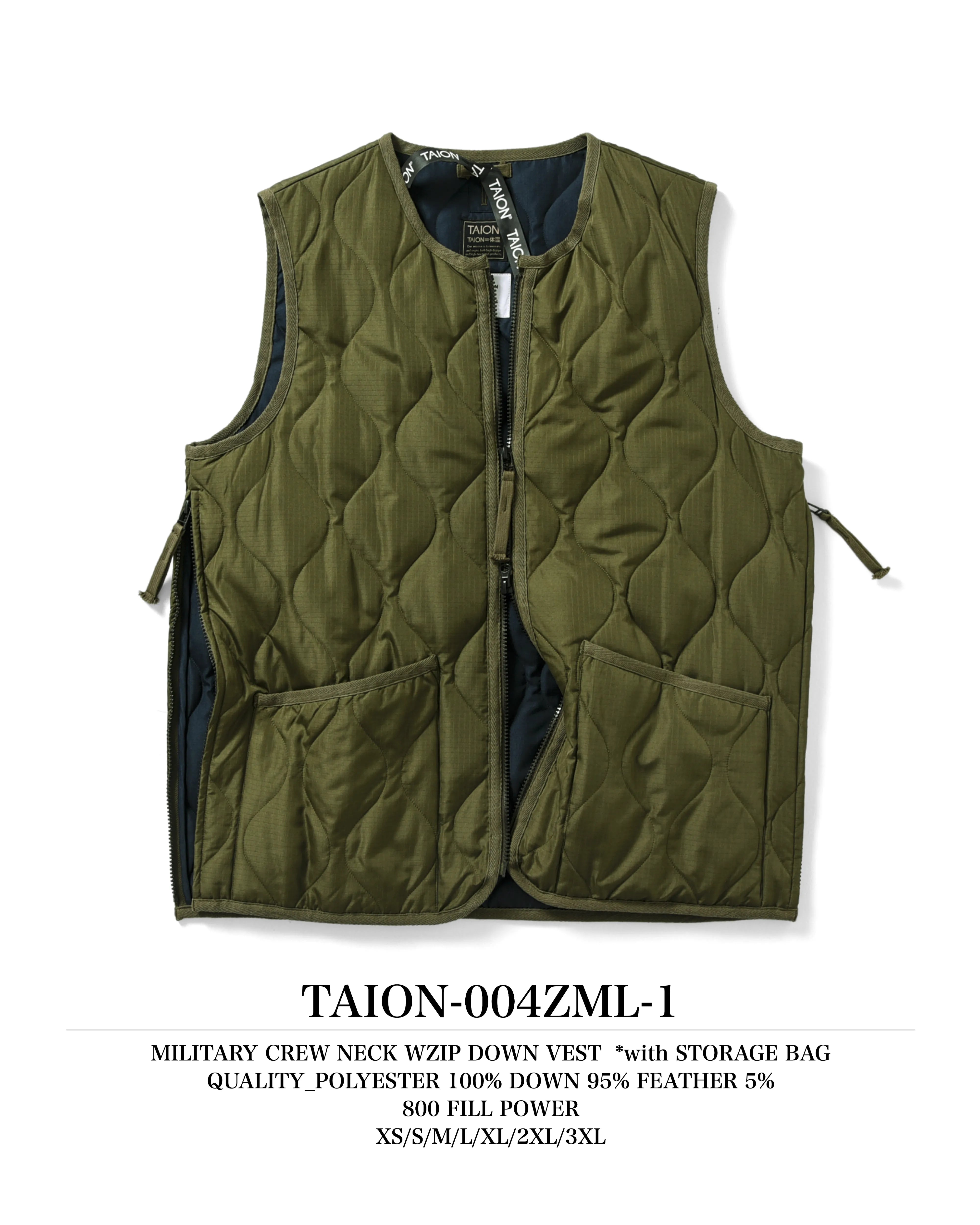【UNISEX】ミリタリー クルーネックWジップ ダウンベスト(TAION-004ZML-1)