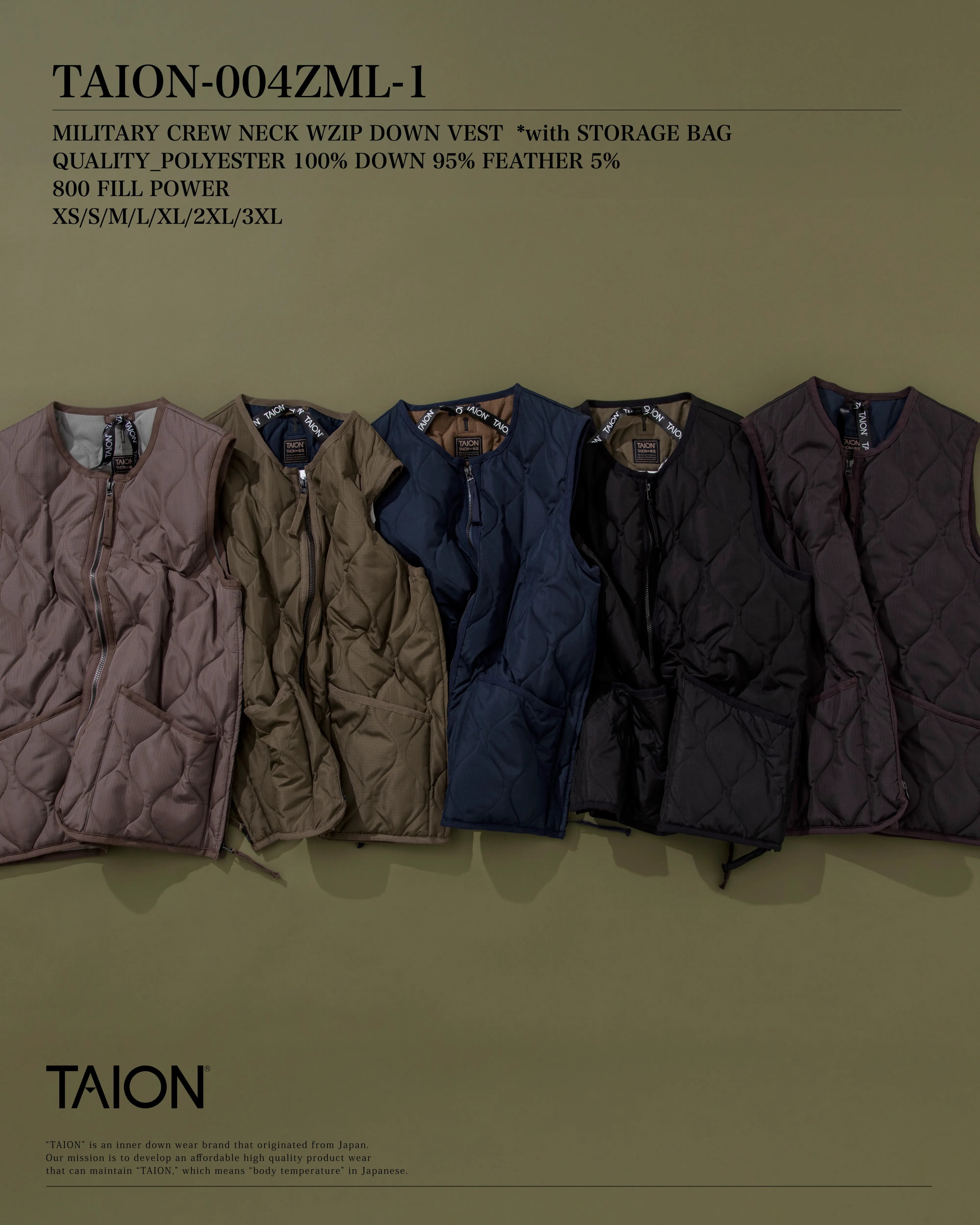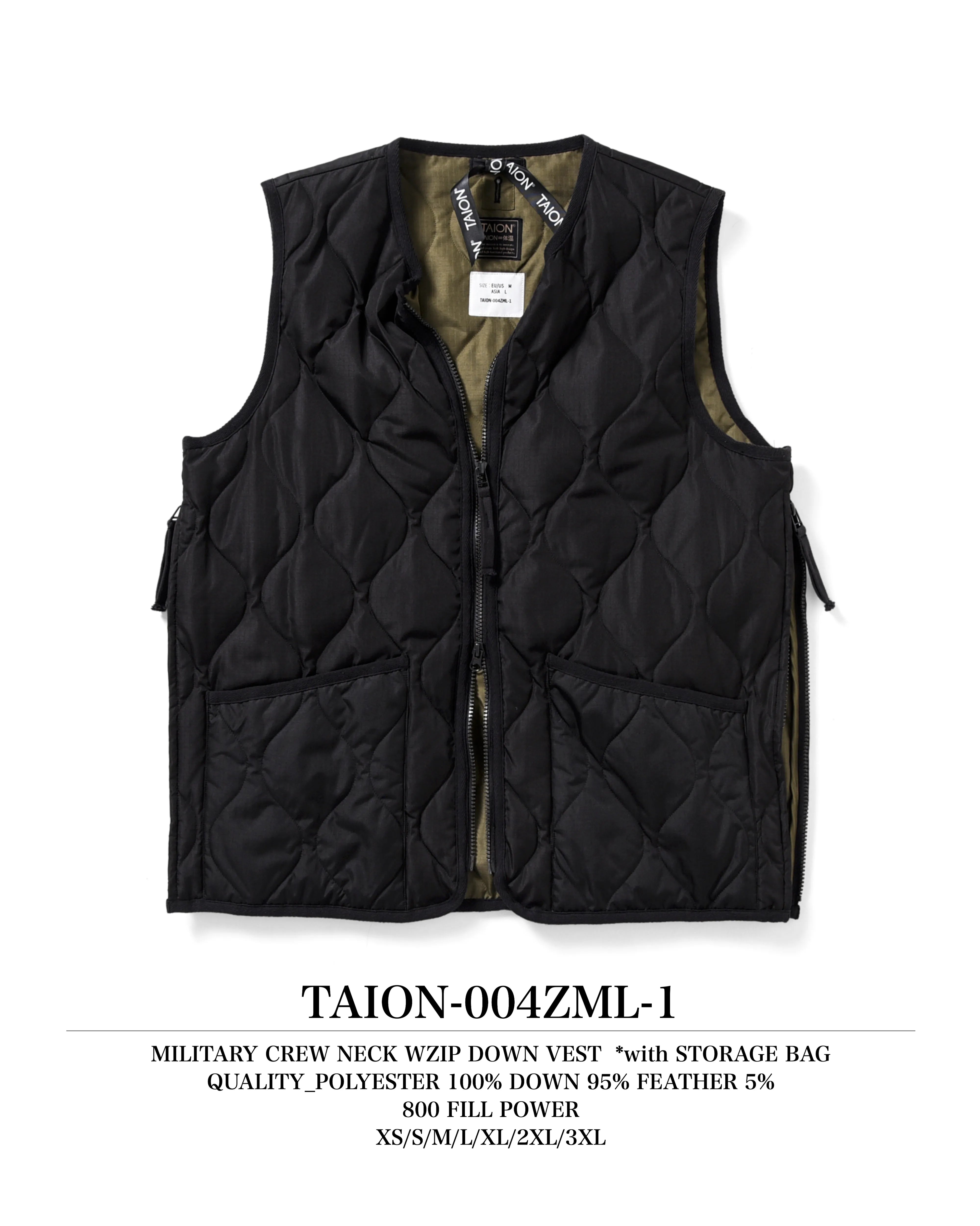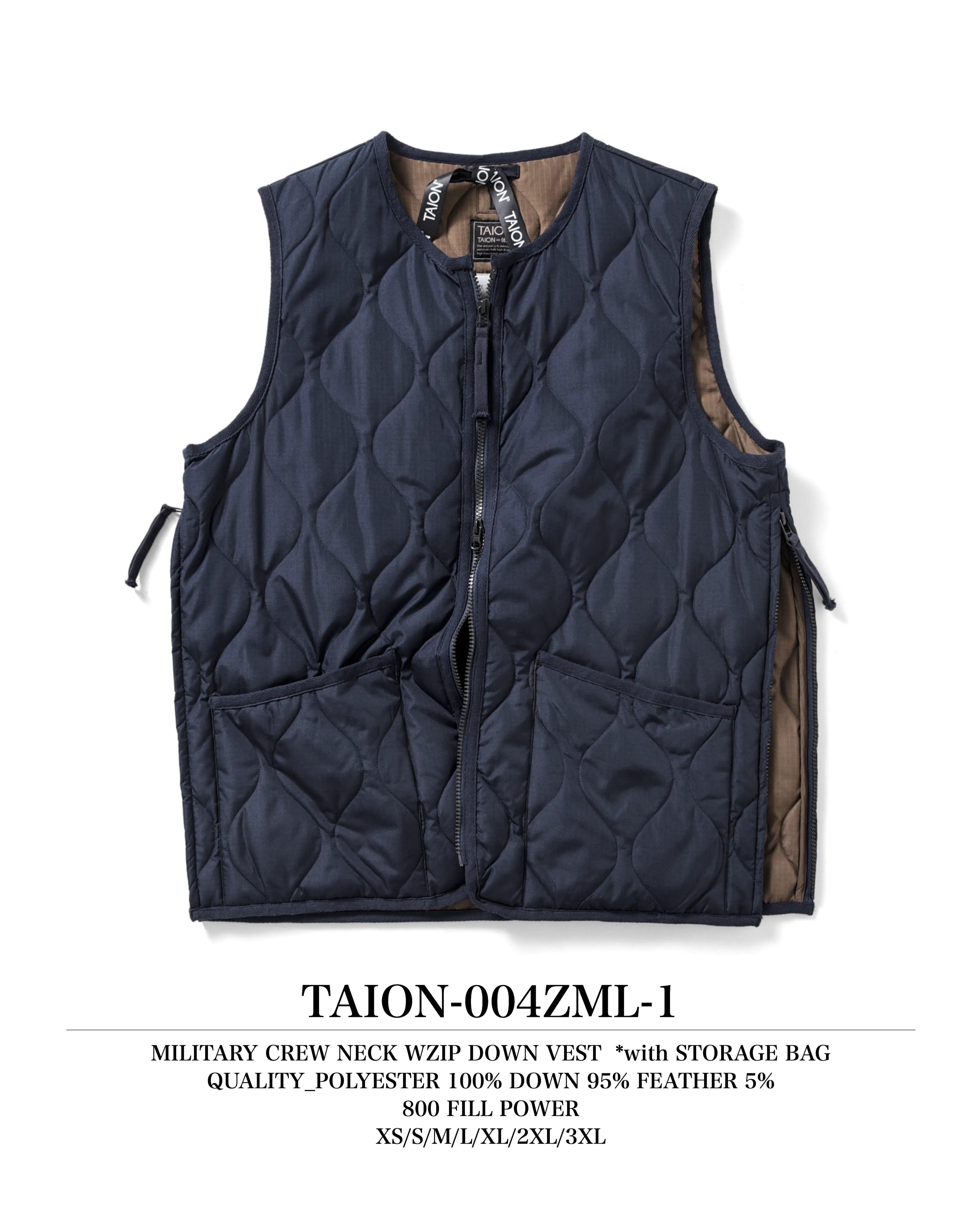 【UNISEX】ミリタリー クルーネックWジップ ダウンベスト(TAION-004ZML-1)