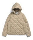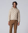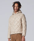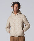 柔らかく心地いい着用感、ダイヤキルトがアクセントなフード付きダウンジャケット。
