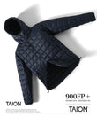 TAIONは、嵩高の高い800FPのダウン(羽毛)を採用しています。 一般で使用されるダウン(一般:600FP前後)よりも軽くて、 暖かい空気をたくさん含むことができます。