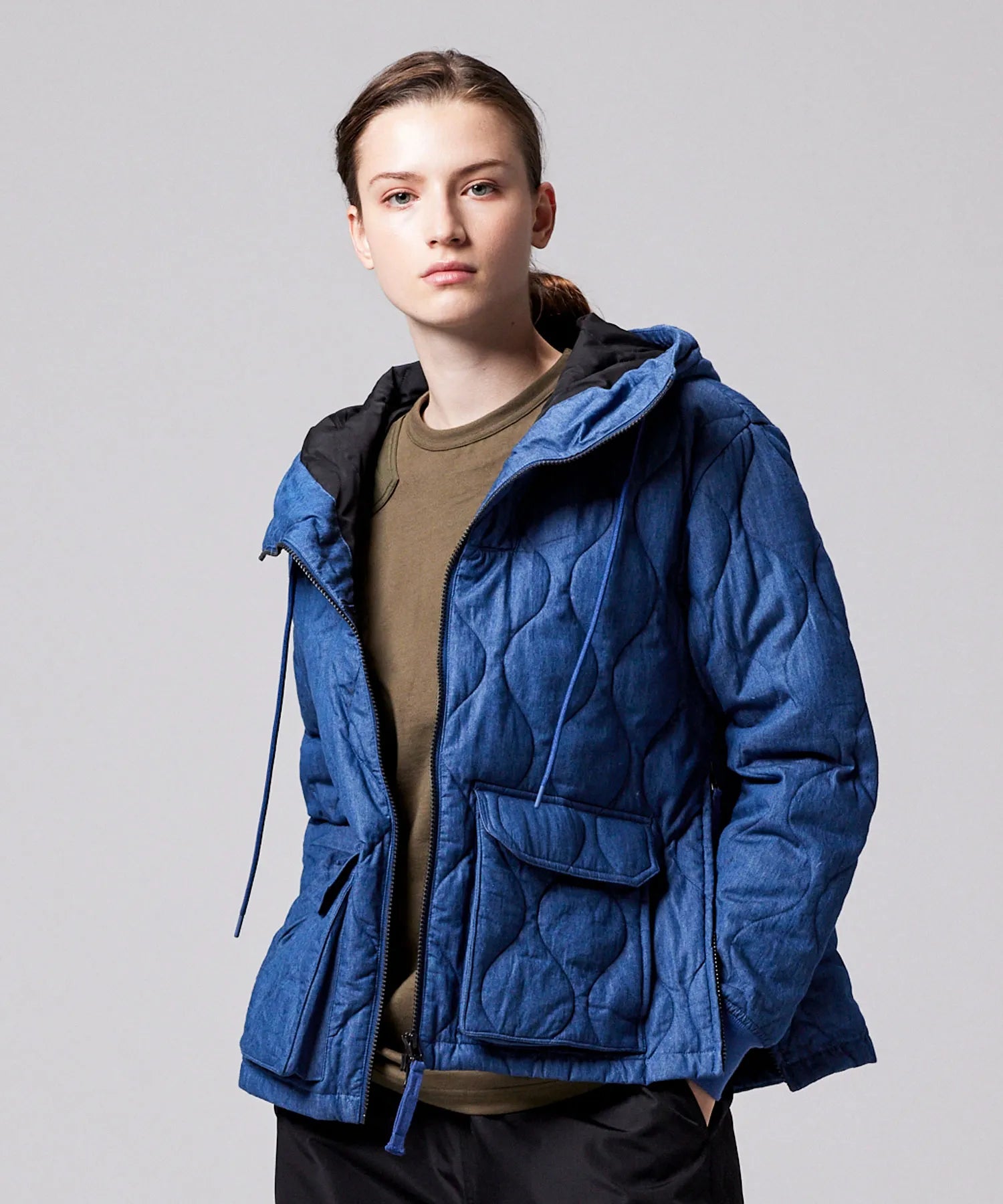 | 素材 | 表地:ポリエステル100% 表地(デニム):綿100% 裏地:ポリエステル100% リブ部分:ポリエステル100% 中わた:ダウン95% フェザー5% |