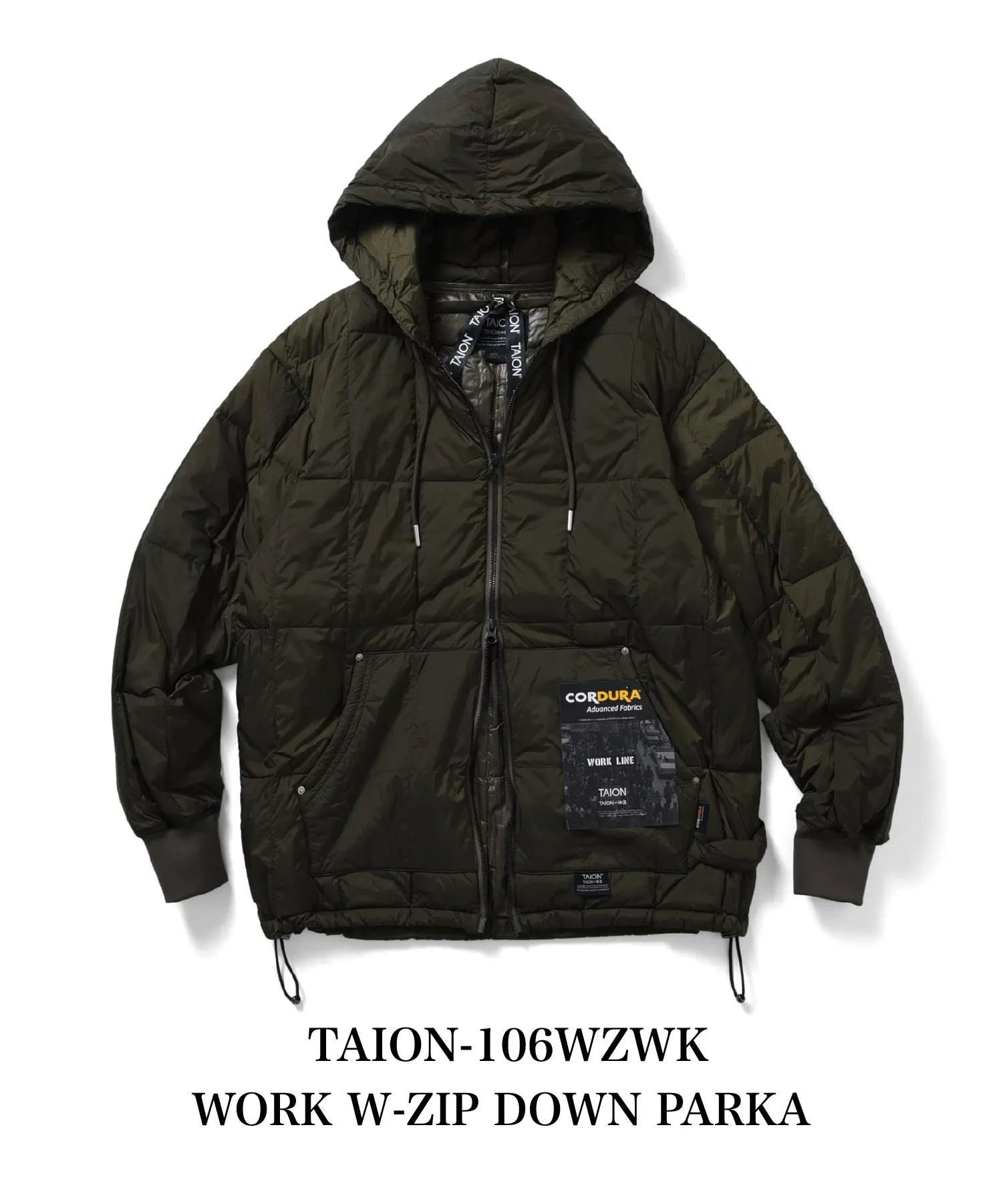 【UNISEX】ワーク Wジップリブ ダウンパーカー(TAION-106WZWK>