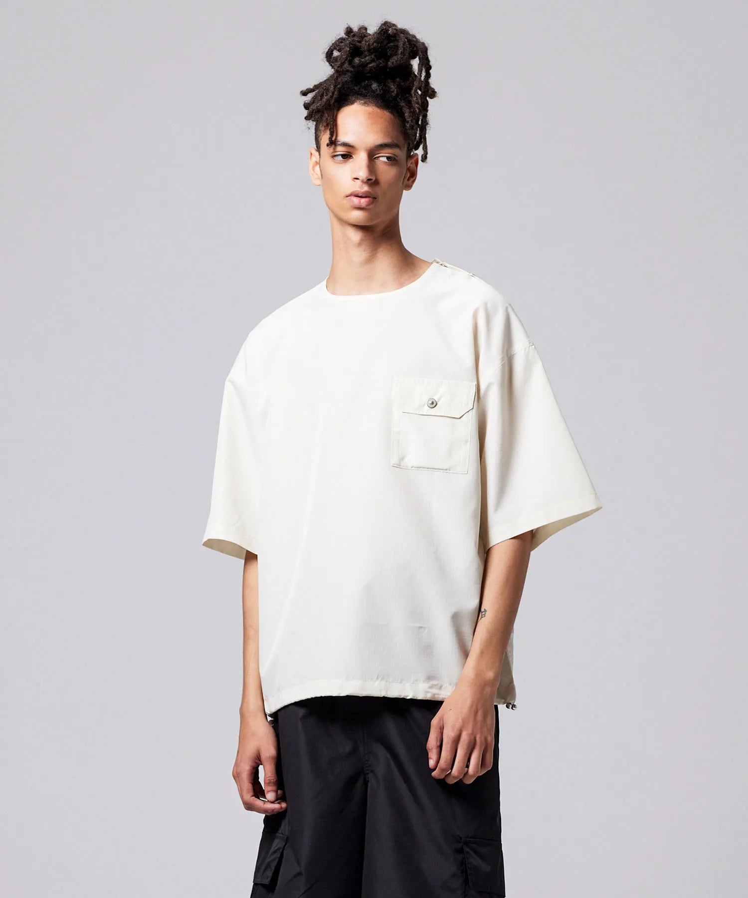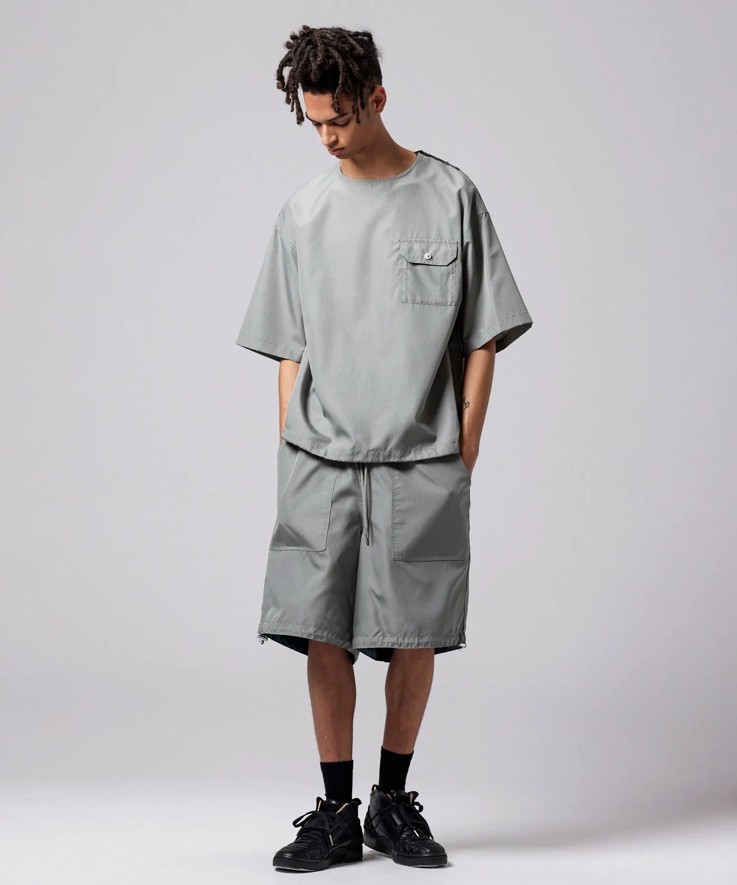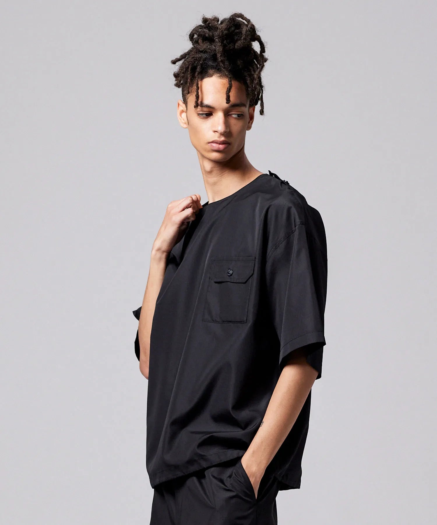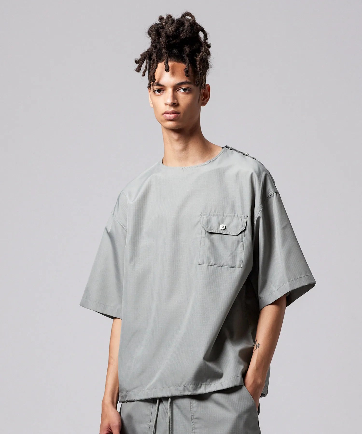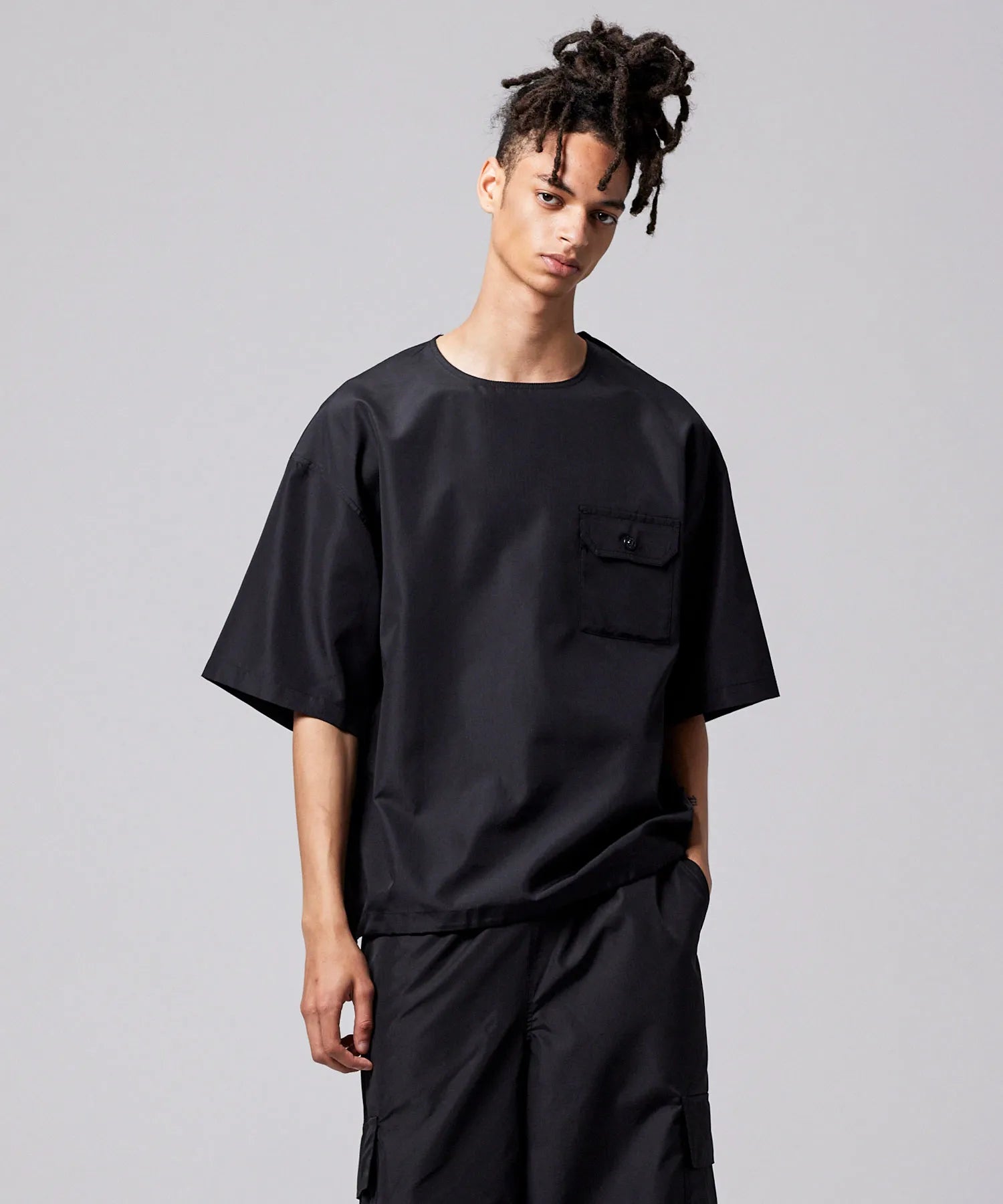 布帛素材を使用した、ミリタリー素材の半袖カットソー。