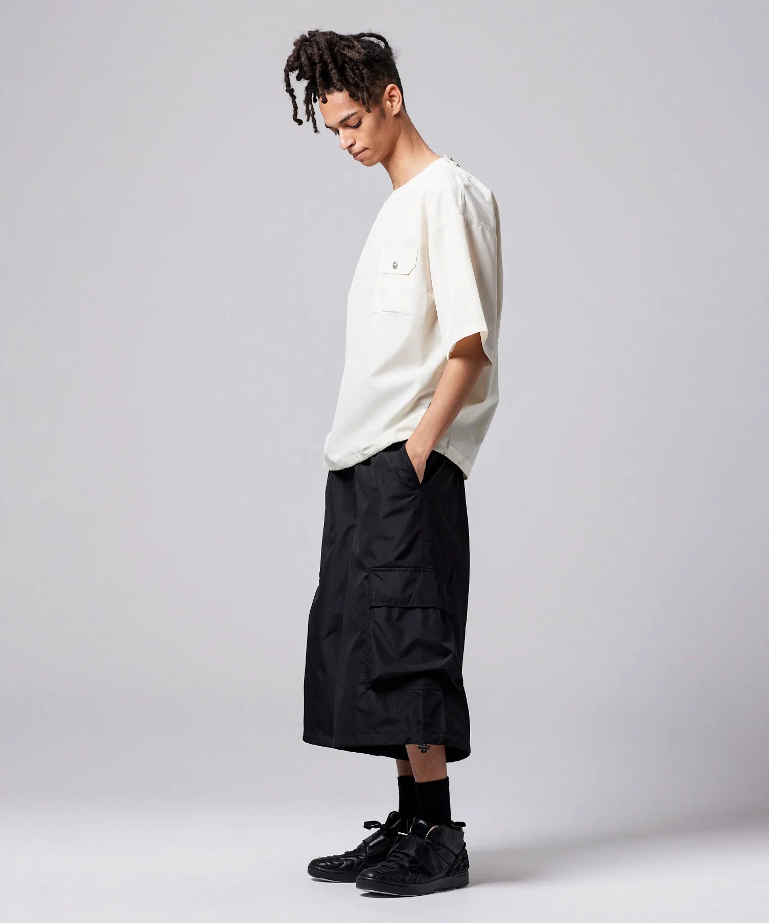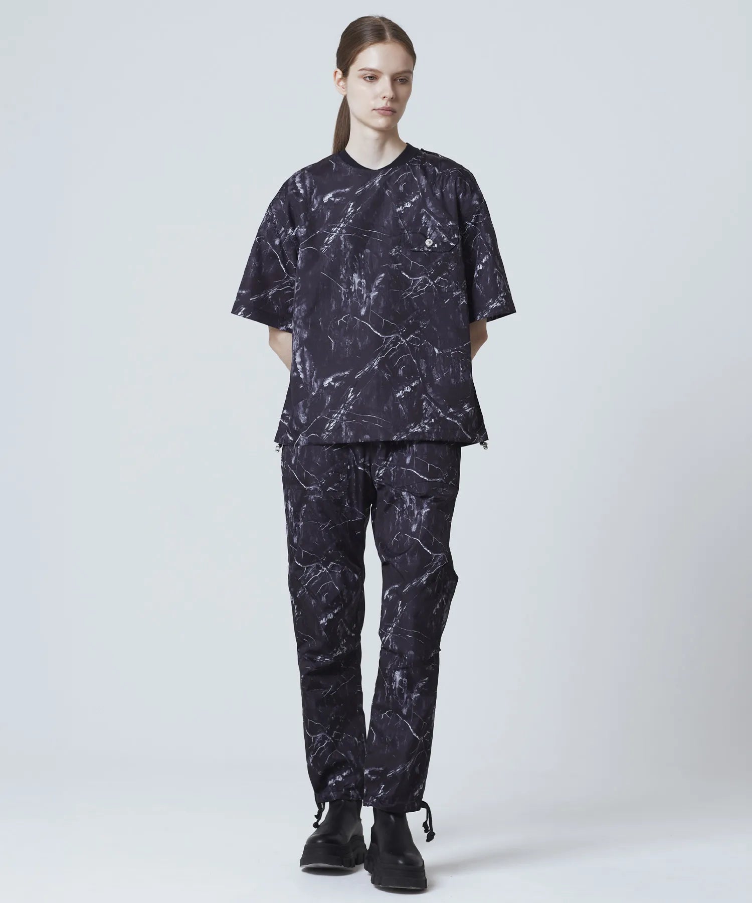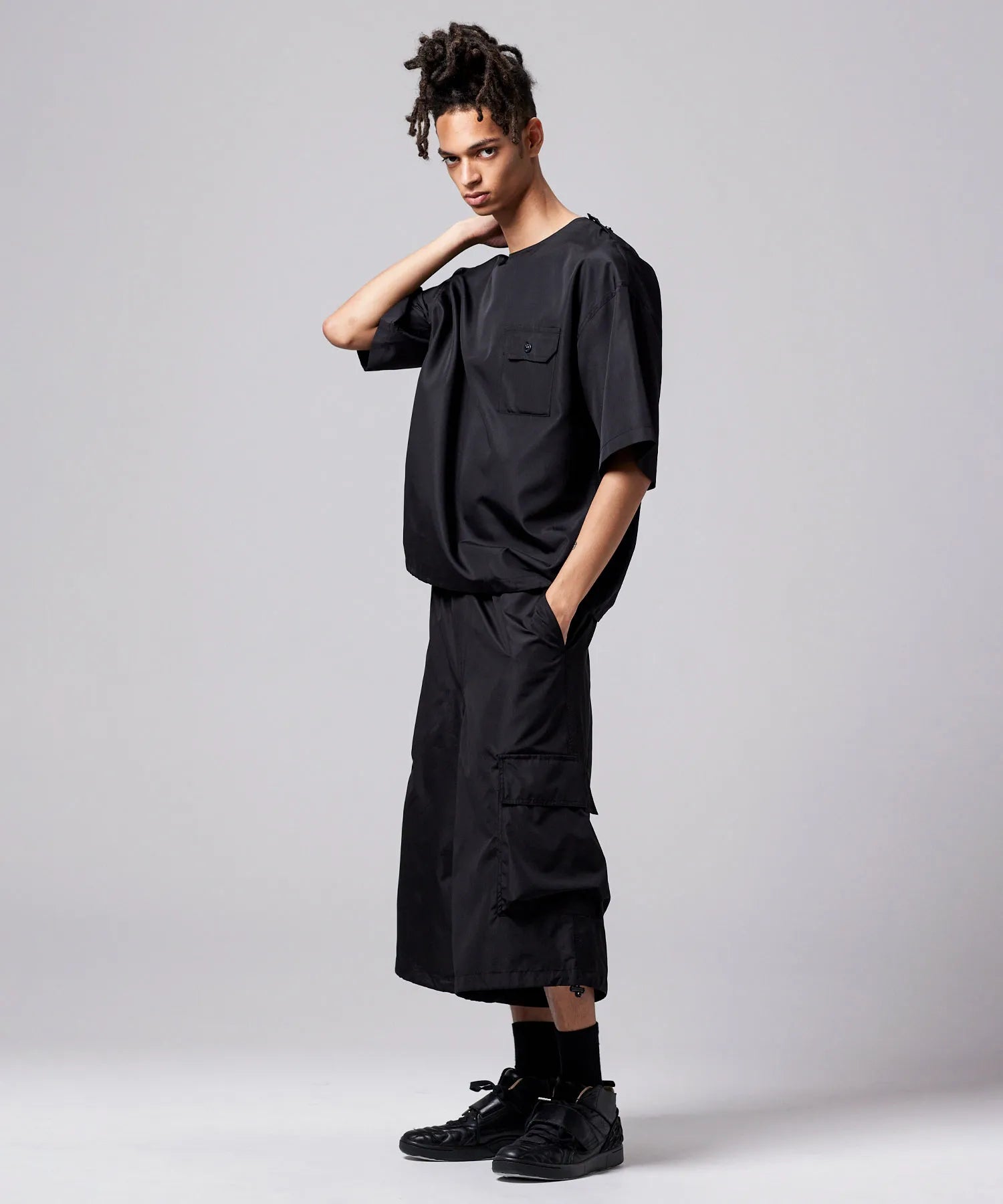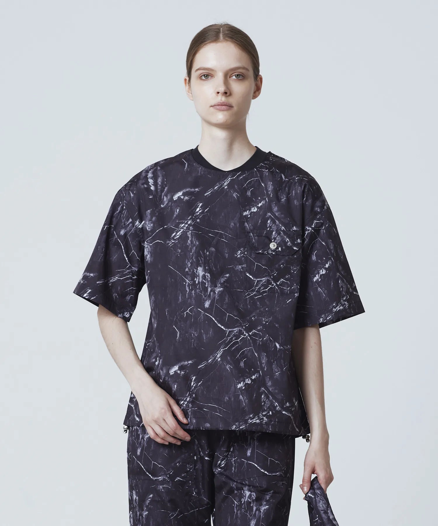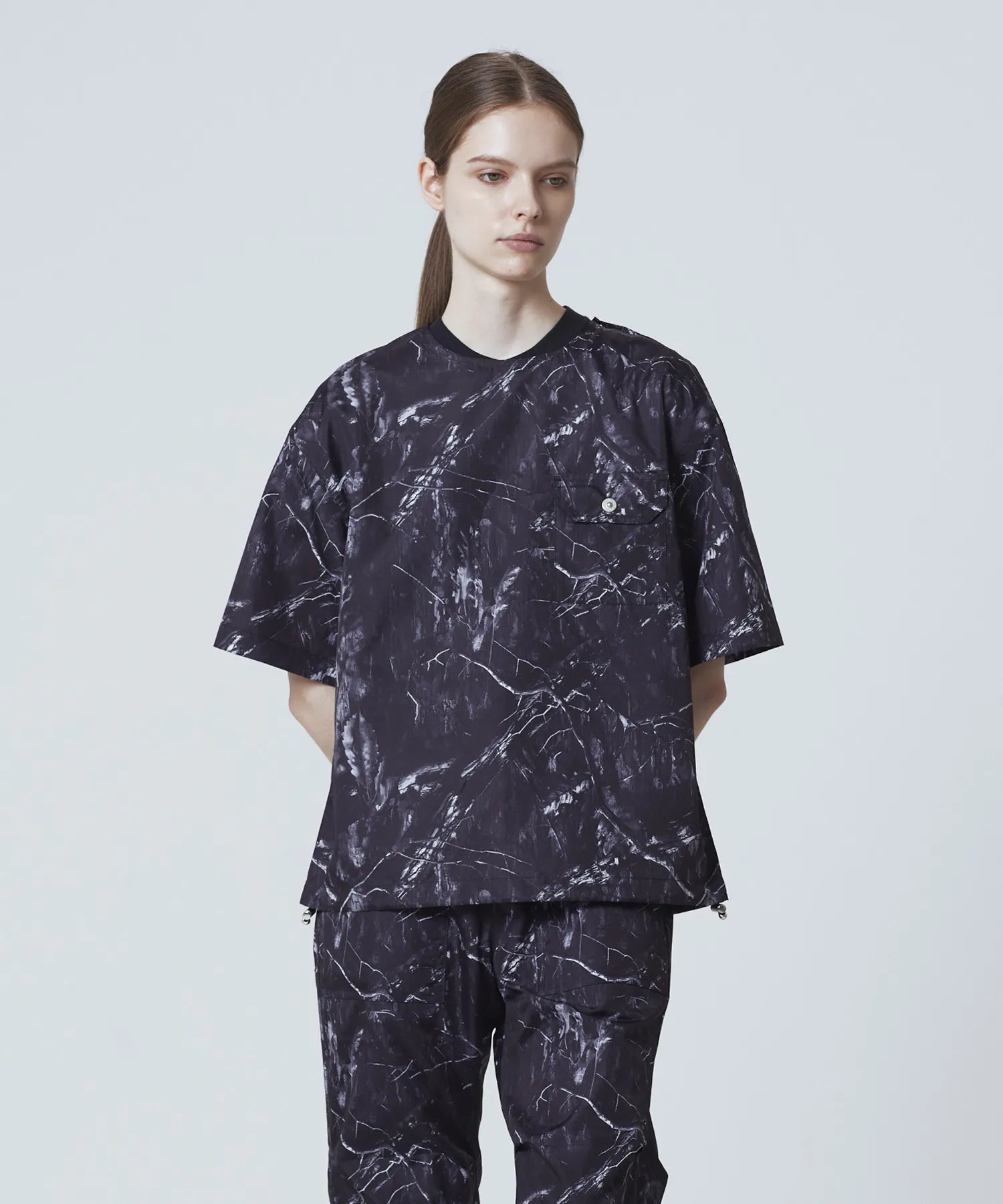 布帛素材を使用した、ミリタリー素材の半袖カットソー。