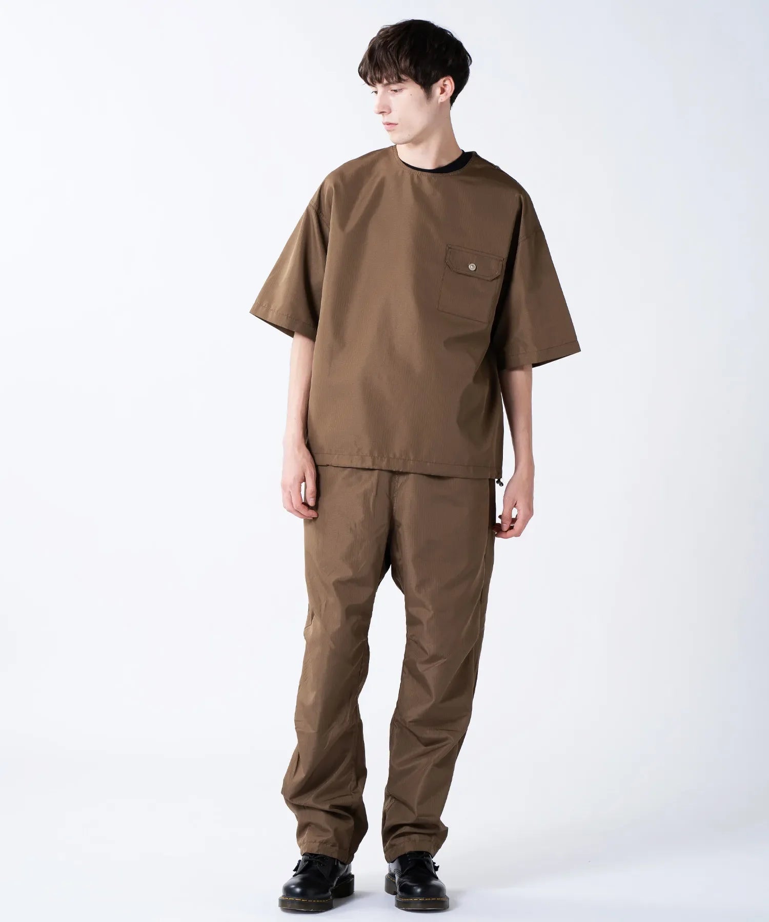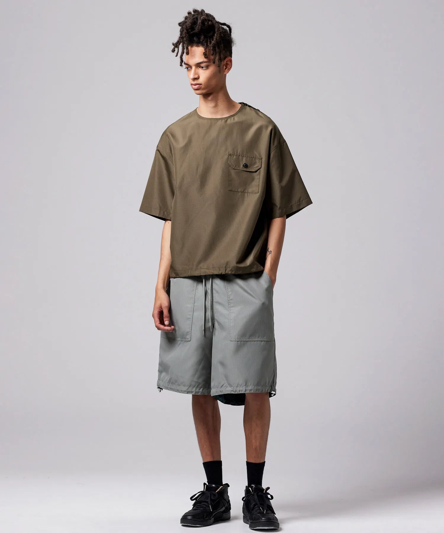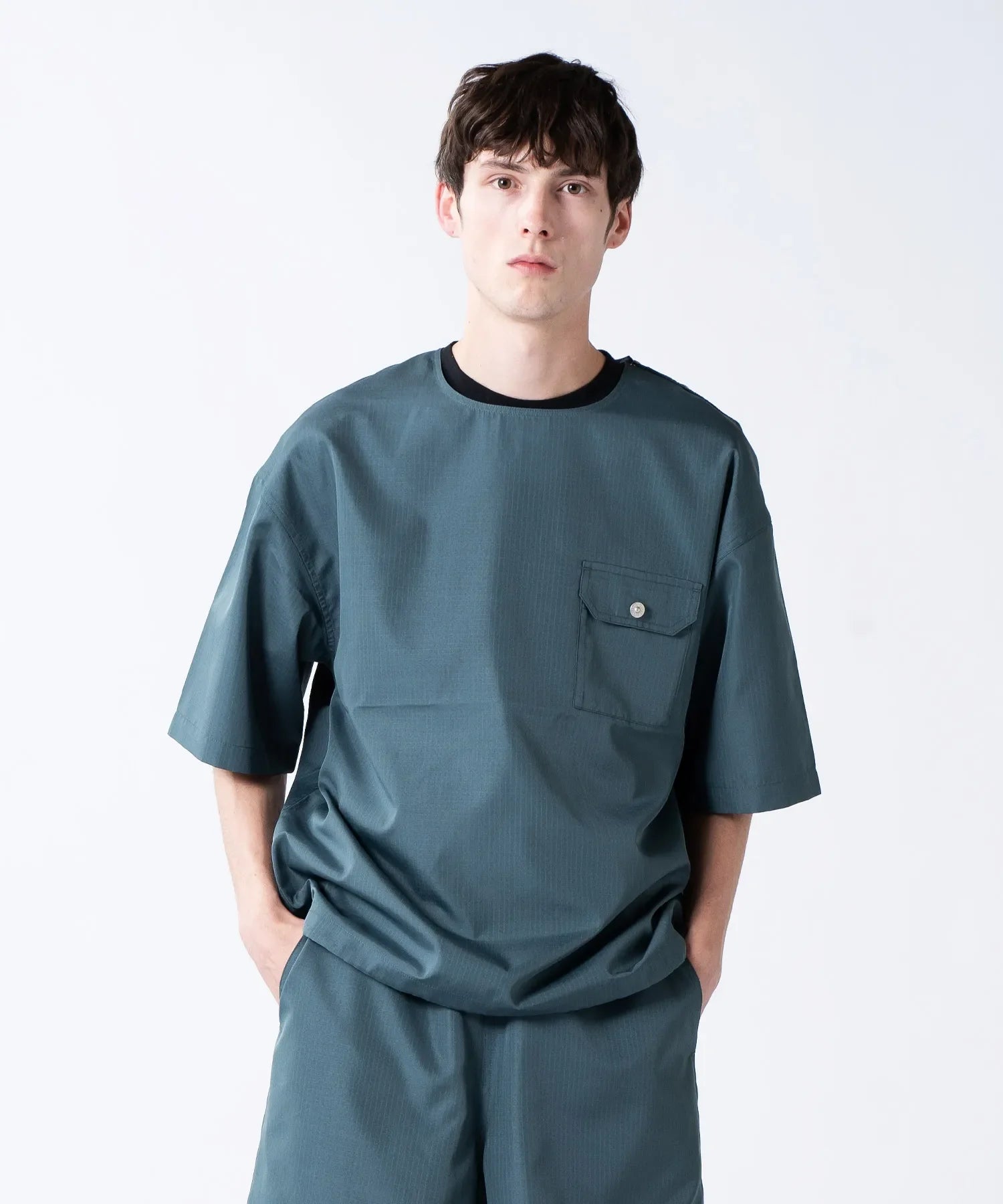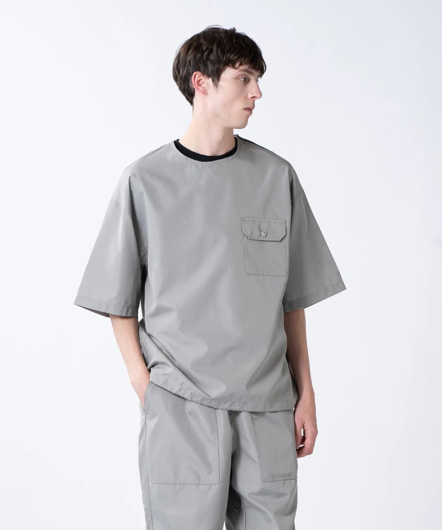 ダウンアイテムにも使用される軽量かつ高密度なミリタリーリップストップ生地を採用し、程よいハリ感とさらりとした着心地を両立しています。