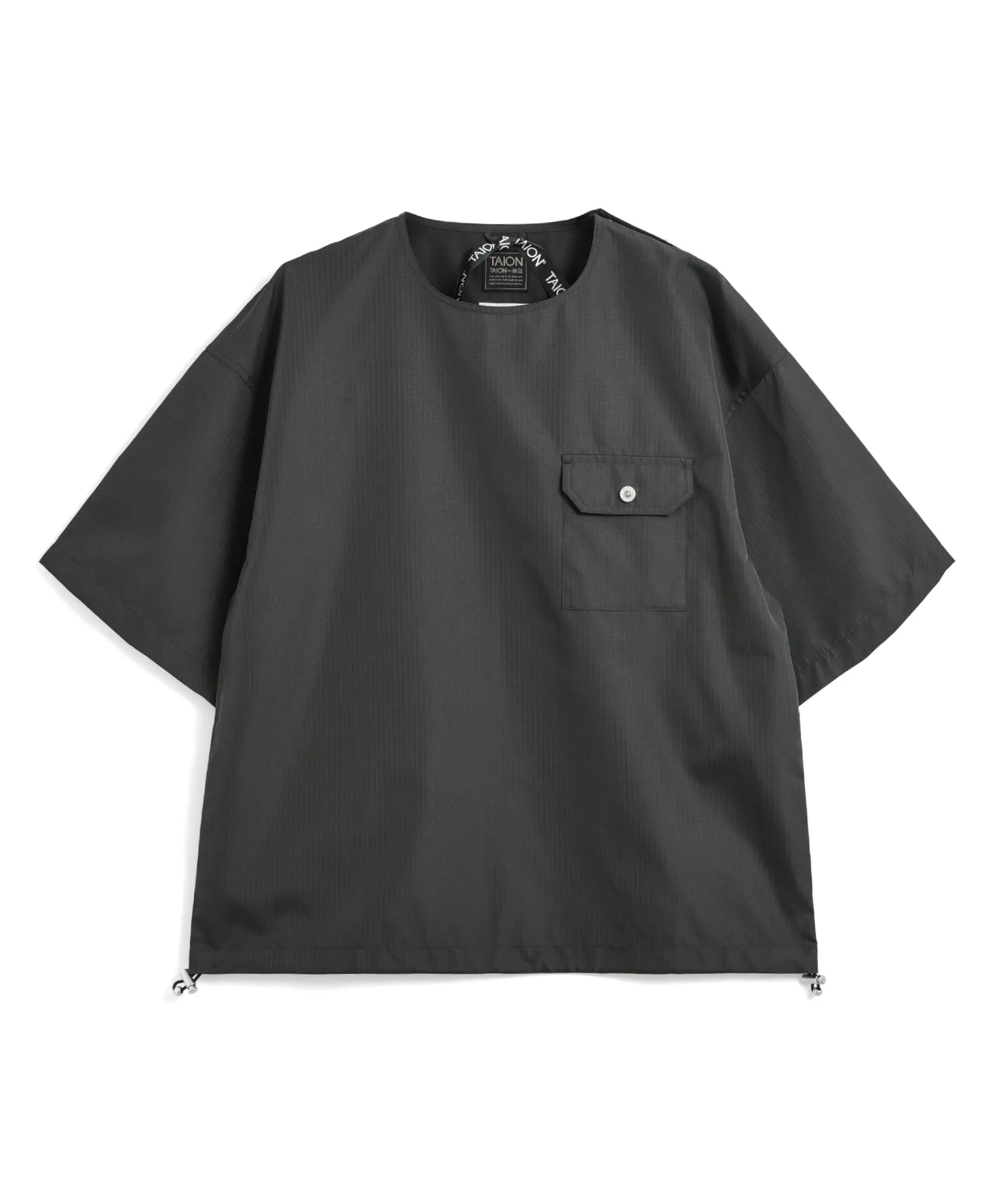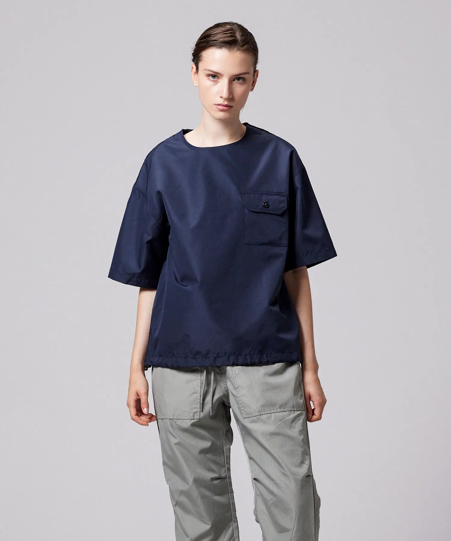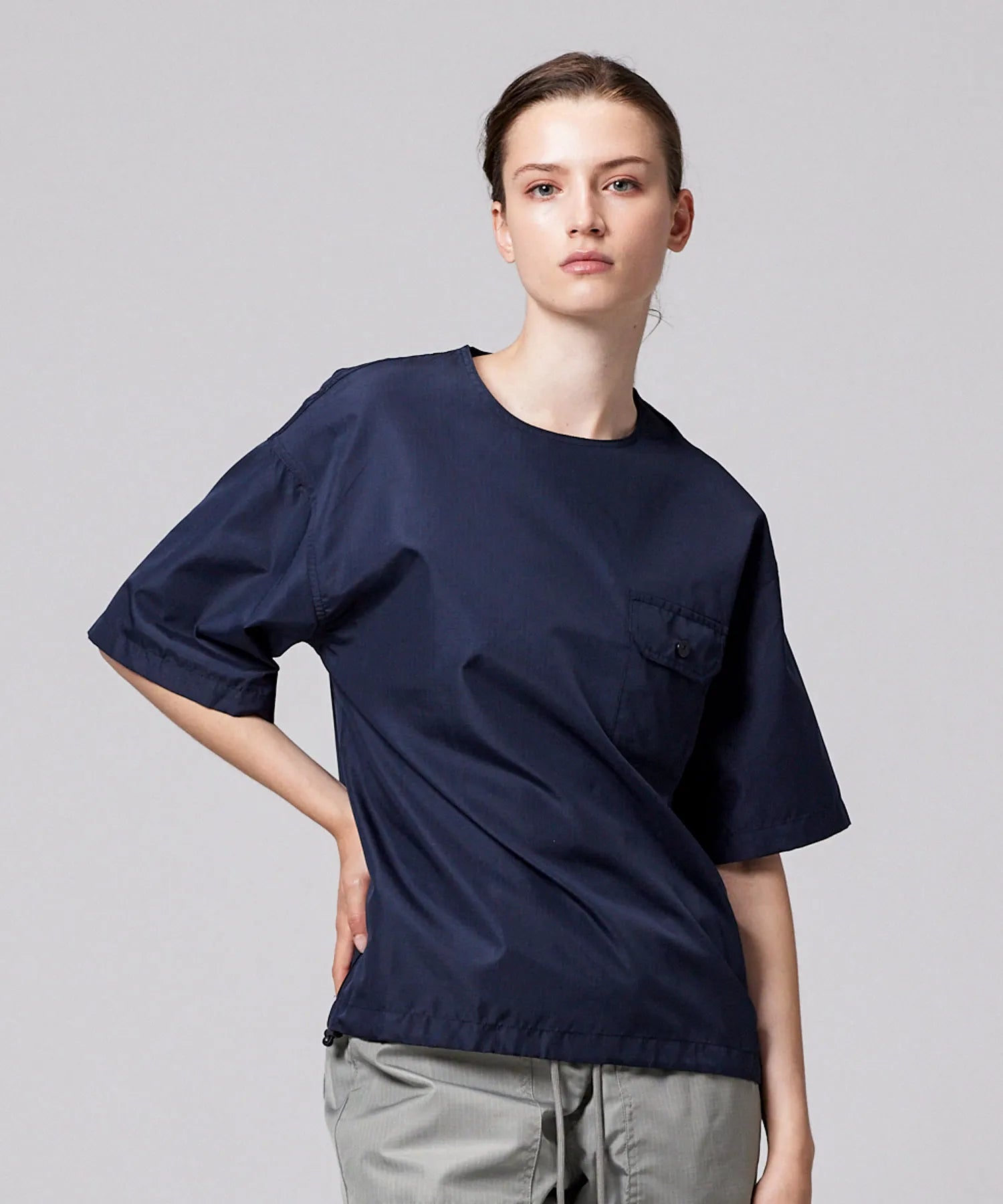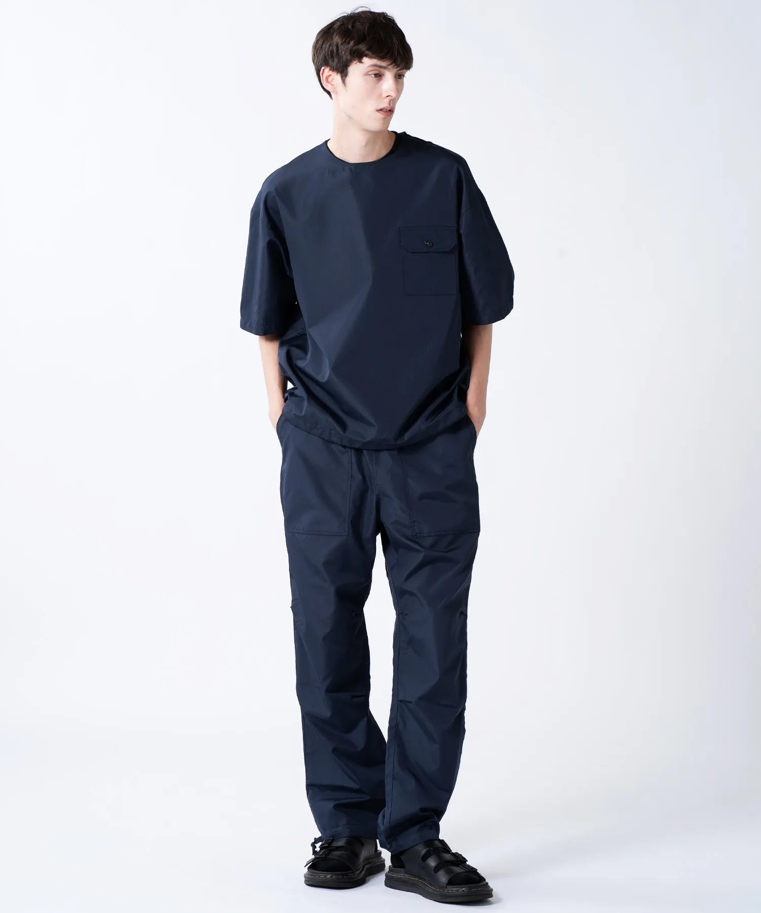 ダウンアイテムにも使用される軽量かつ高密度なミリタリーリップストップ生地を採用し、程よいハリ感とさらりとした着心地を両立しています。