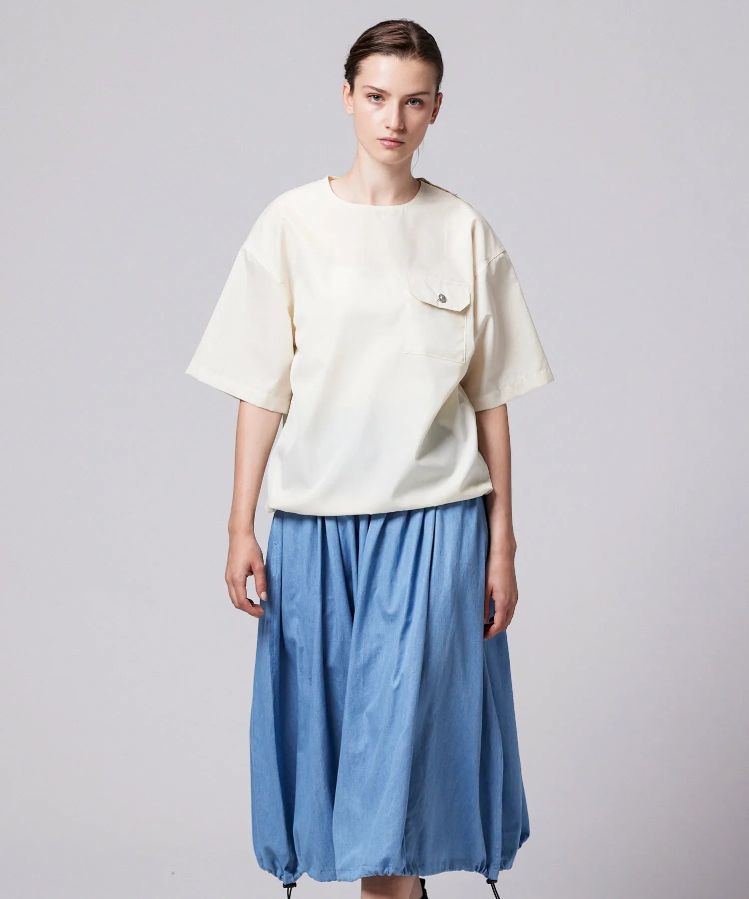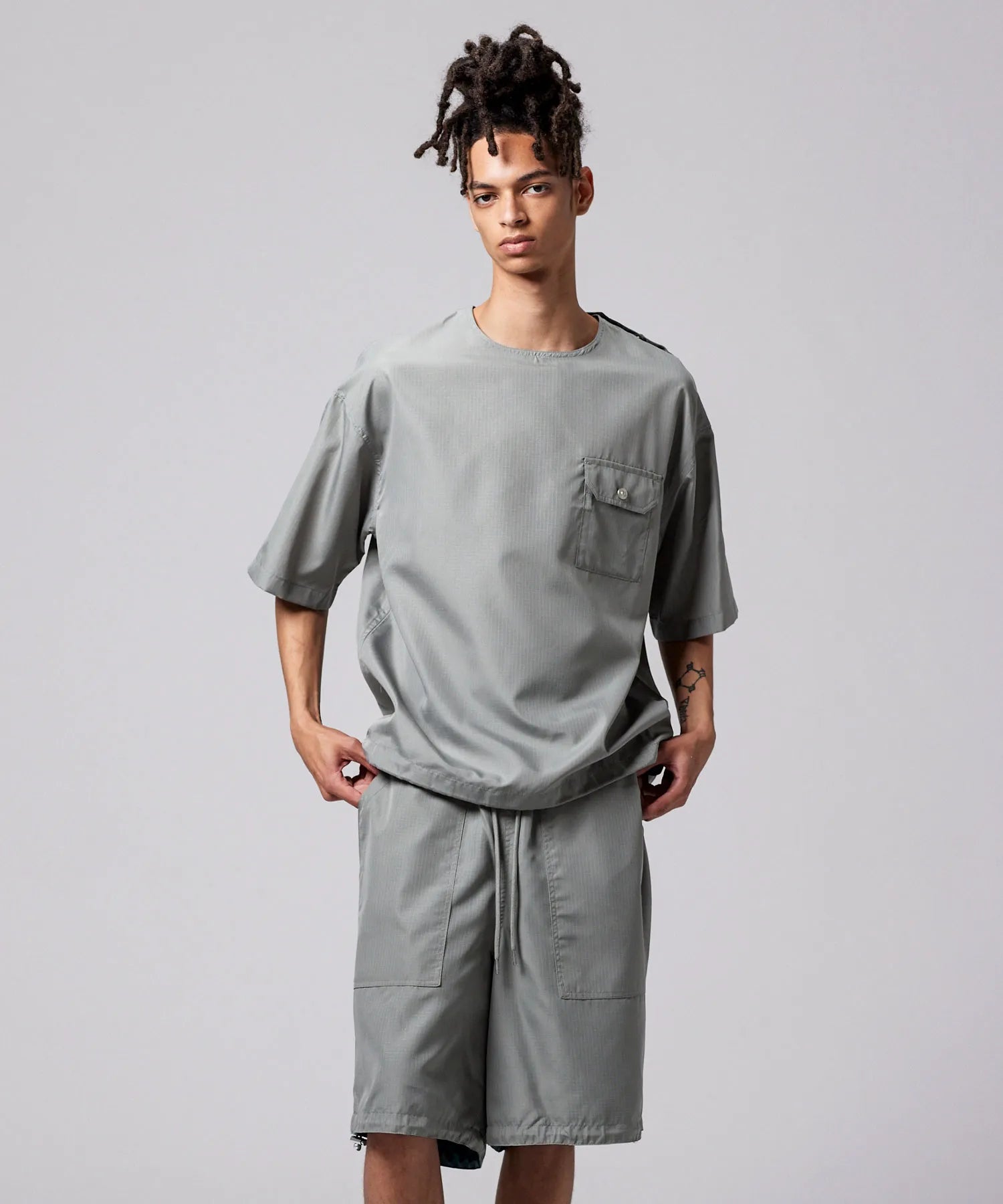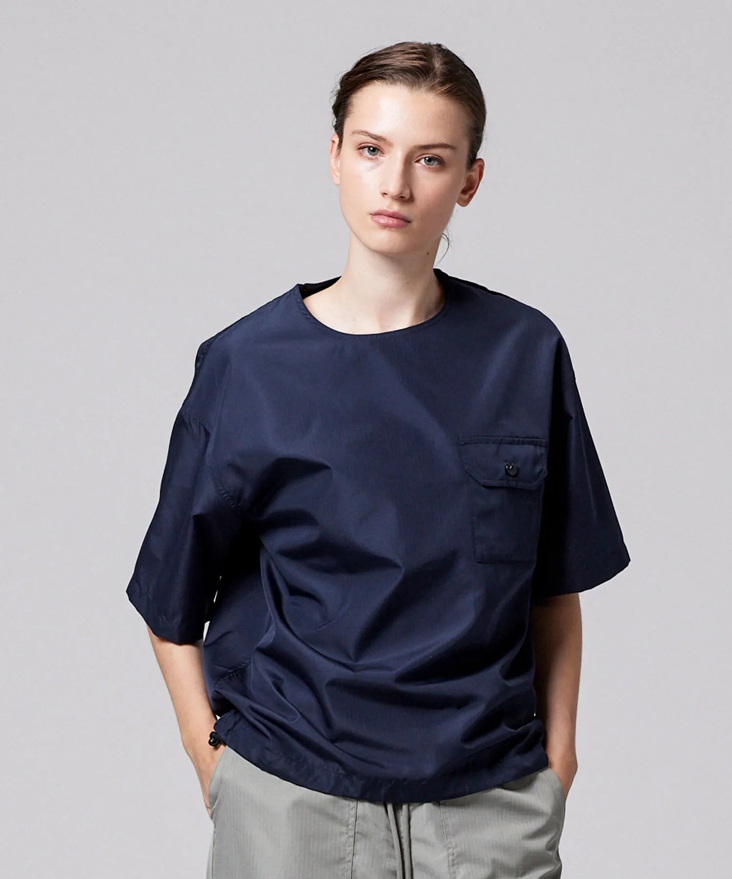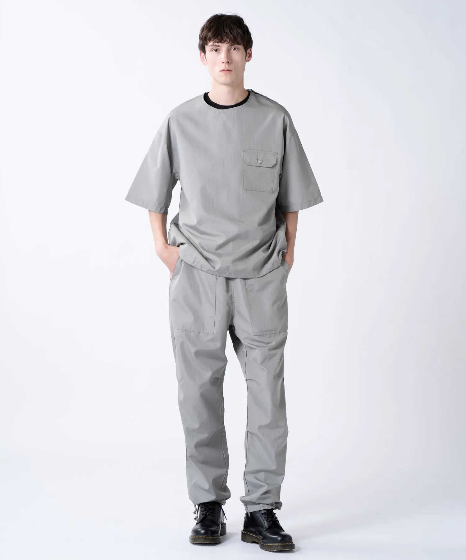 ダウンアイテムにも使用される軽量かつ高密度なミリタリーリップストップ生地を採用し、程よいハリ感とさらりとした着心地を両立しています。