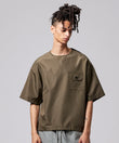 "胸のフラップポケットがアクセント。半袖ミリタリー素材カットソー"