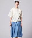 ゆとりのあるボックスシルエットと七分袖のバランスが、抜け感のあるスタイリングを演出します。