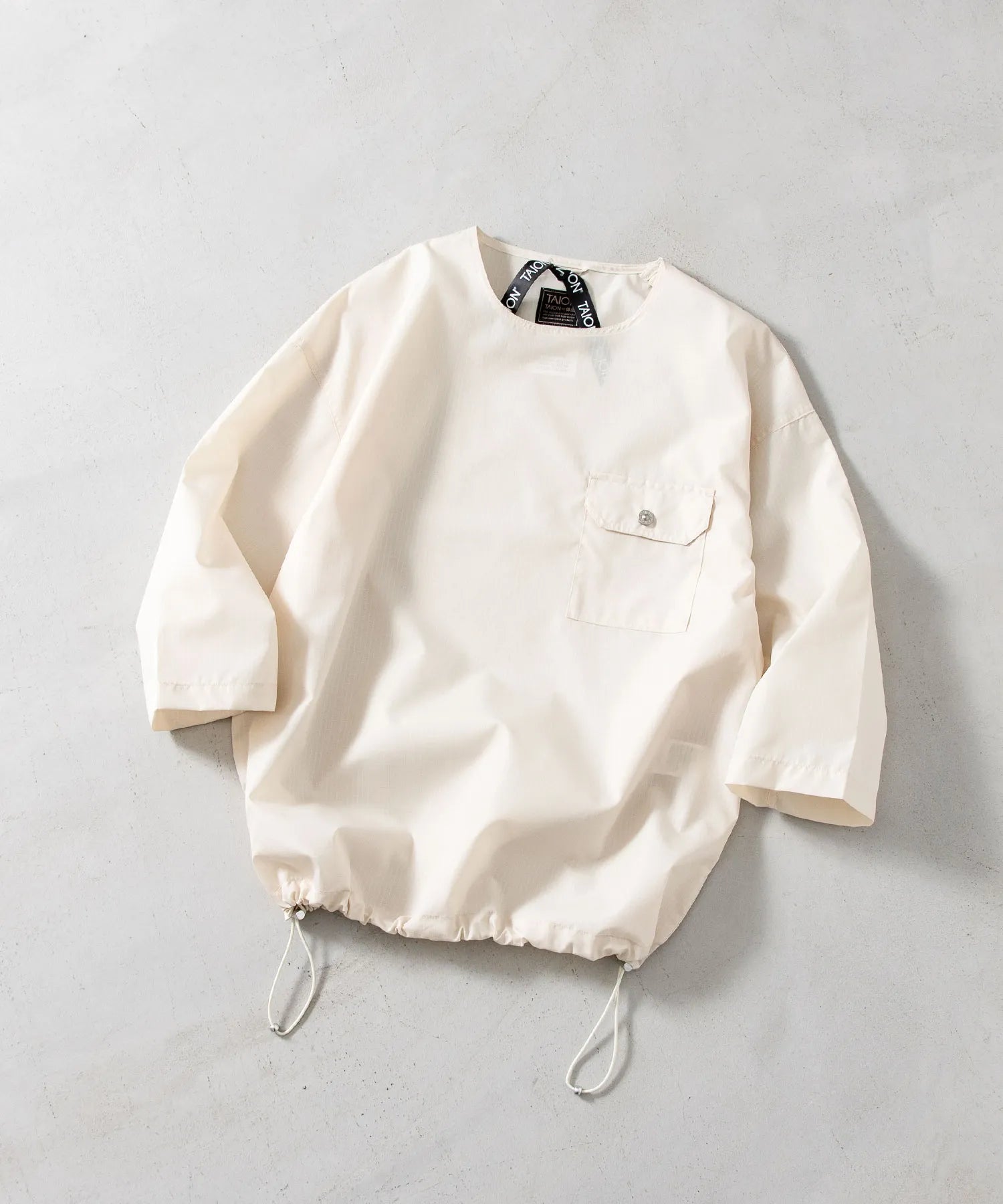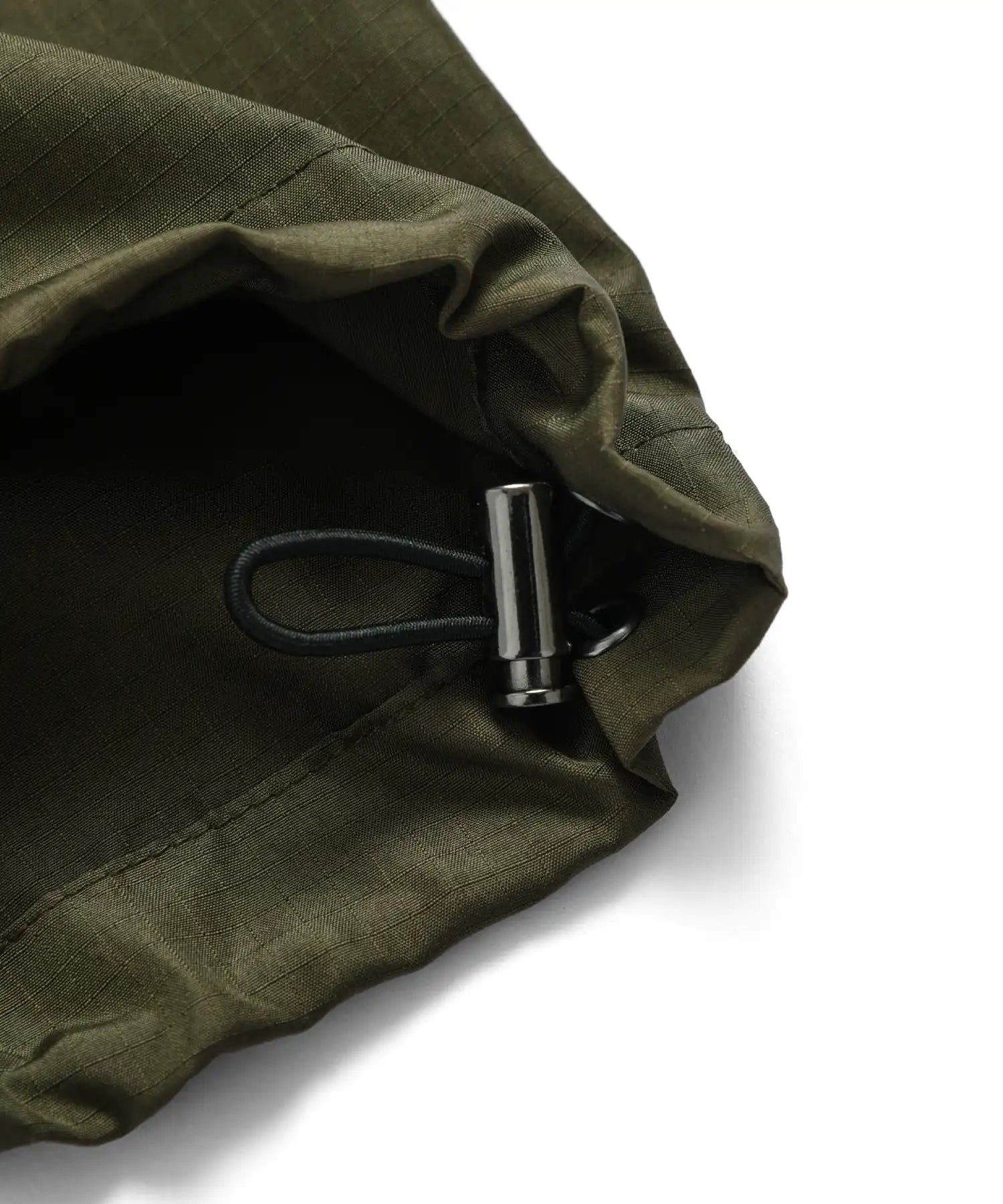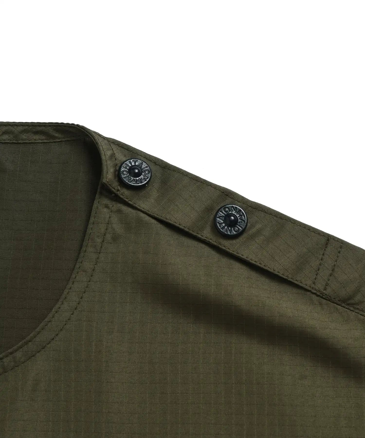 ダウンアイテムにも使用される軽量かつ高密度なミリタリーリップストップ生地を採用し、程よいハリ感とさらりとした着心地を両立しています。