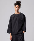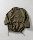 布帛素材を使用した、ミリタリー素材の七分袖カットソー。