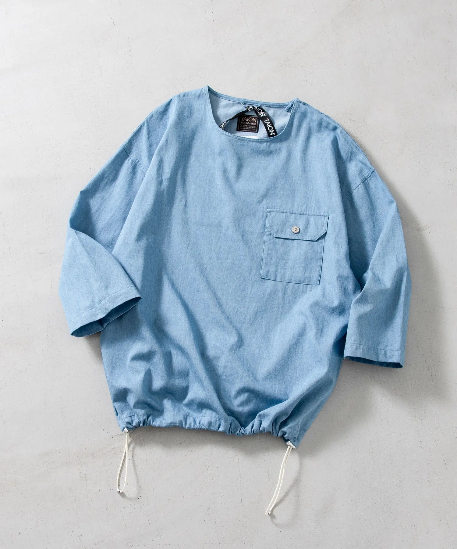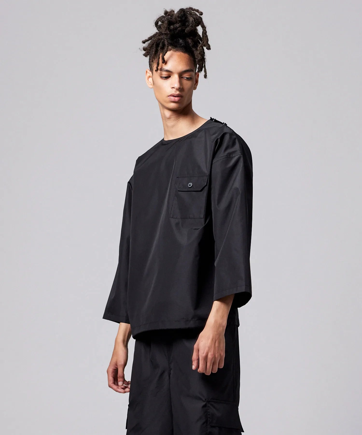 ゆとりのあるボックスシルエットと七分袖のバランスが、抜け感のあるスタイリングを演出します。