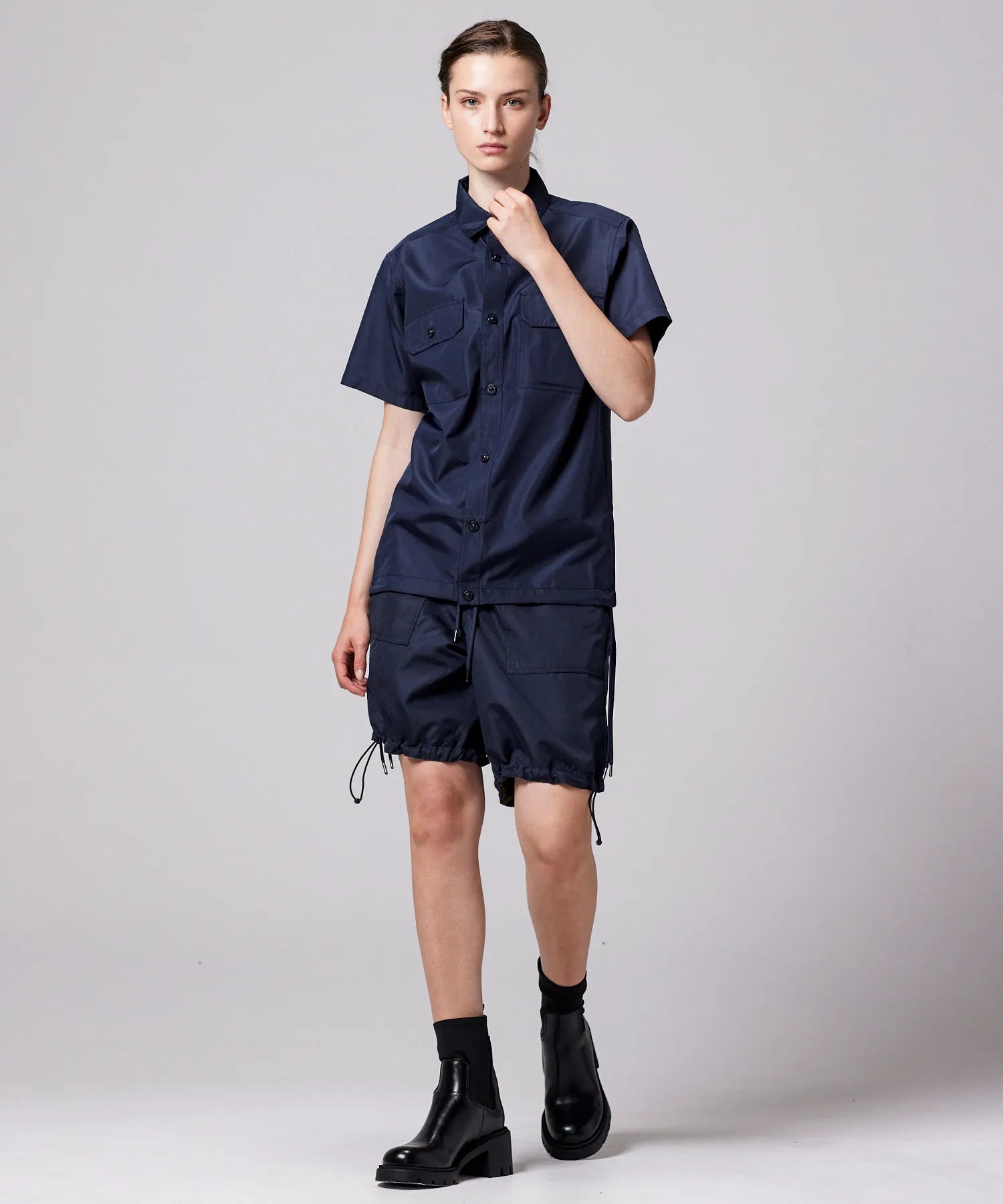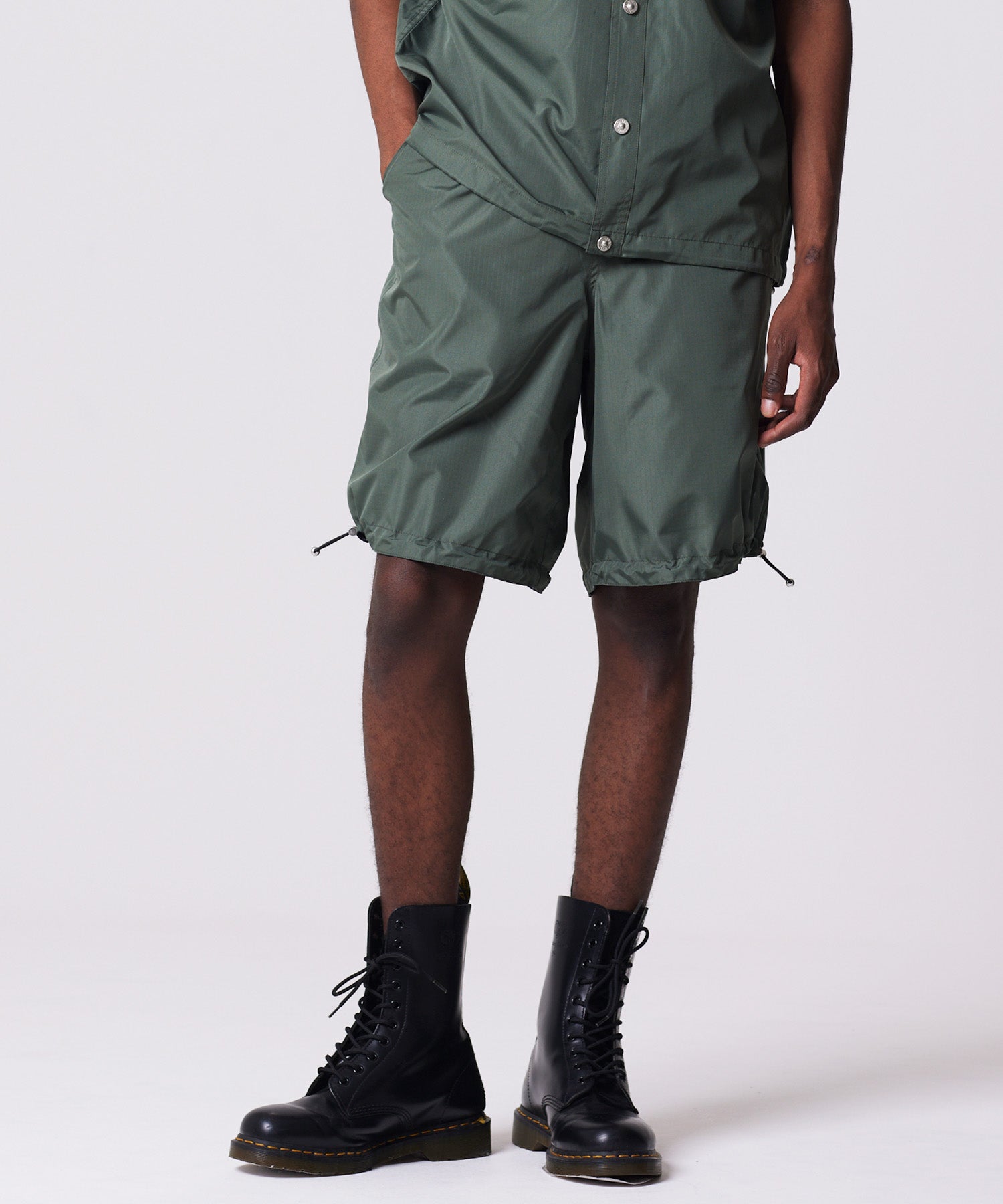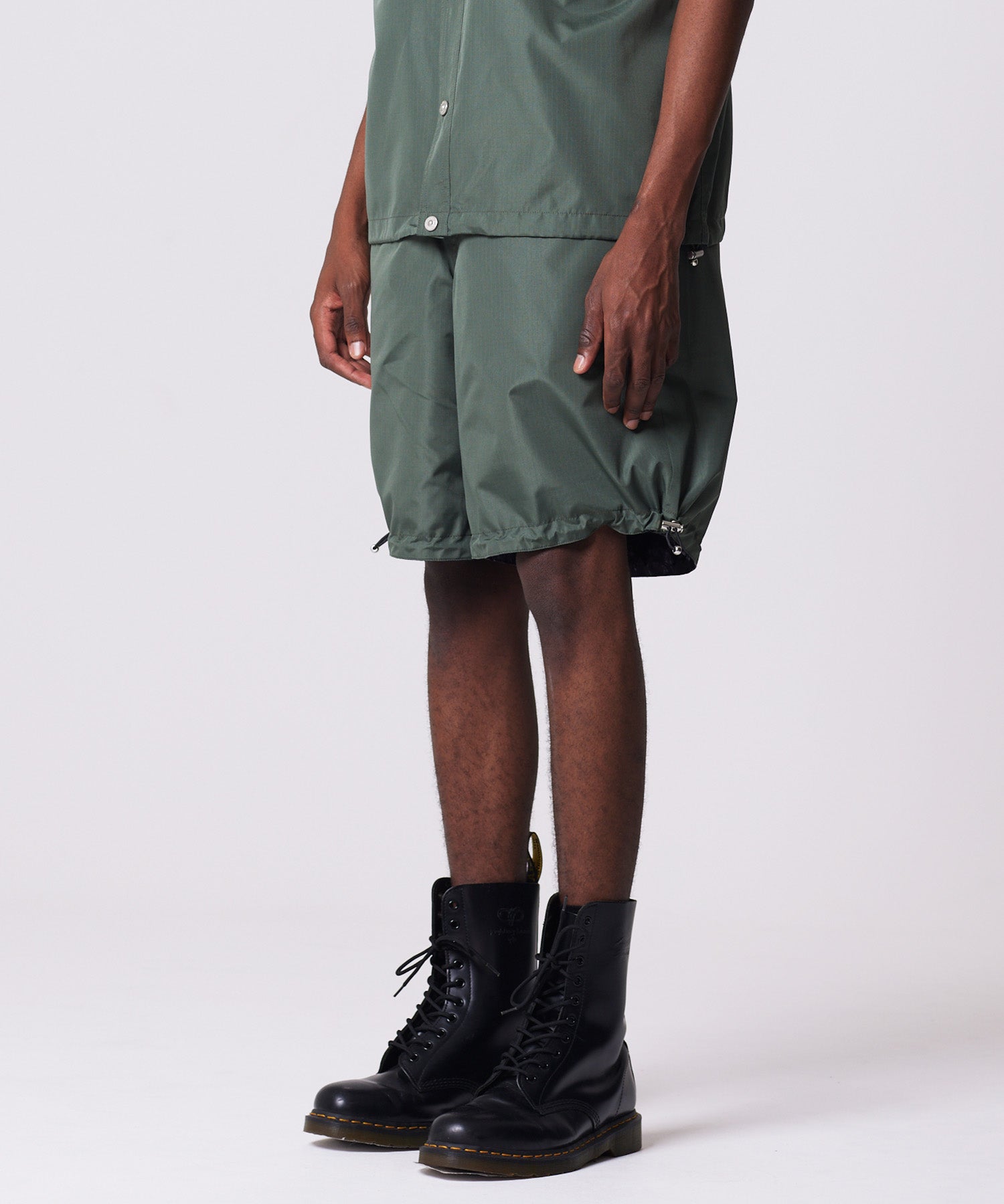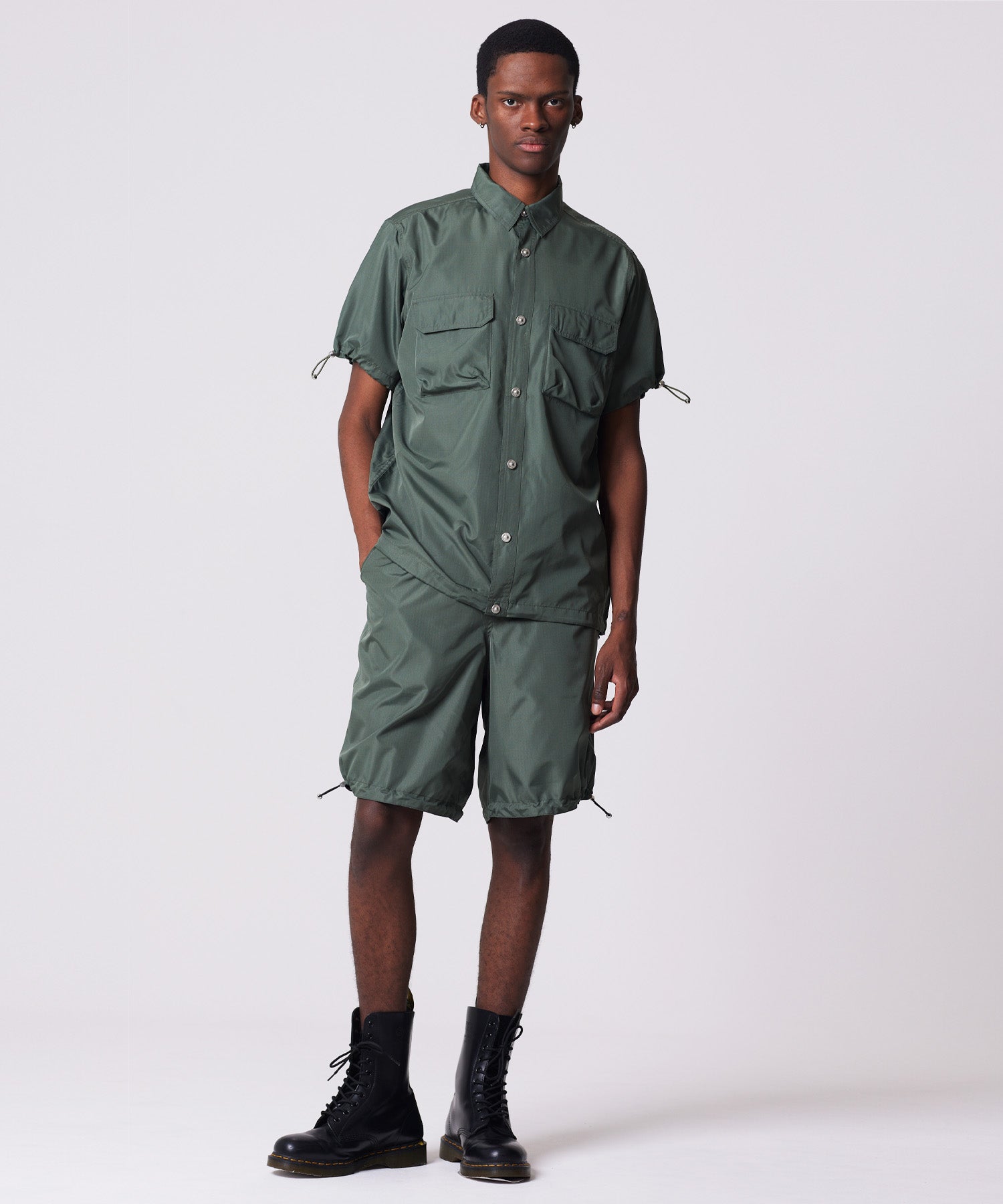 存在感のあるボリュームシルエットが印象的な、ミリタリーリバーシブルワイドショーツ。TAIONミリタリーラインで採用している高密度リップストップ生地を使用し、軽やかさと耐久性を兼ね備えた仕上がりです。