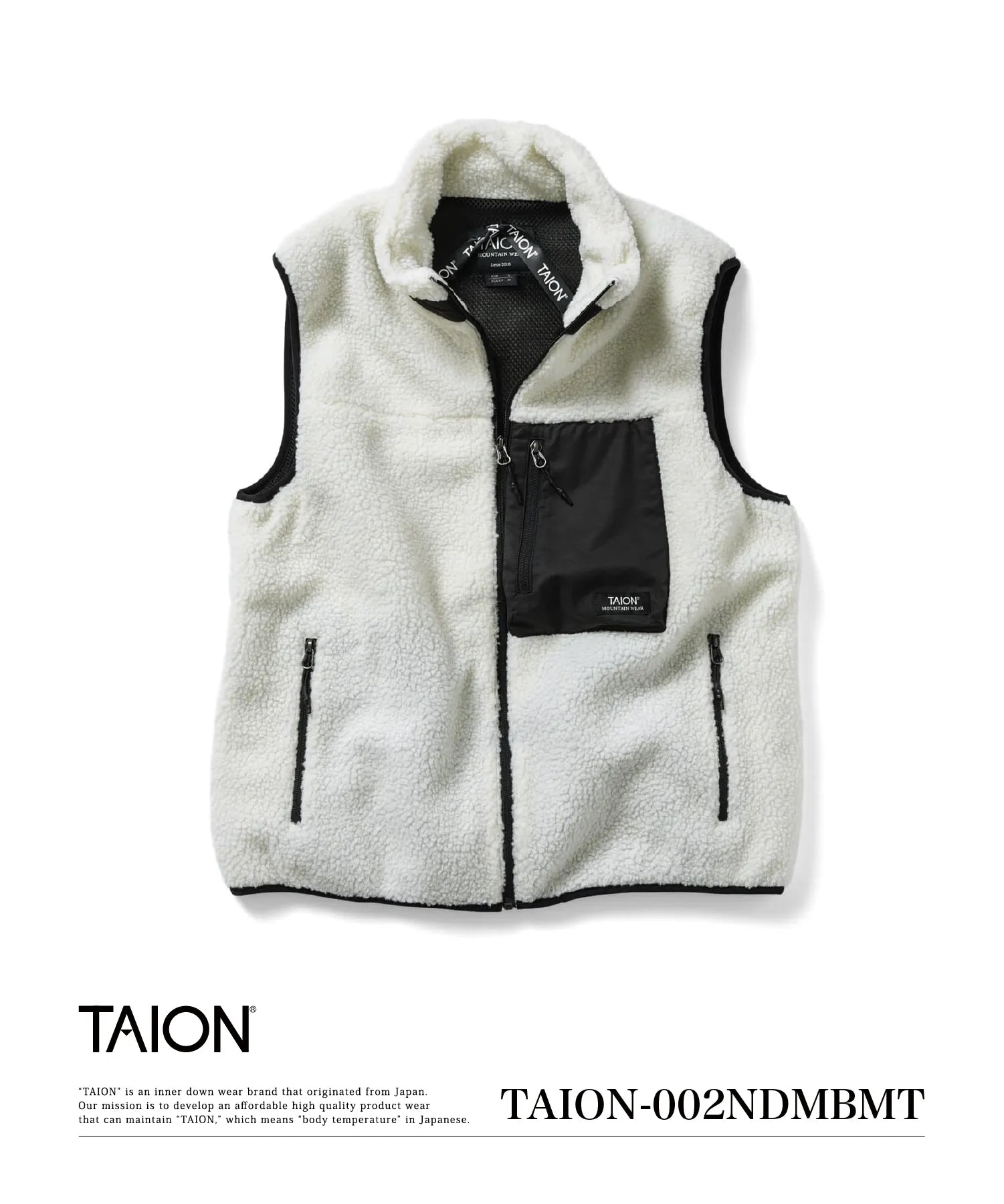 【UNISEX】ノンダウン マウンテン ハイネックジップ ボアベスト(TAION-002NDMBMT)