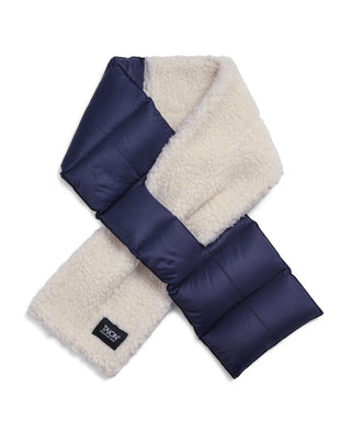 片側をダウン、片側をボア素材で切り替えた、アシンメトリーダウンマフラーです。