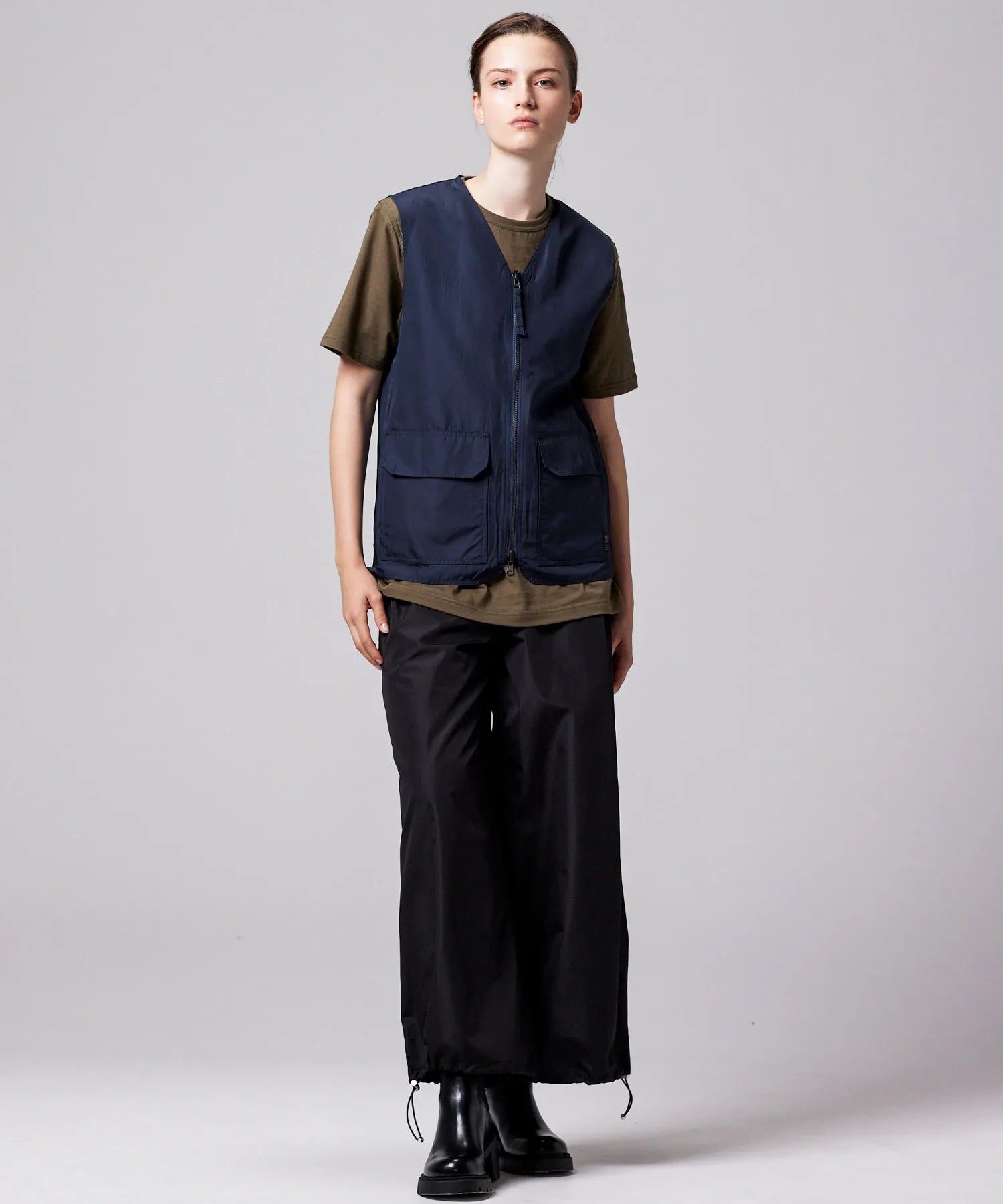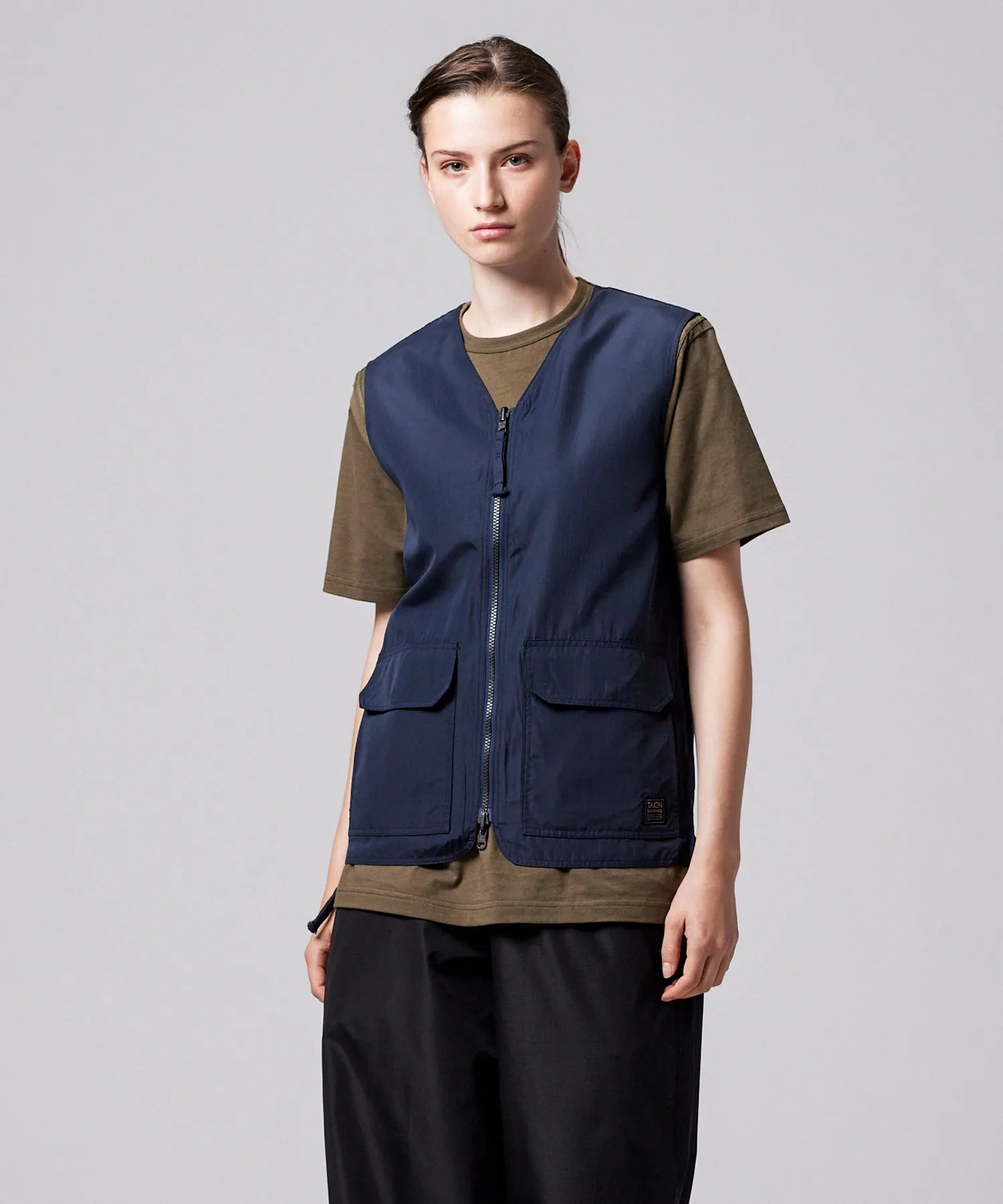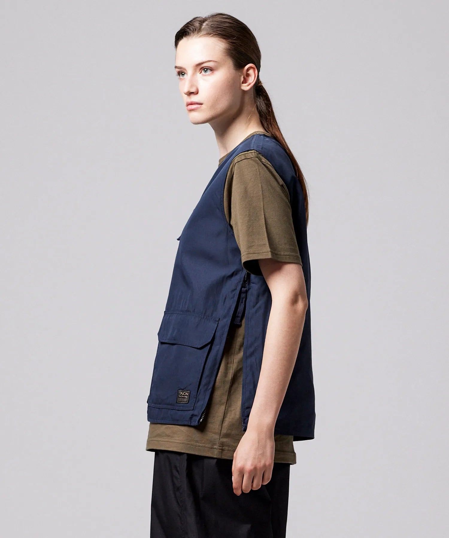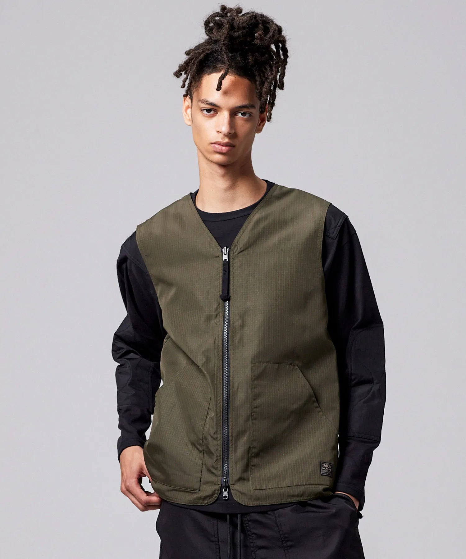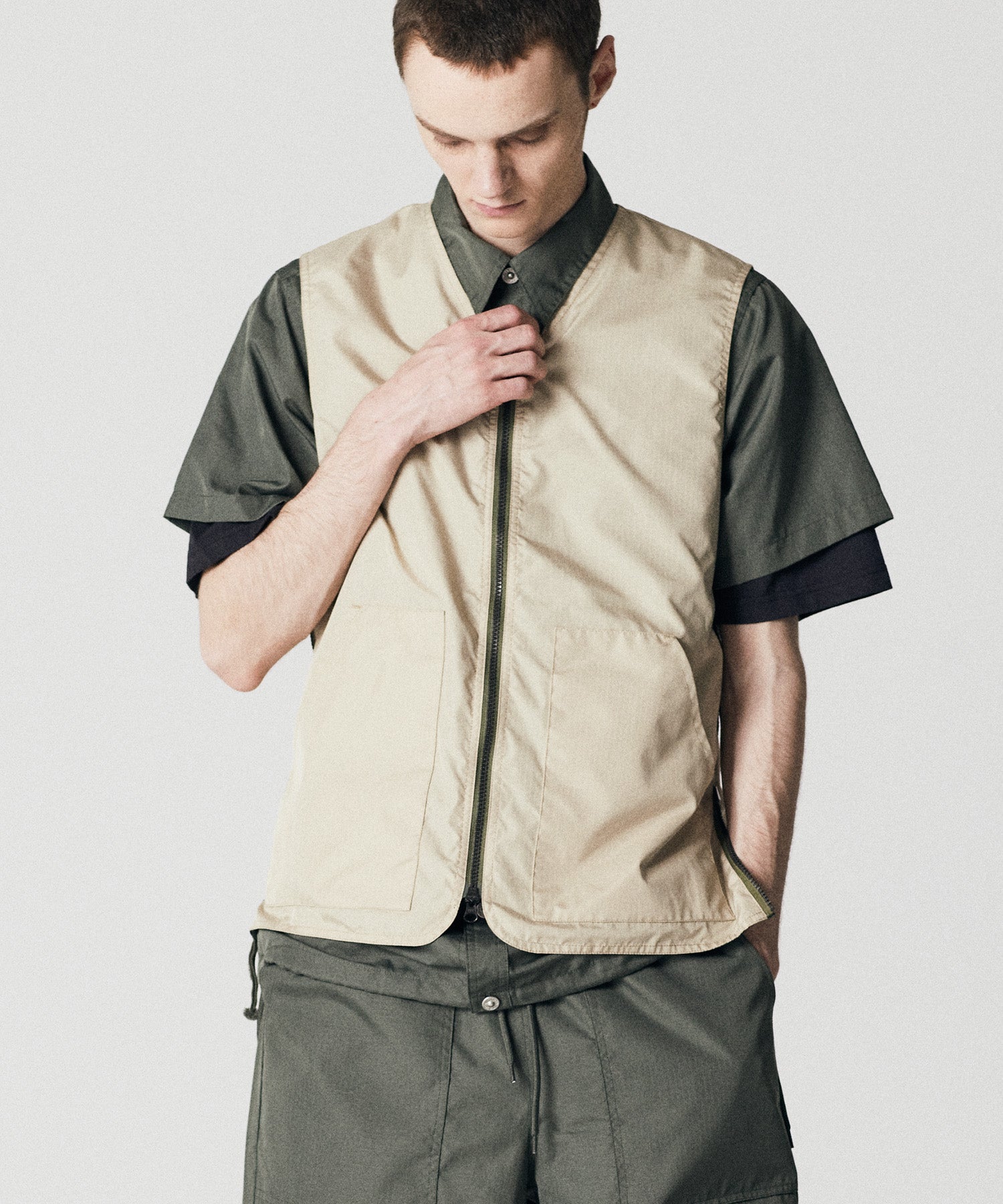 ミリタリーテイストをベースに、日常に取り入れやすい軽快なバランスへ仕上げたリバーシブルVネックベスト。