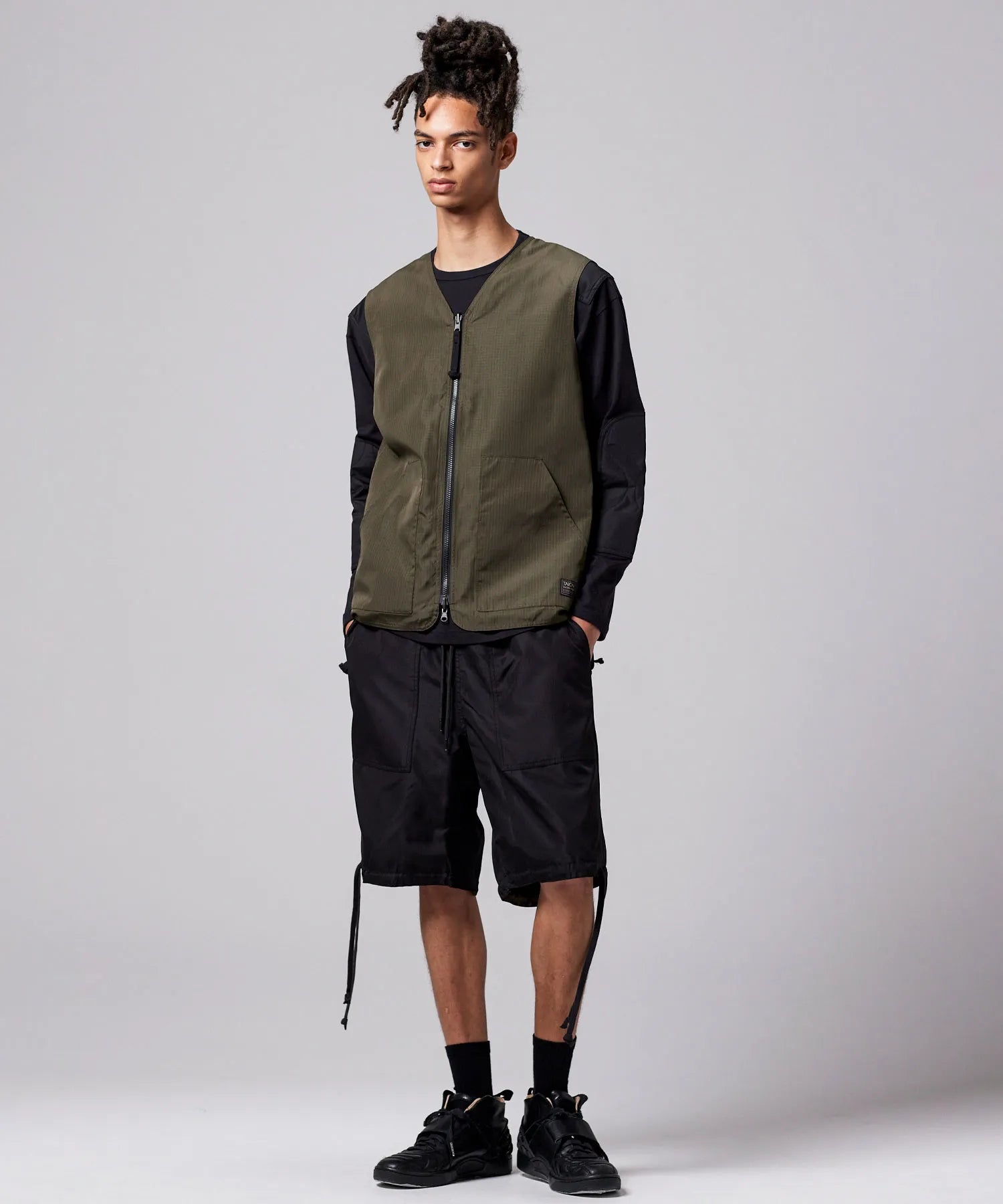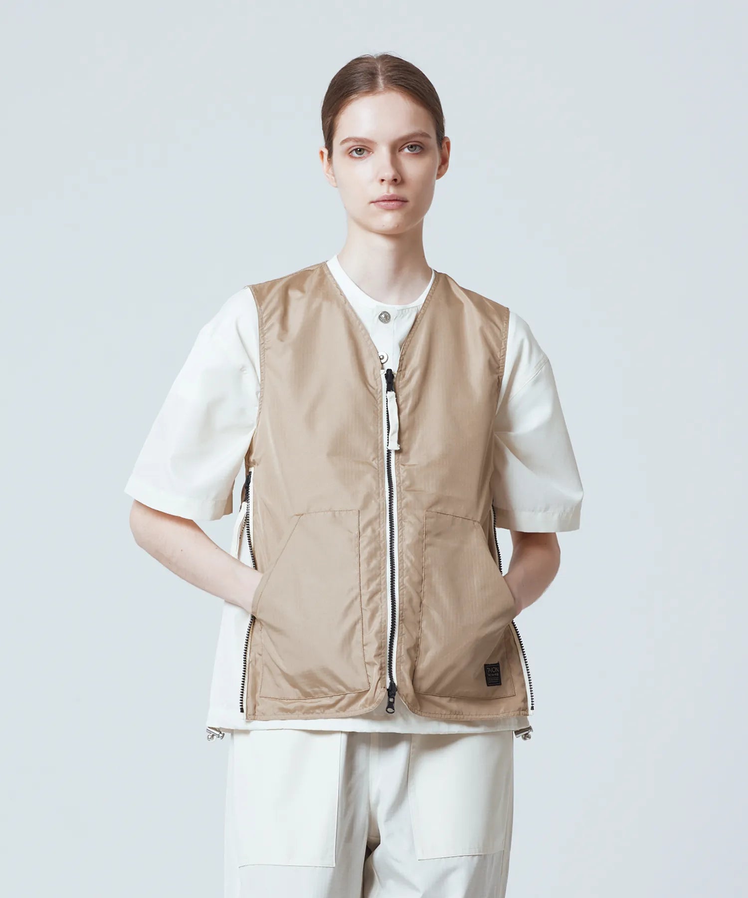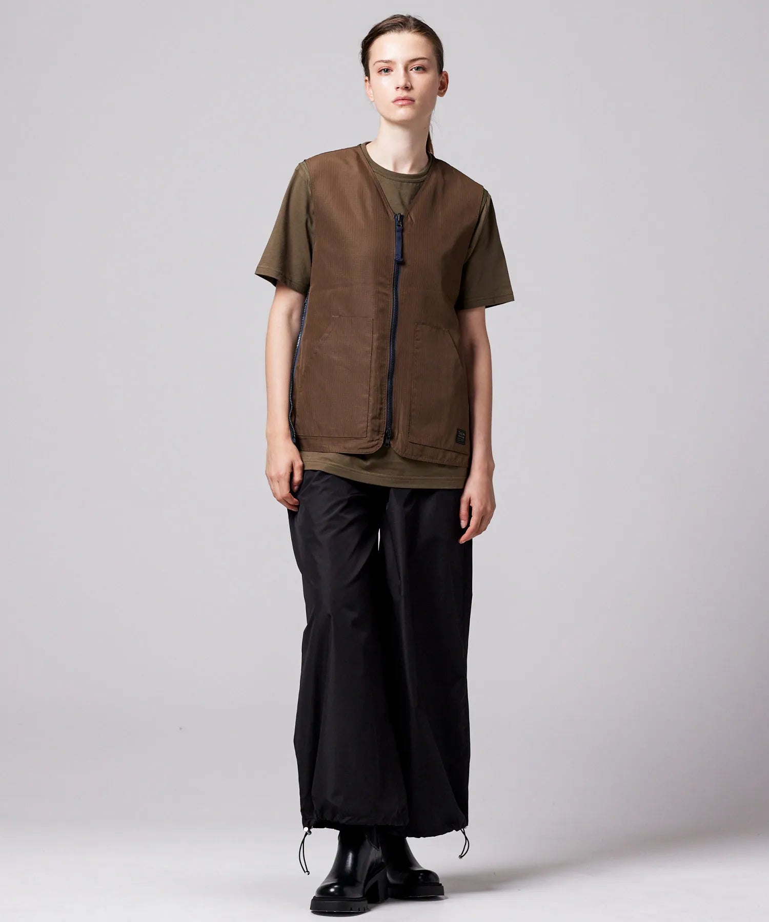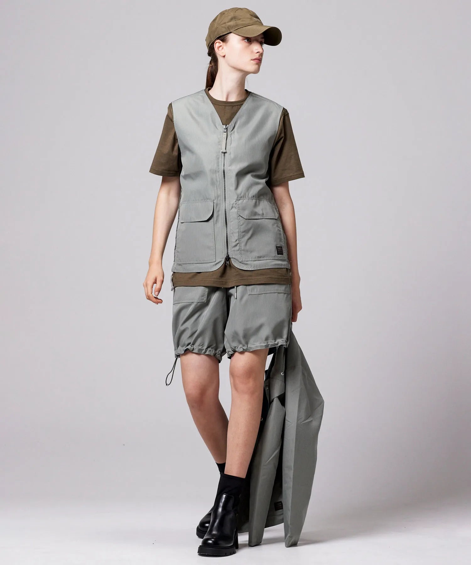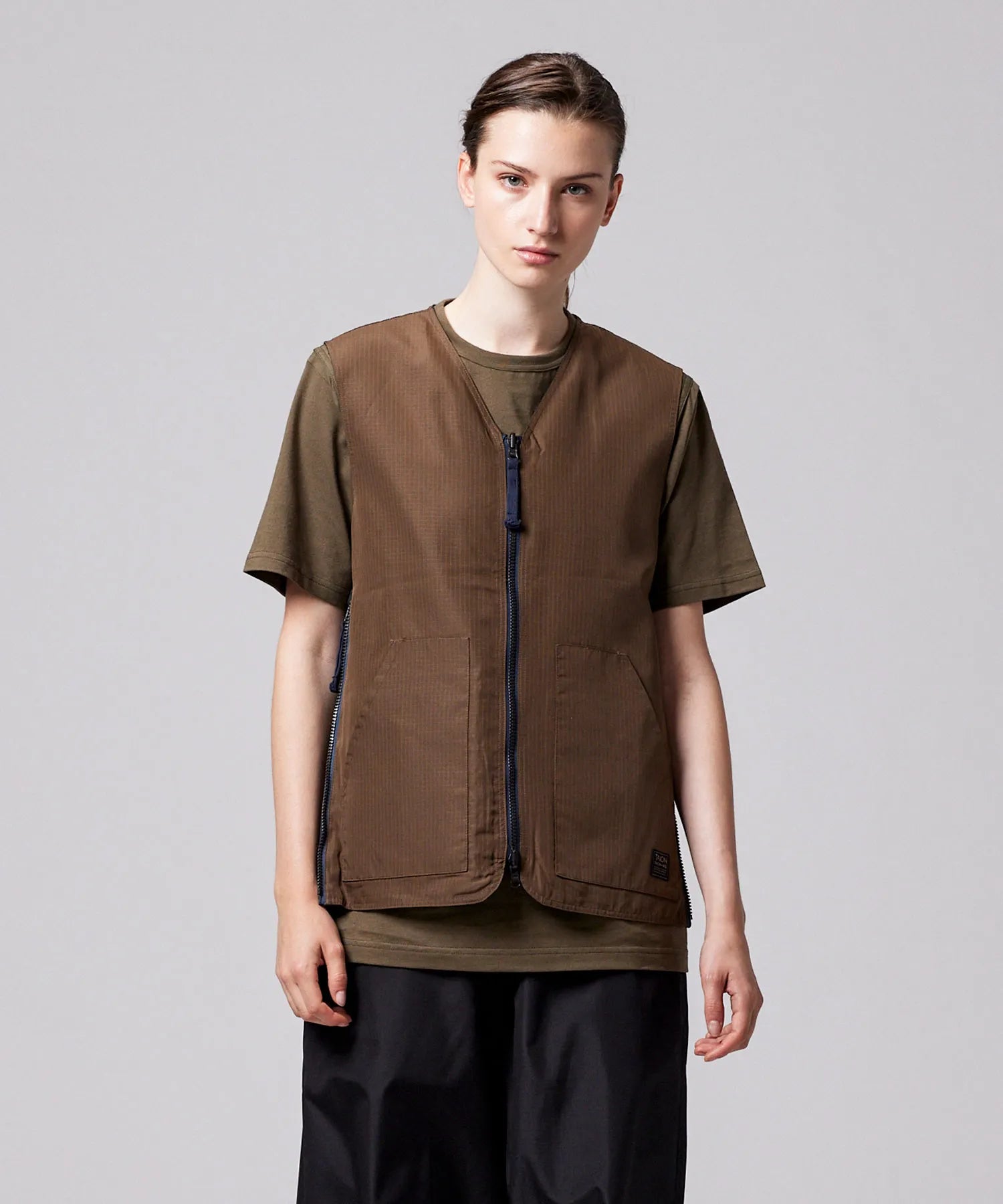 ミリタリーテイストをベースに、日常に取り入れやすい軽快なバランスへ仕上げたリバーシブルVネックベスト。